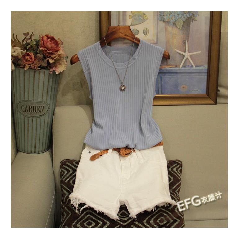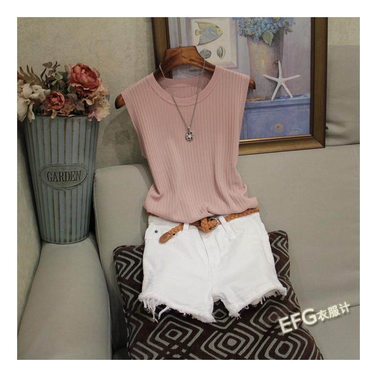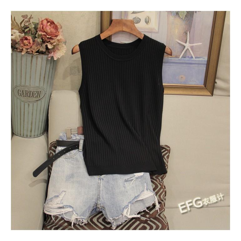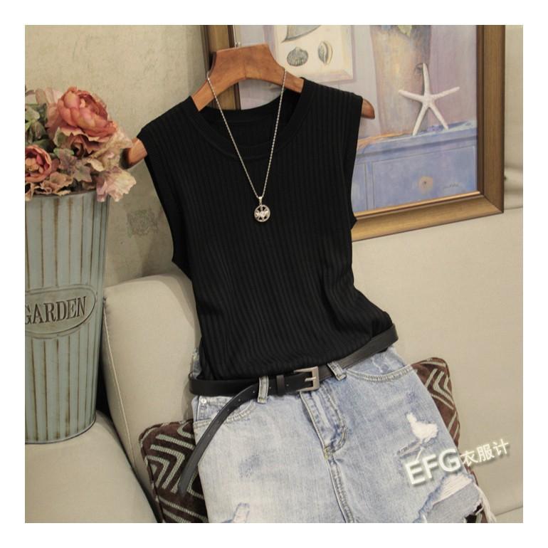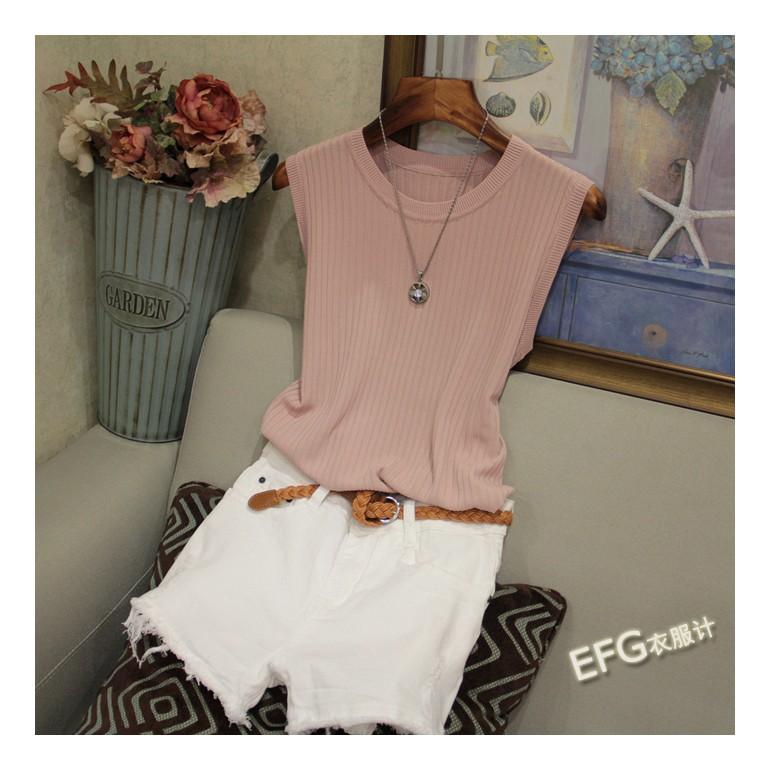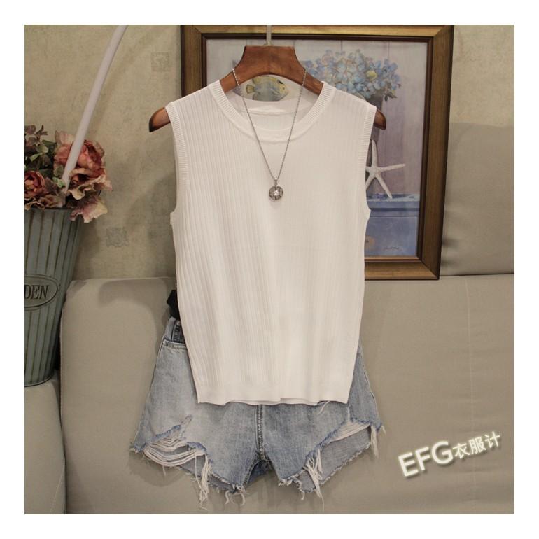 Primavera/Verano 2025 Nuevo Chaleco de Punto Versátil Delgado sin Mangas de Seda Helada con Tirantes Anchos y Cuello Redondo para Mujer Top Camiseta de Mujer