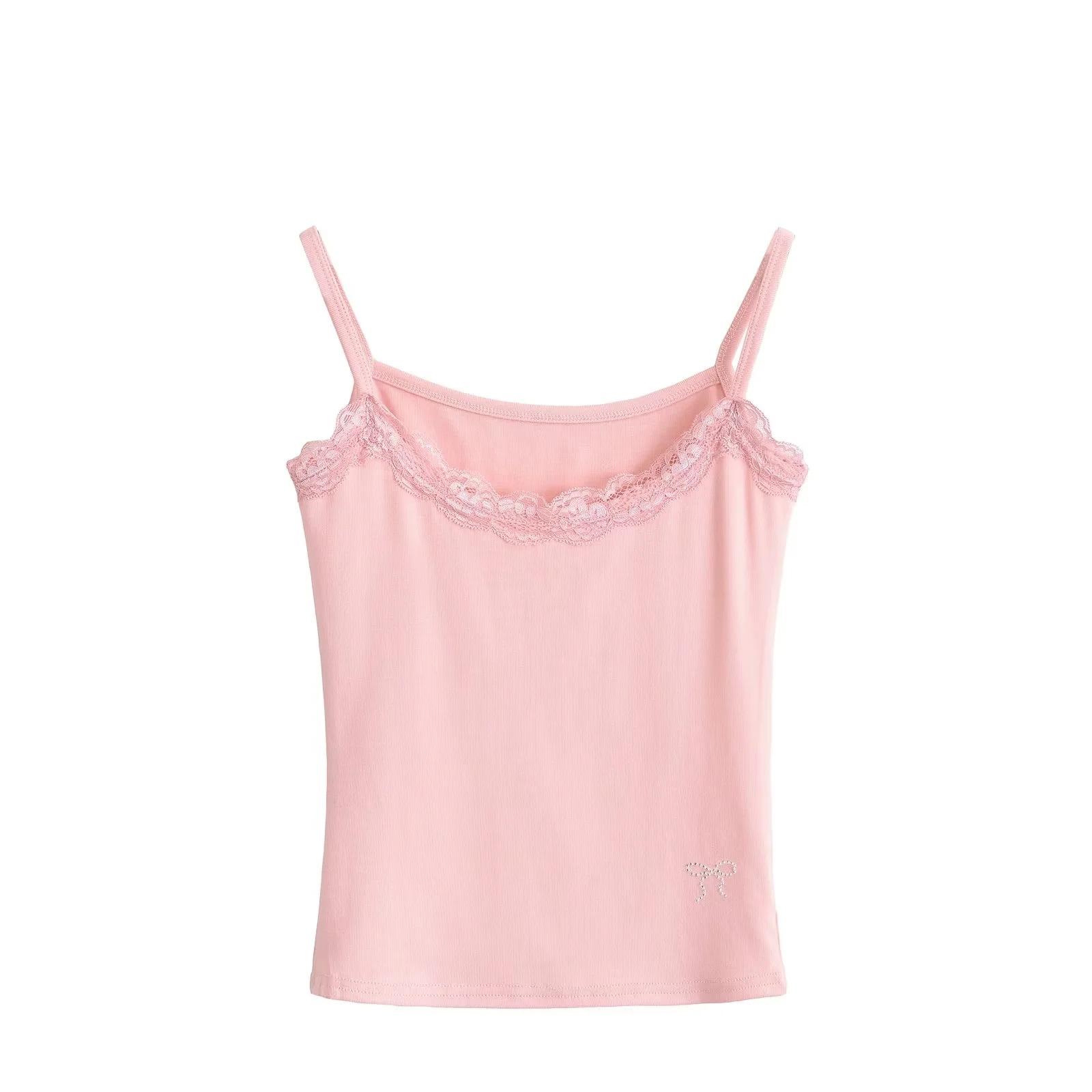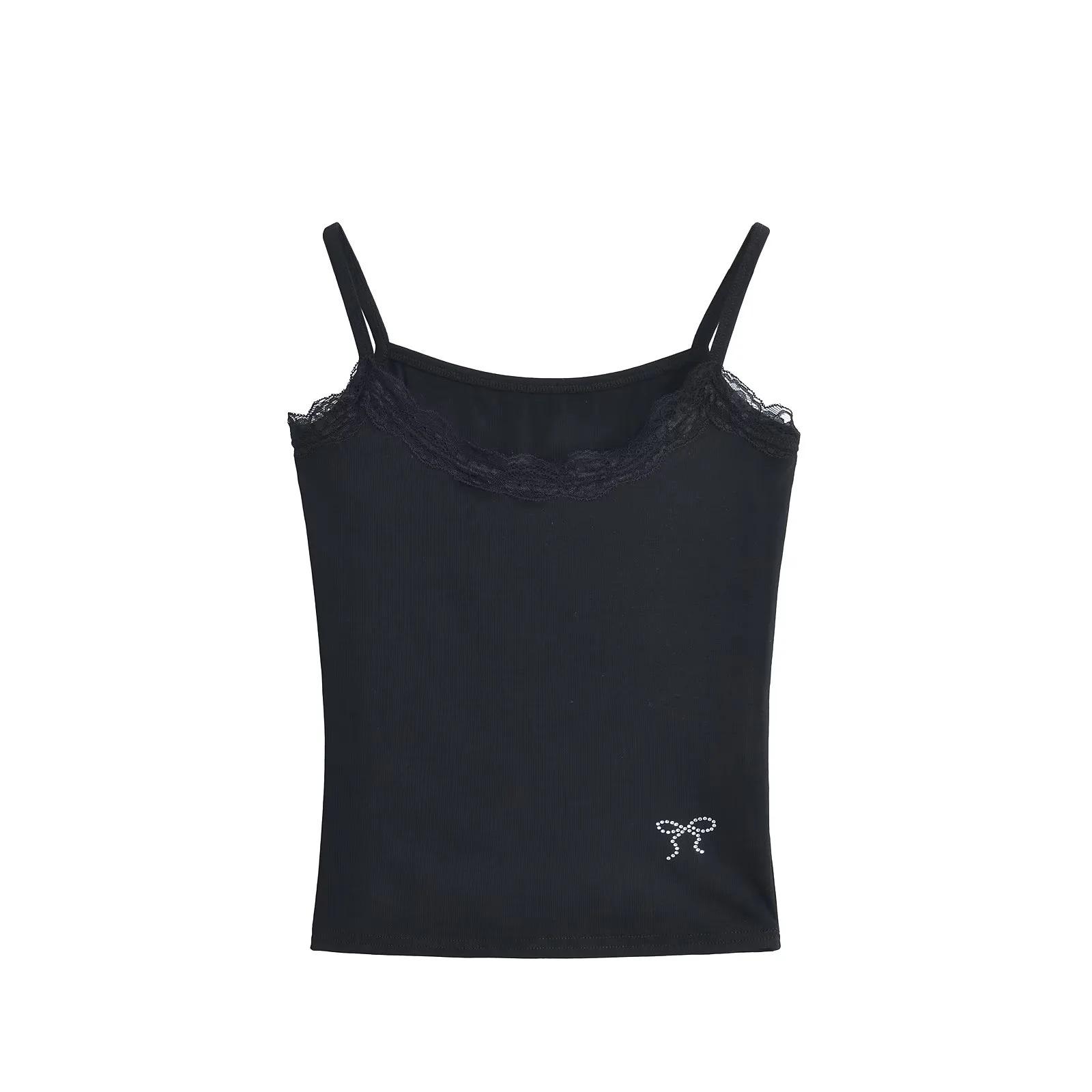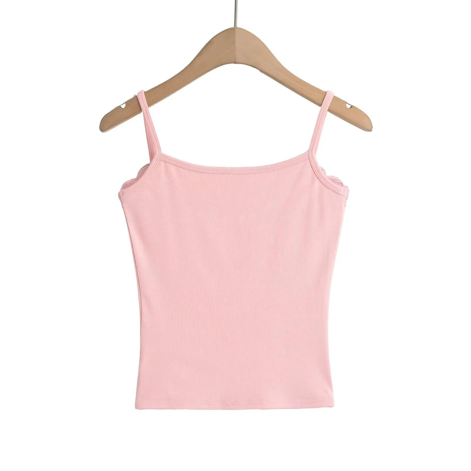 Camisola de encaje con base interior estilo Spice Girl estilo americano para mujer, prenda exterior de verano, top corto ajustado sin tirantes