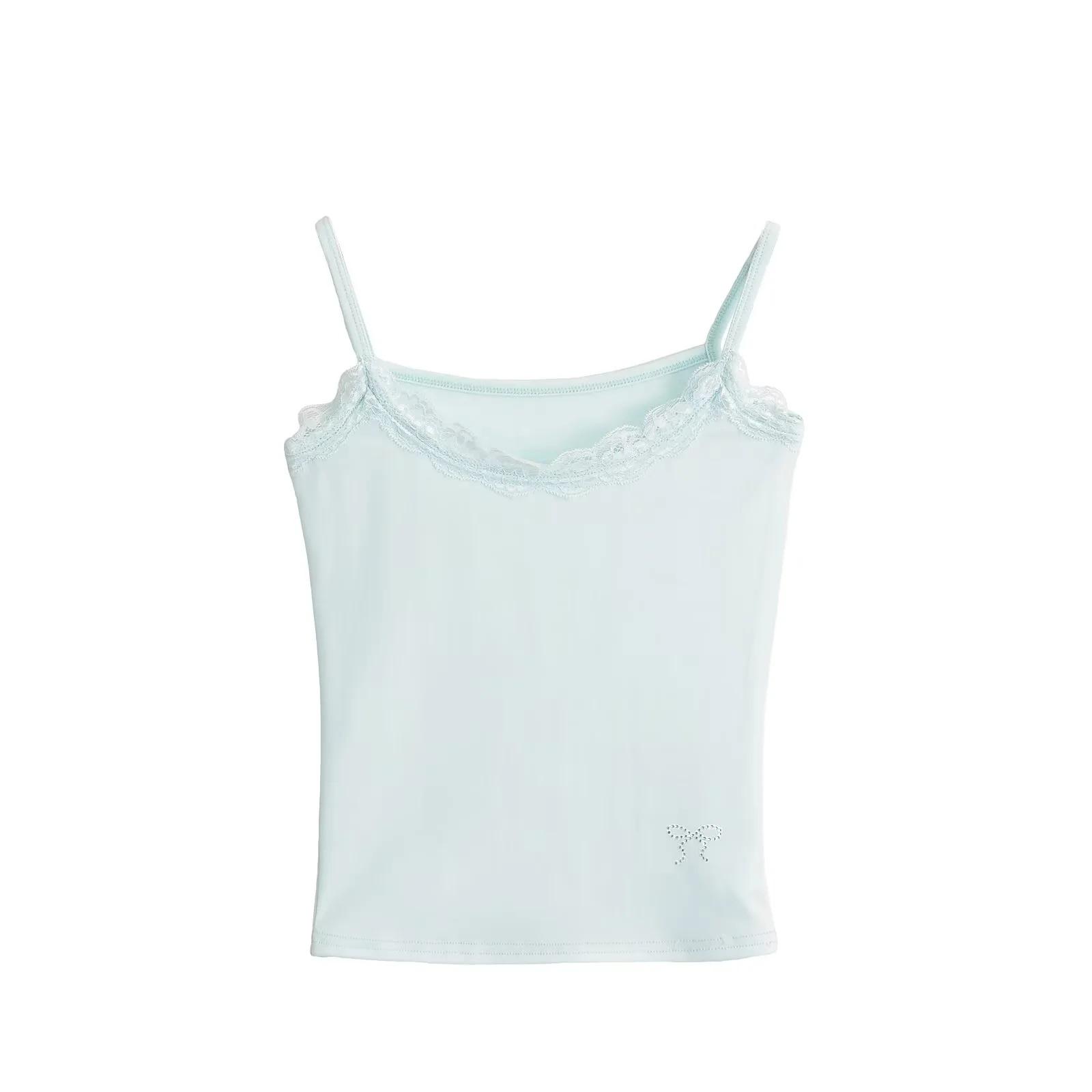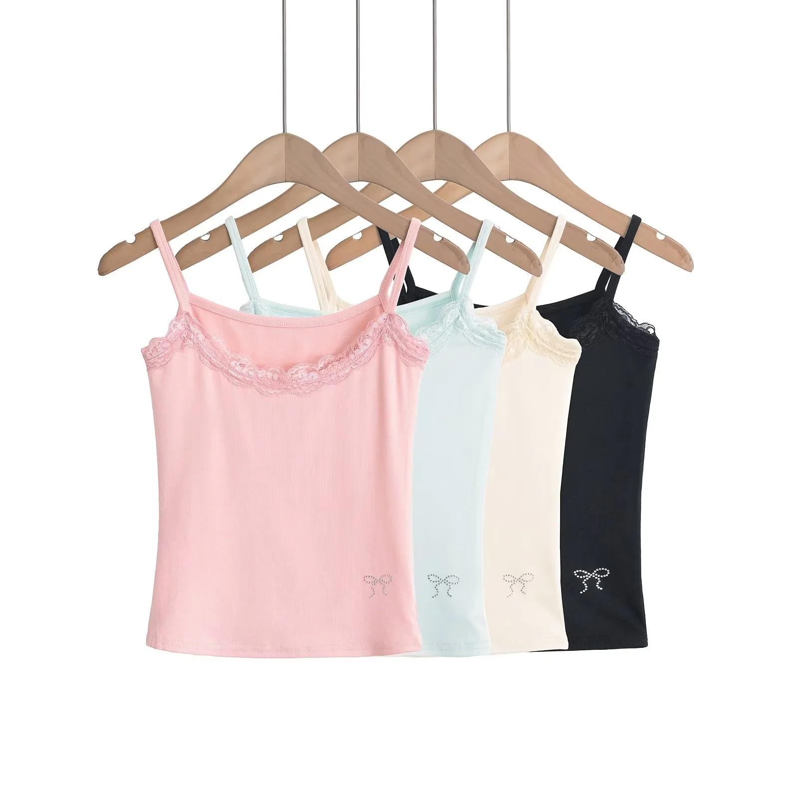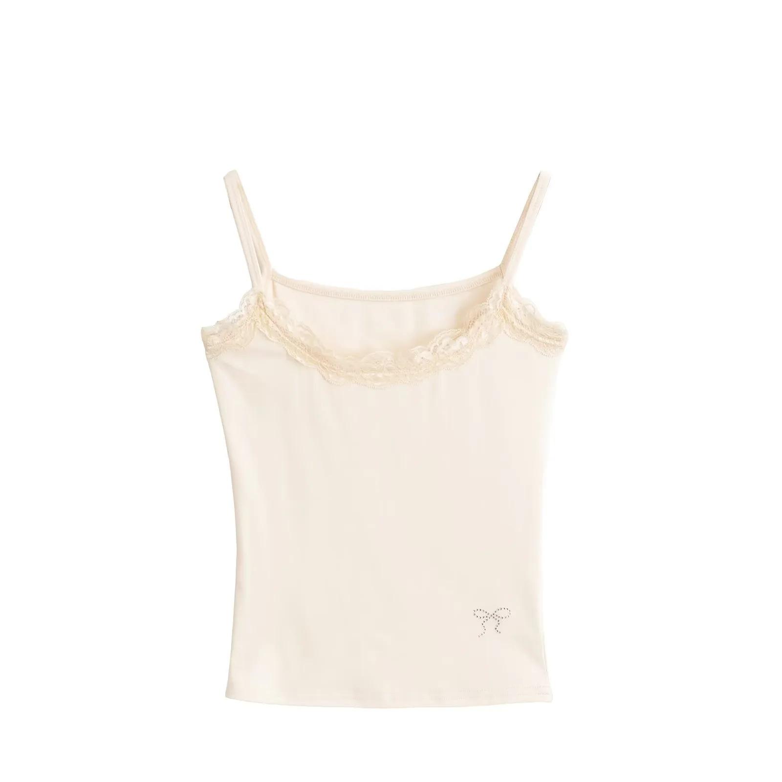Camisola de encaje con base interior estilo Spice Girl estilo americano para mujer, prenda exterior de verano, top corto ajustado sin tirantes