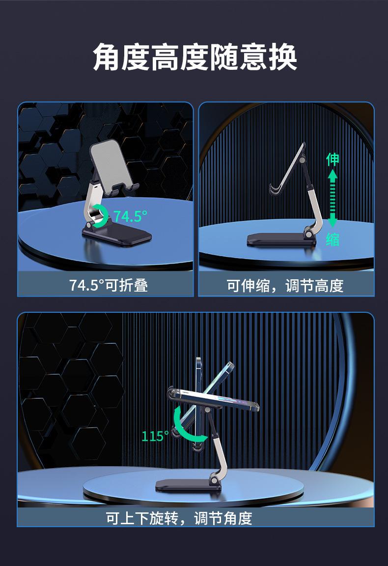 Soporte para teléfono móvil de escritorio de aleación de aluminio giratorio de 360 grados, soporte para tableta, soporte para computadora, oficina, drama, transmisión en vivo, portátil, plegable