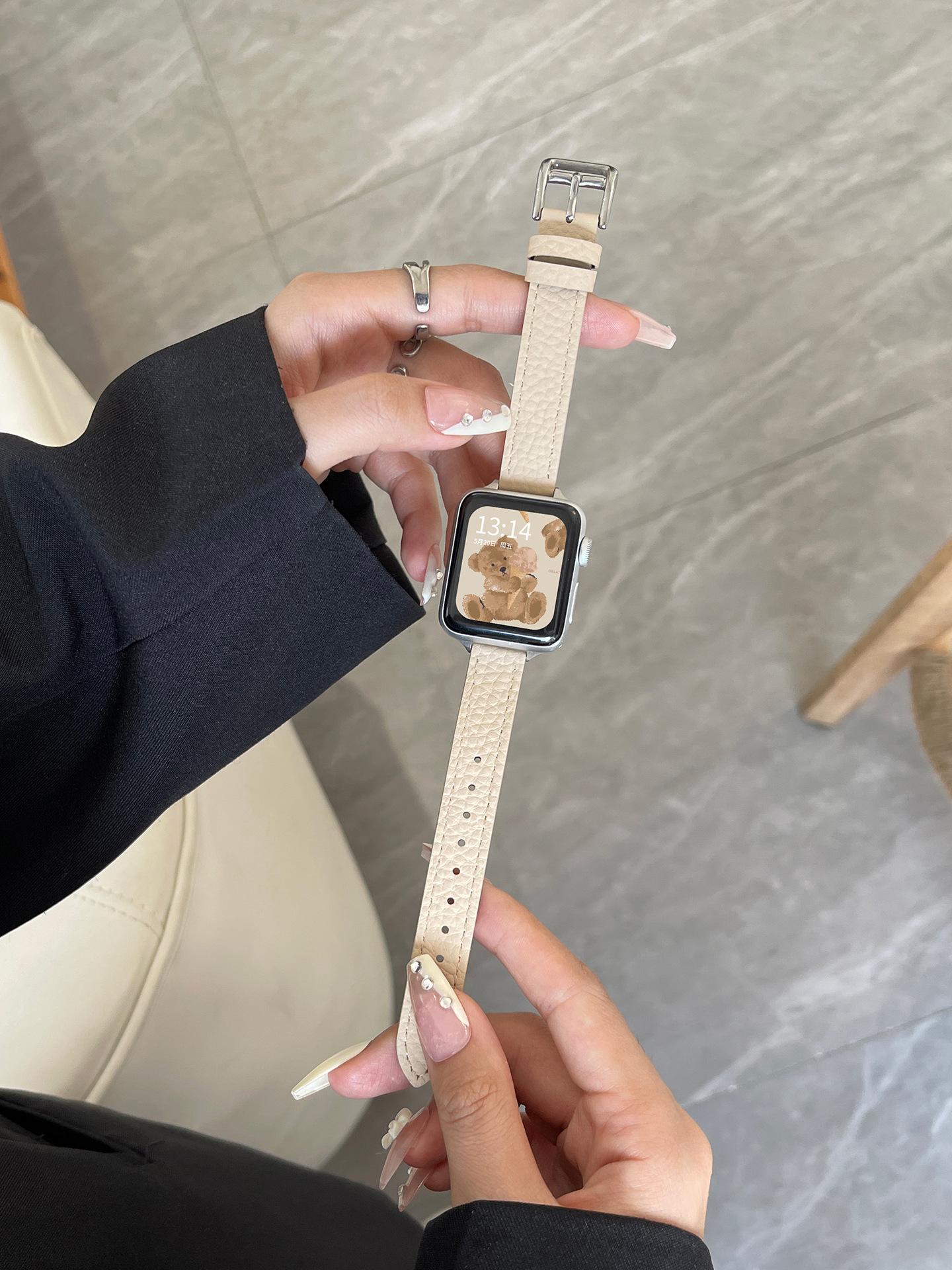 Adecuado para Apple Watch s10 Correa de Cuero 9/8/7/6/5/4/3/SE Generación Correa de Reloj para Niñas Otoño e Invierno Nuevo