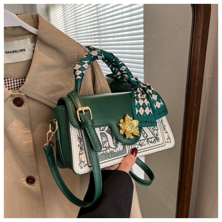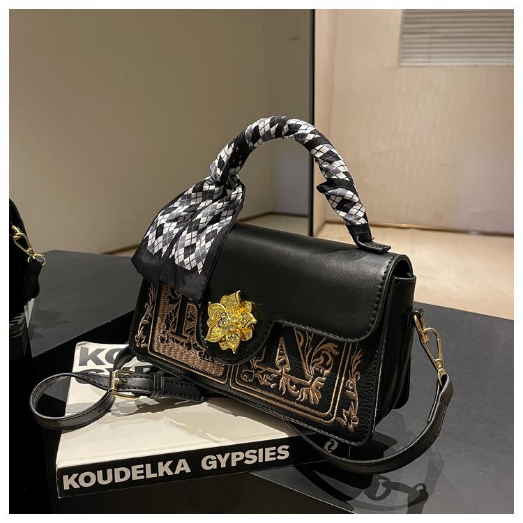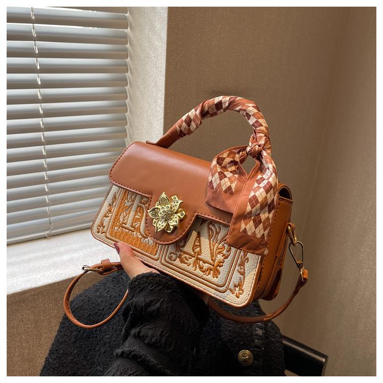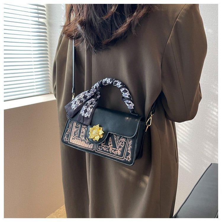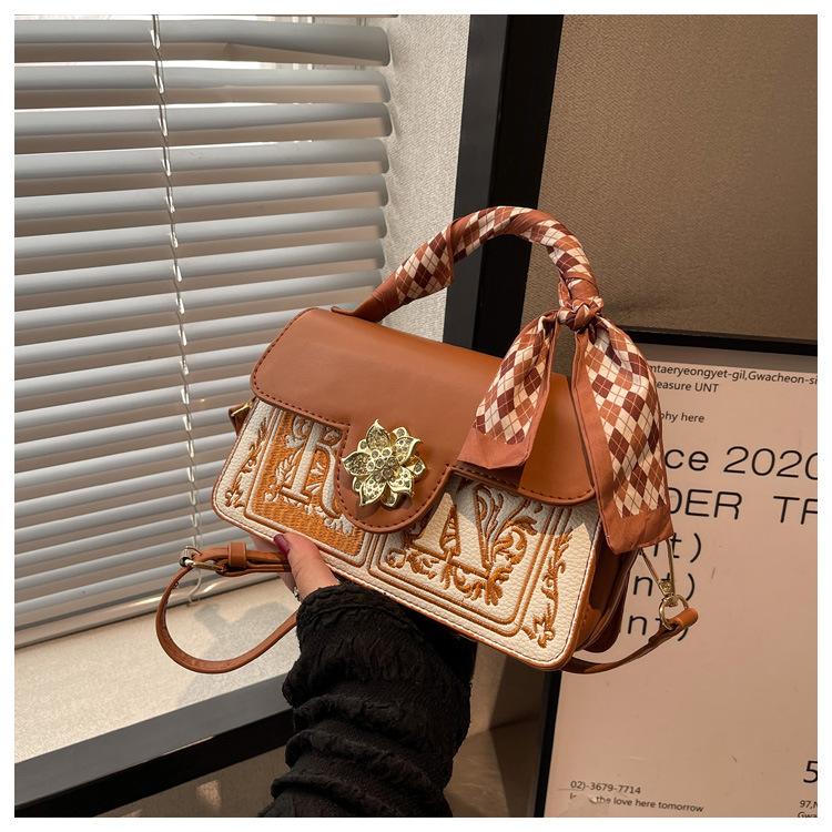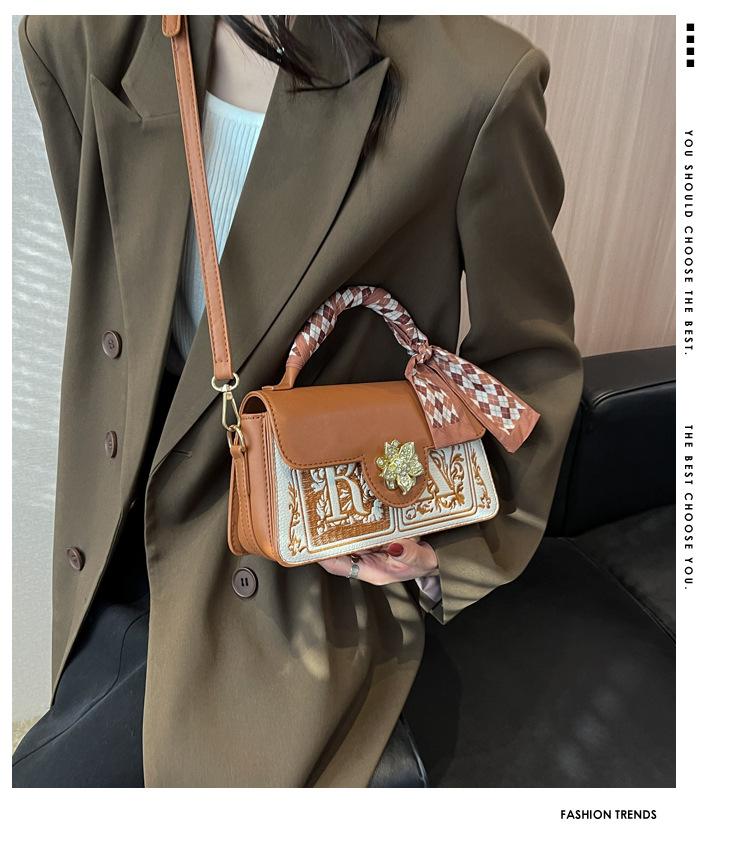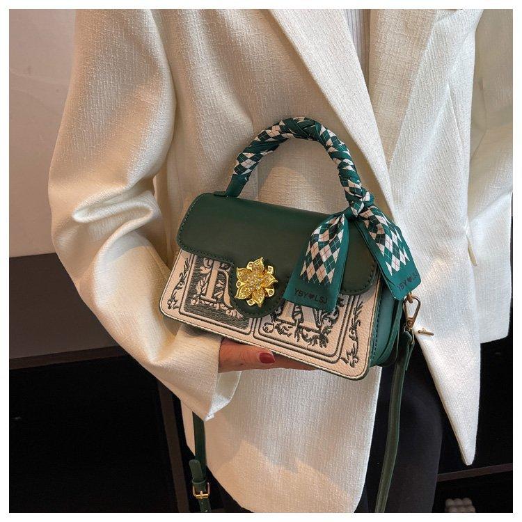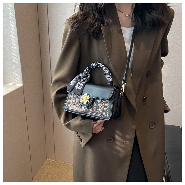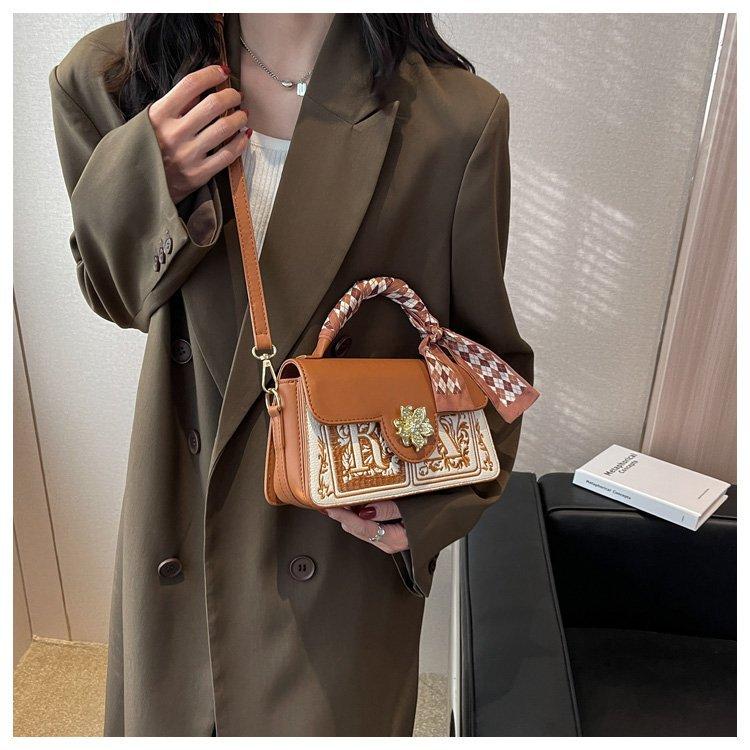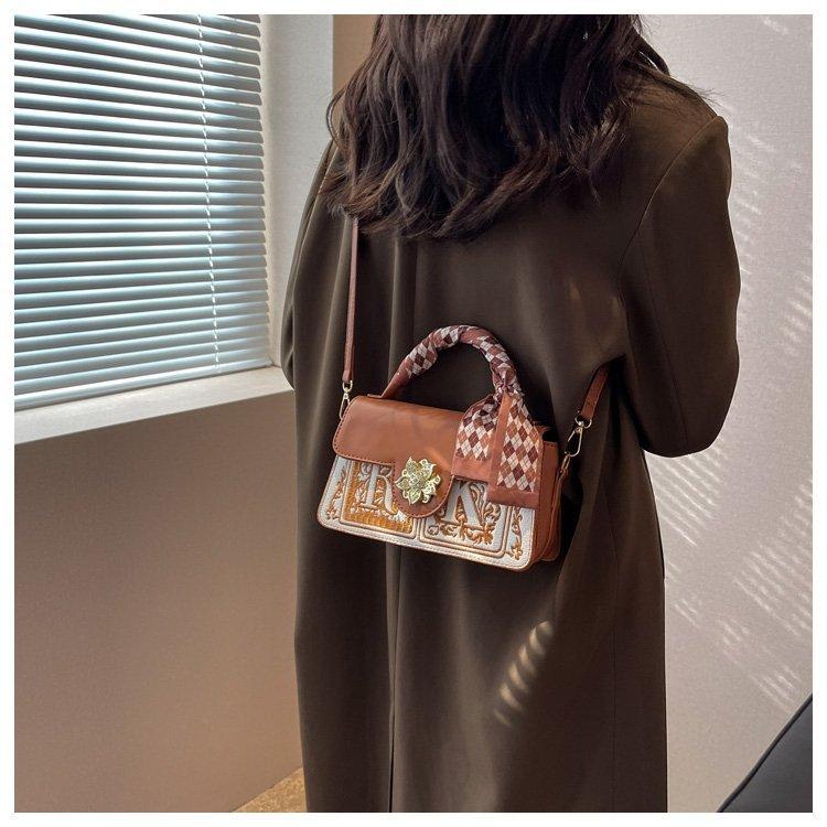 Bolso pequeño de moda 2024 para mujer, popular bolso bandolera combinable, estilo occidental, retro, bordado, pequeño bolso cuadrado.