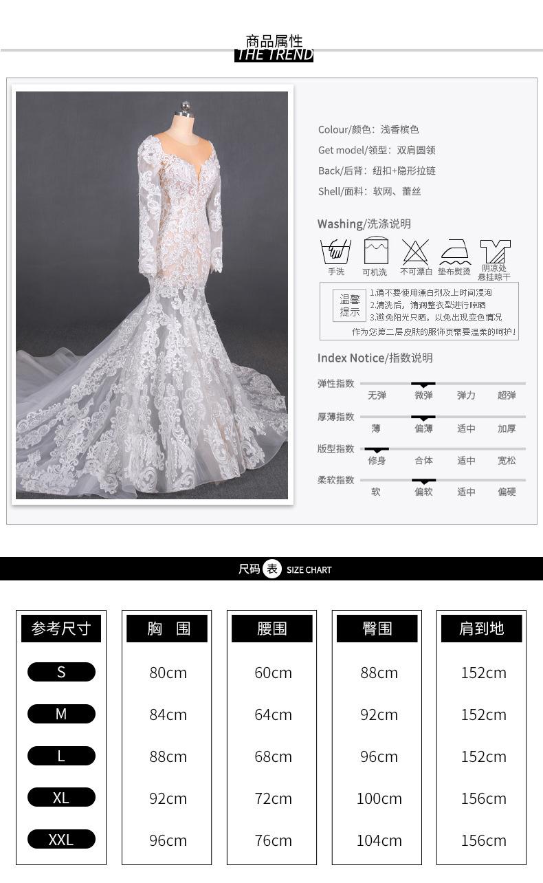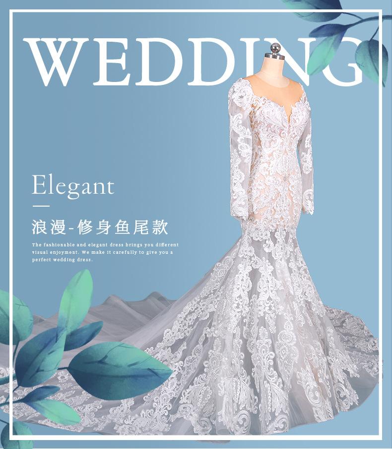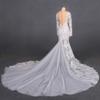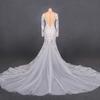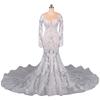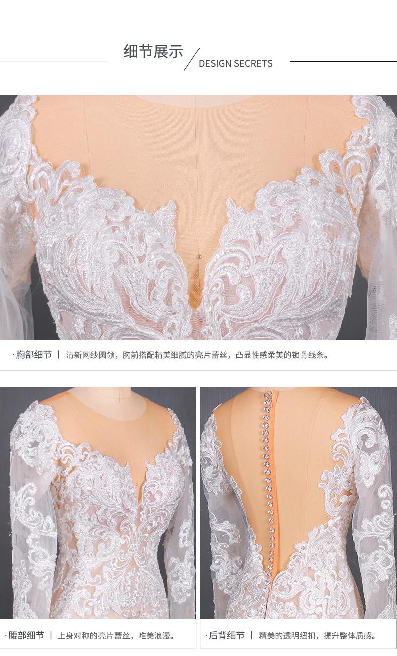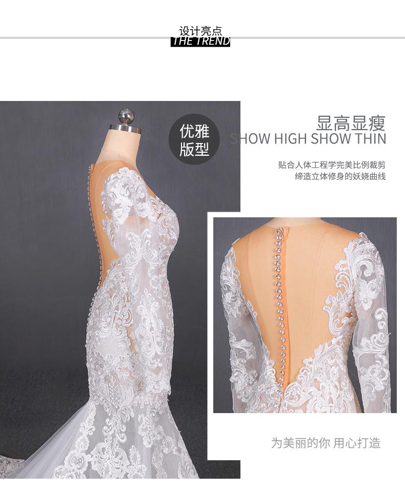 Nuevo vestido de novia de cola de pez entallado de encaje de malla, manga larga, cuello redondo, cola grande, alto, delgado, sexy, para boda