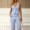 Verano 2023 Pantalones de traje sin mangas con cuello en V estampados a rayas para el hogar, informales, de comercio exterior transfronterizo de Amazon, Europa y América