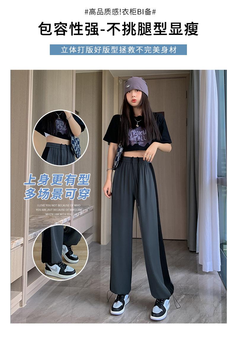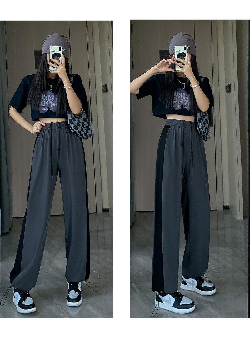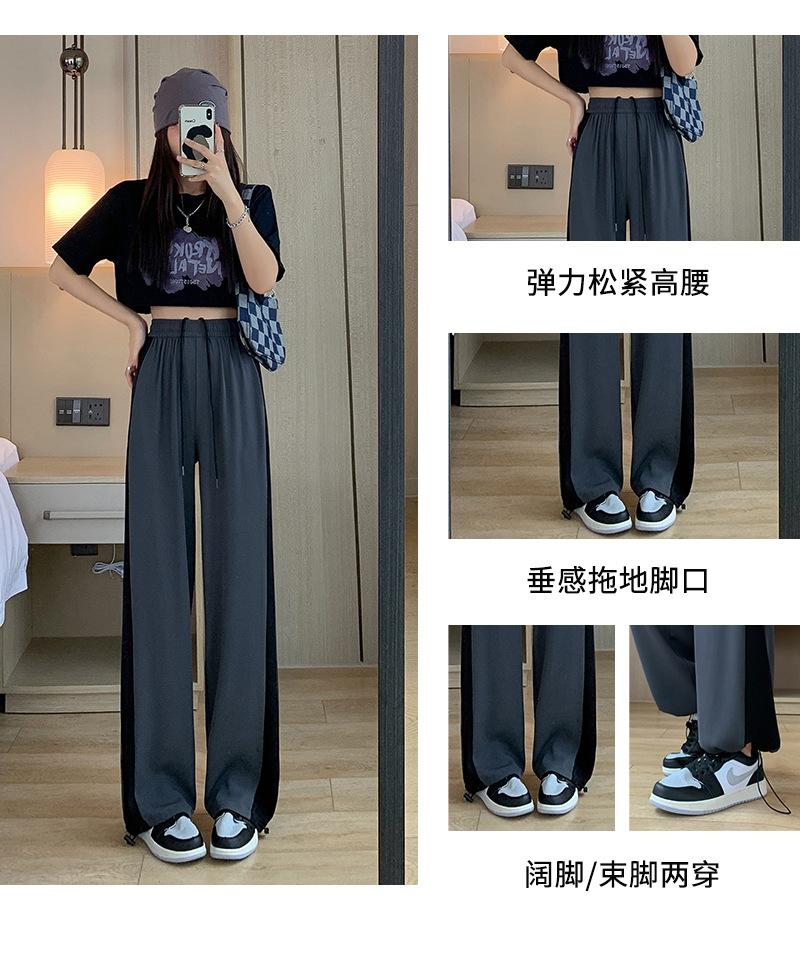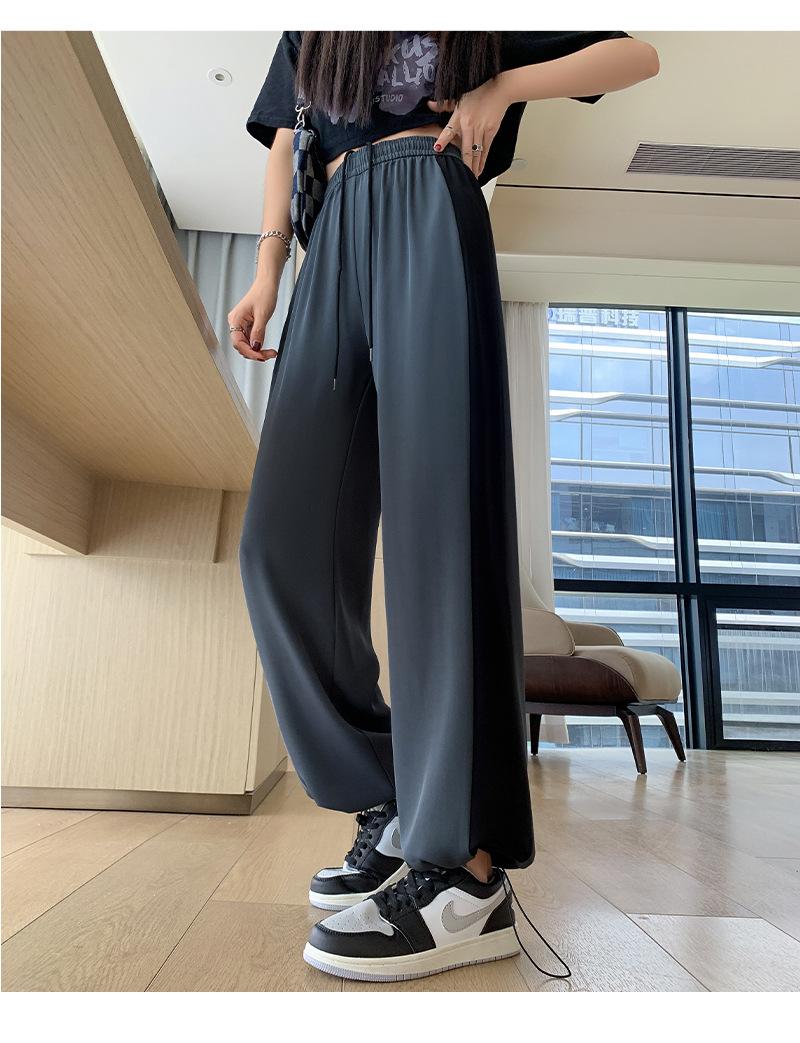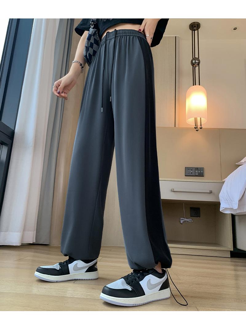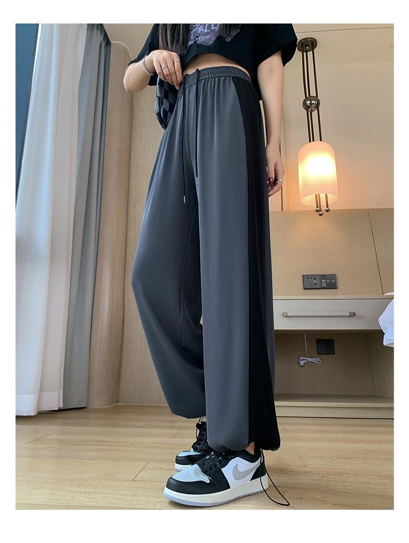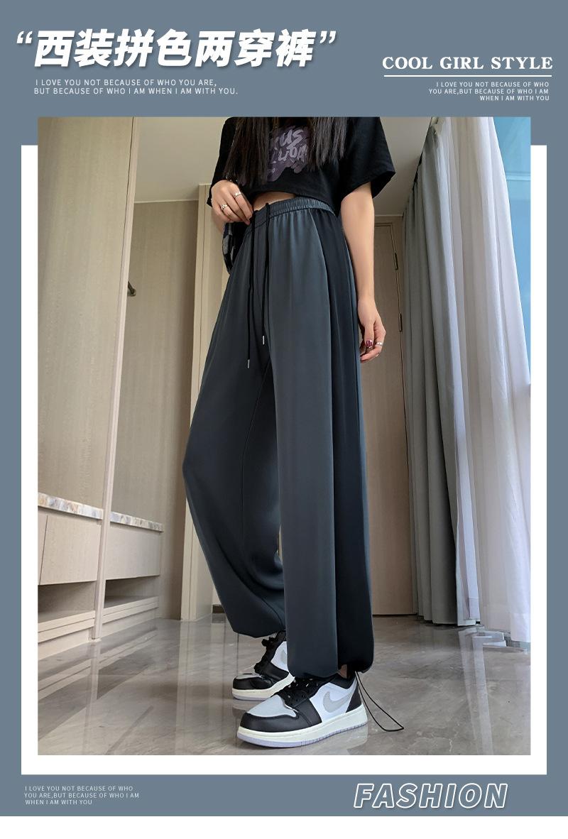 Pantalones deportivos de cintura alta con drapeado y atado al tobillo, de colores a juego, para mujer, de verano, finos, de secado rápido, con protección solar, pantalones deportivos con cordón, pantalones de pierna ancha