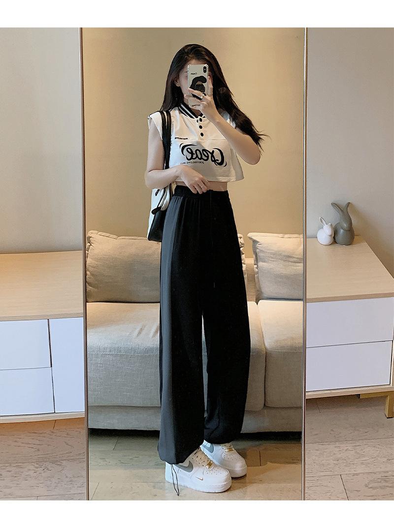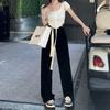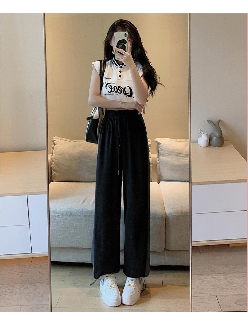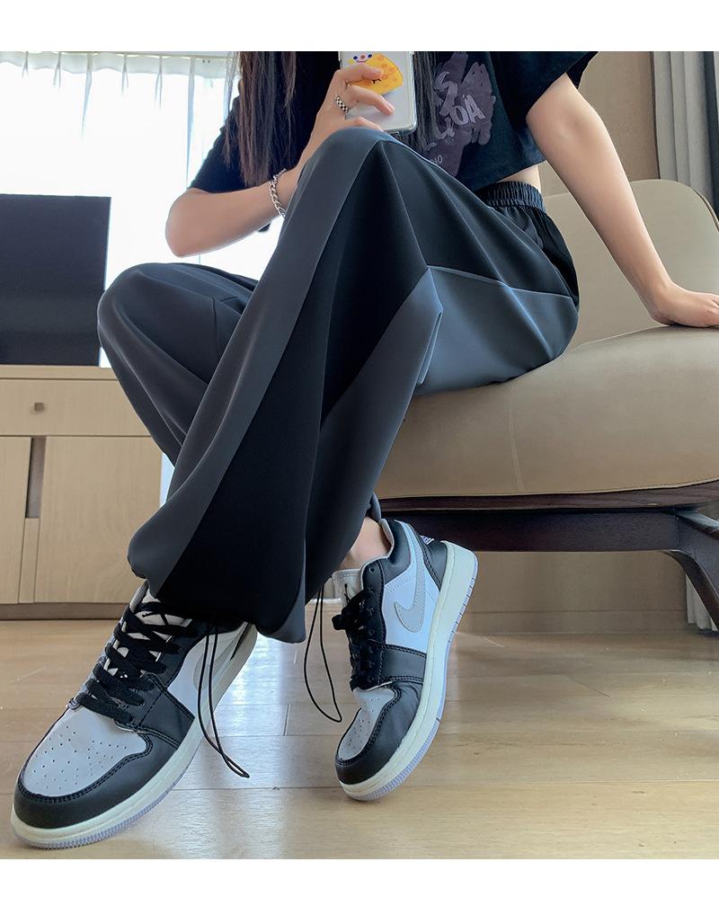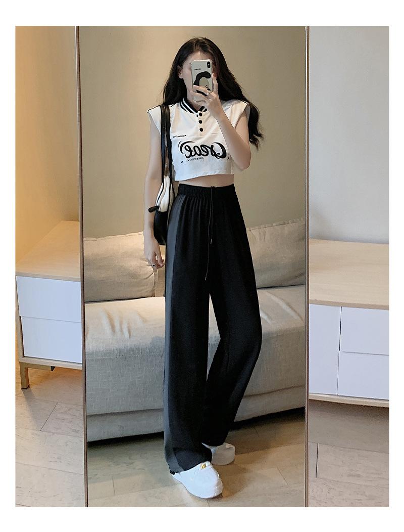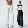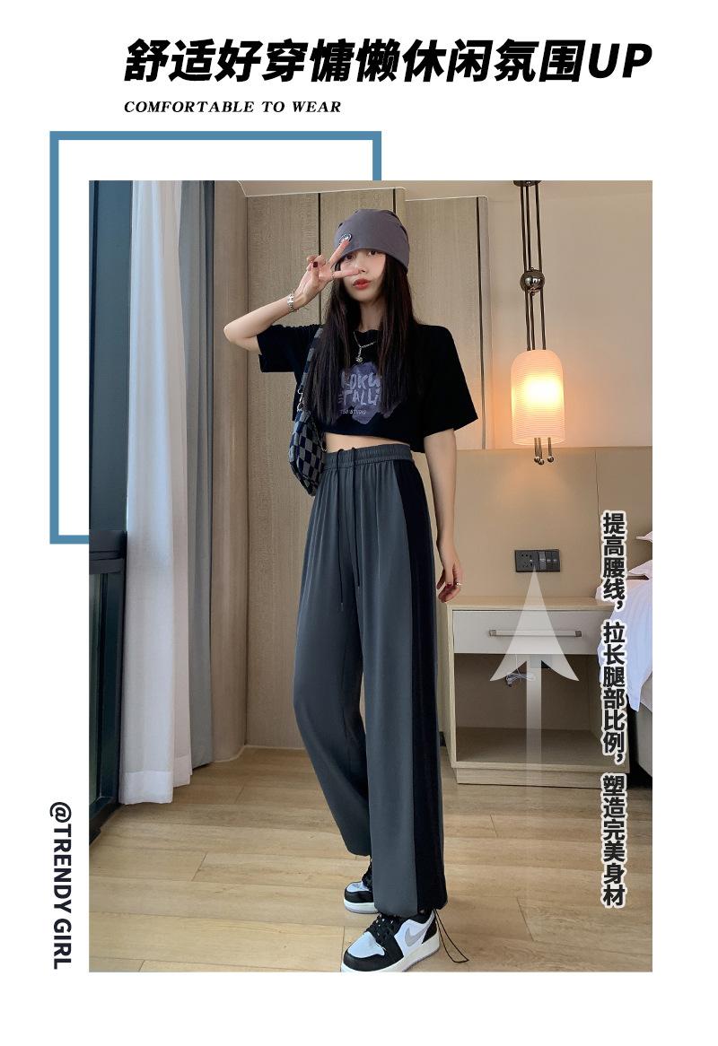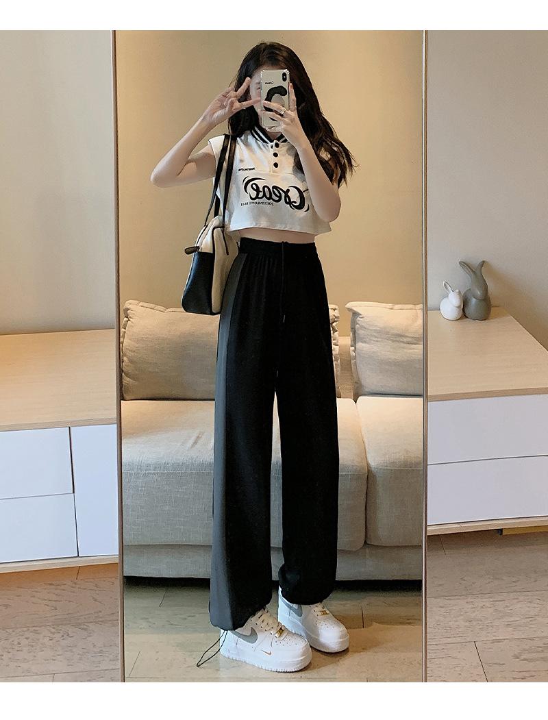 Pantalones deportivos de cintura alta con drapeado y atado al tobillo, de colores a juego, para mujer, de verano, finos, de secado rápido, con protección solar, pantalones deportivos con cordón, pantalones de pierna ancha