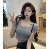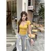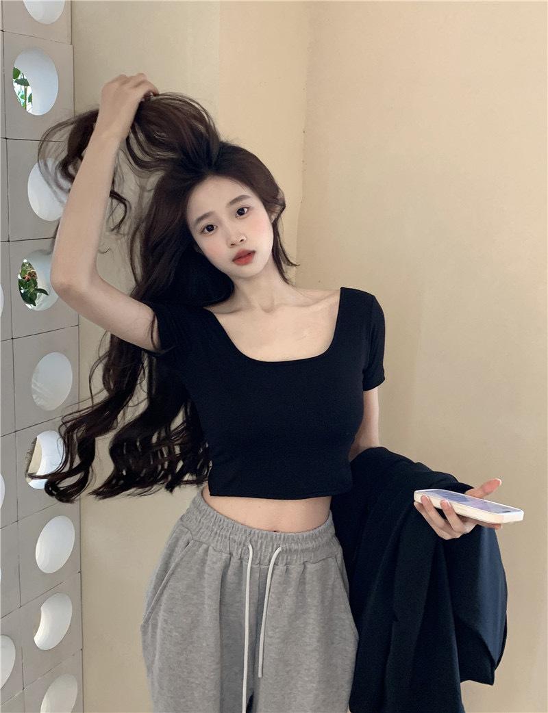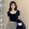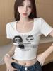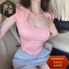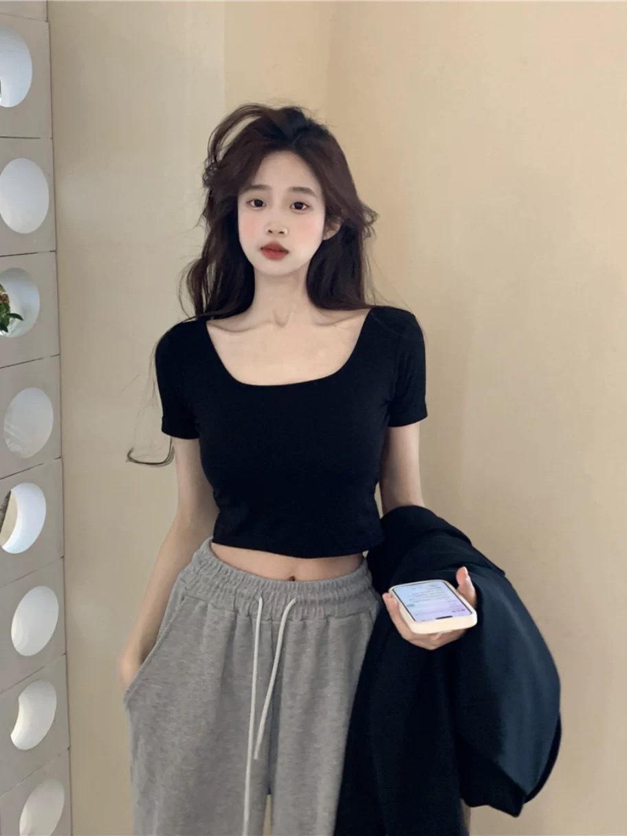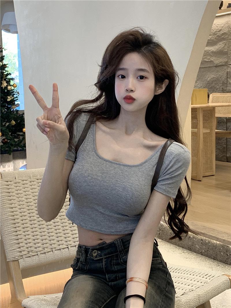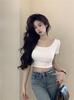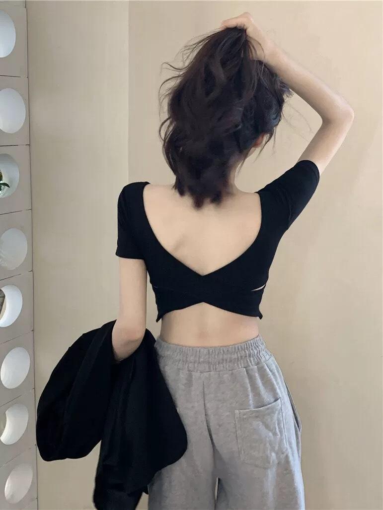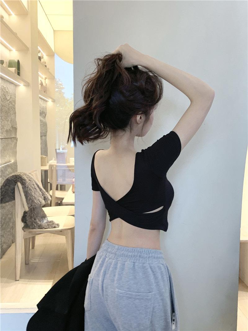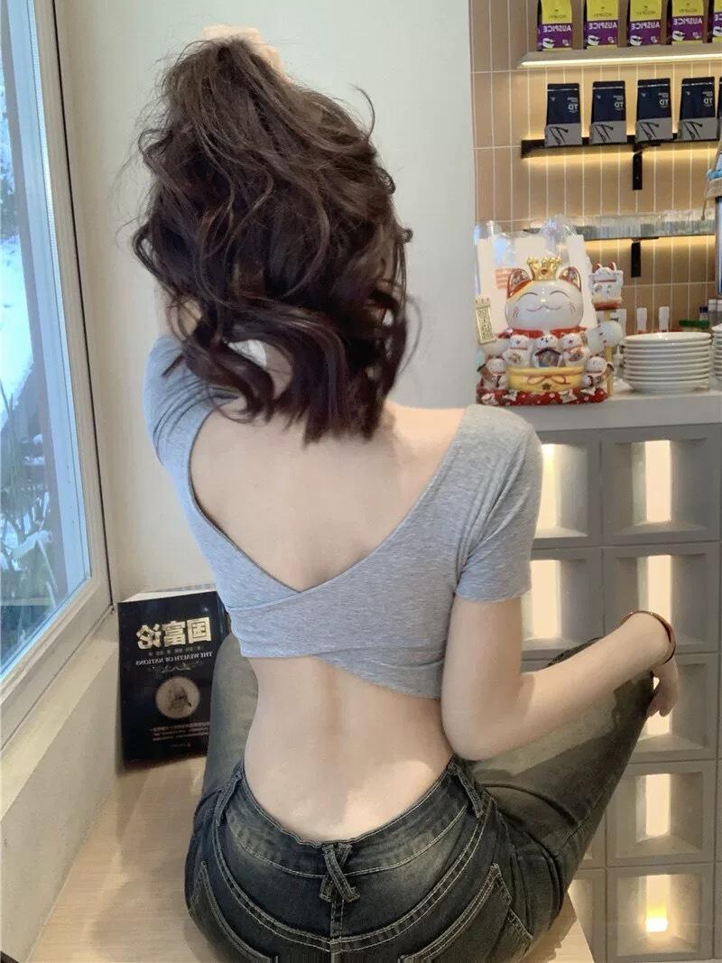 Diseño de nicho con almohadilla en el pecho espalda cruzada camiseta de manga corta para mujer verano 2024 Nuevo top corto adelgazante ins