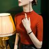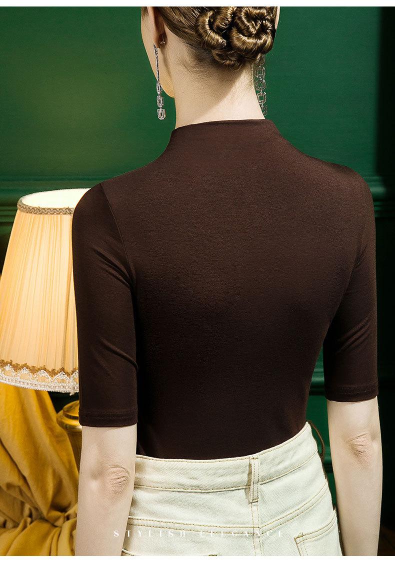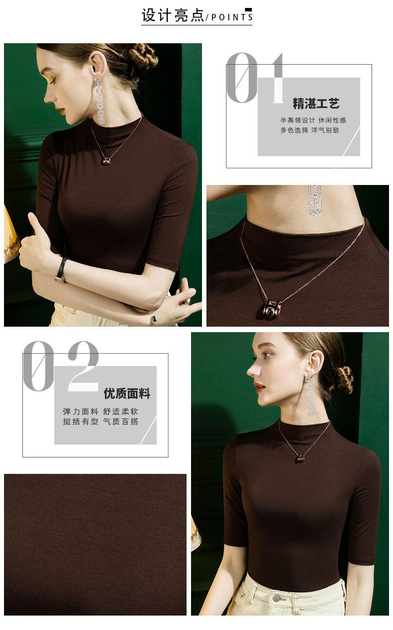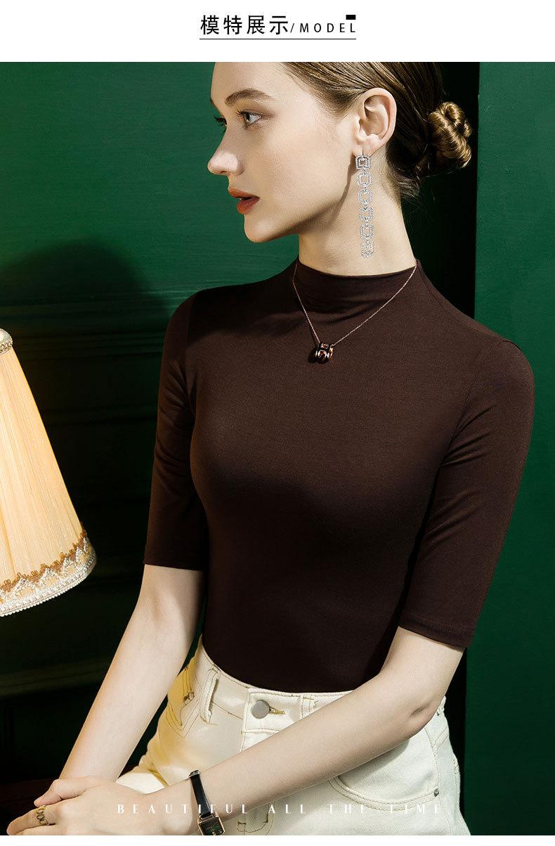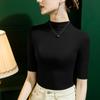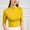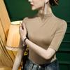 Otoño 2022 Nueva camiseta básica modal de cuello medio alto para mujer, camiseta de media manga ajustada para primavera y otoño con manga media interior
