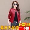 Chaqueta Clásica de Primavera Nueva Negra Corta Slim Estilo Coreano Piel de Cordero Chaqueta de Cuero para Mujer Piel Genuina Piel de Cabra