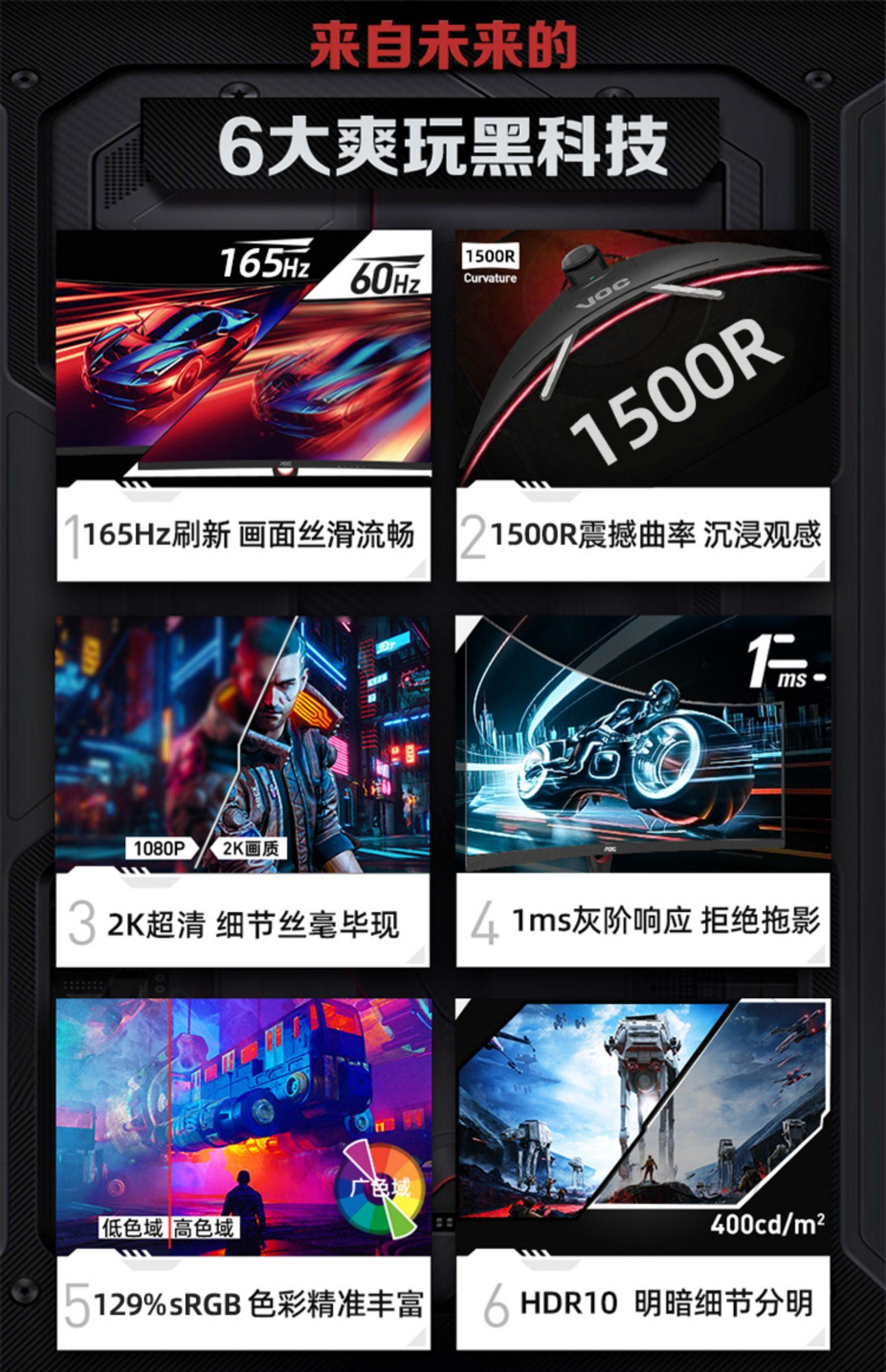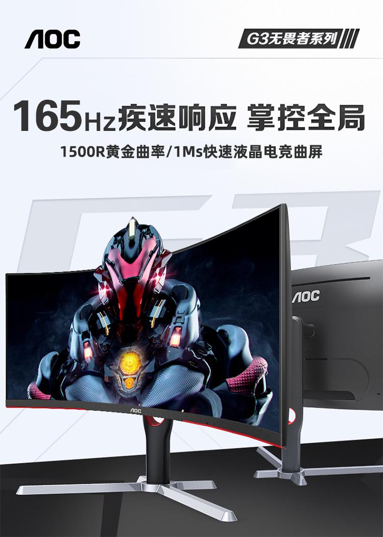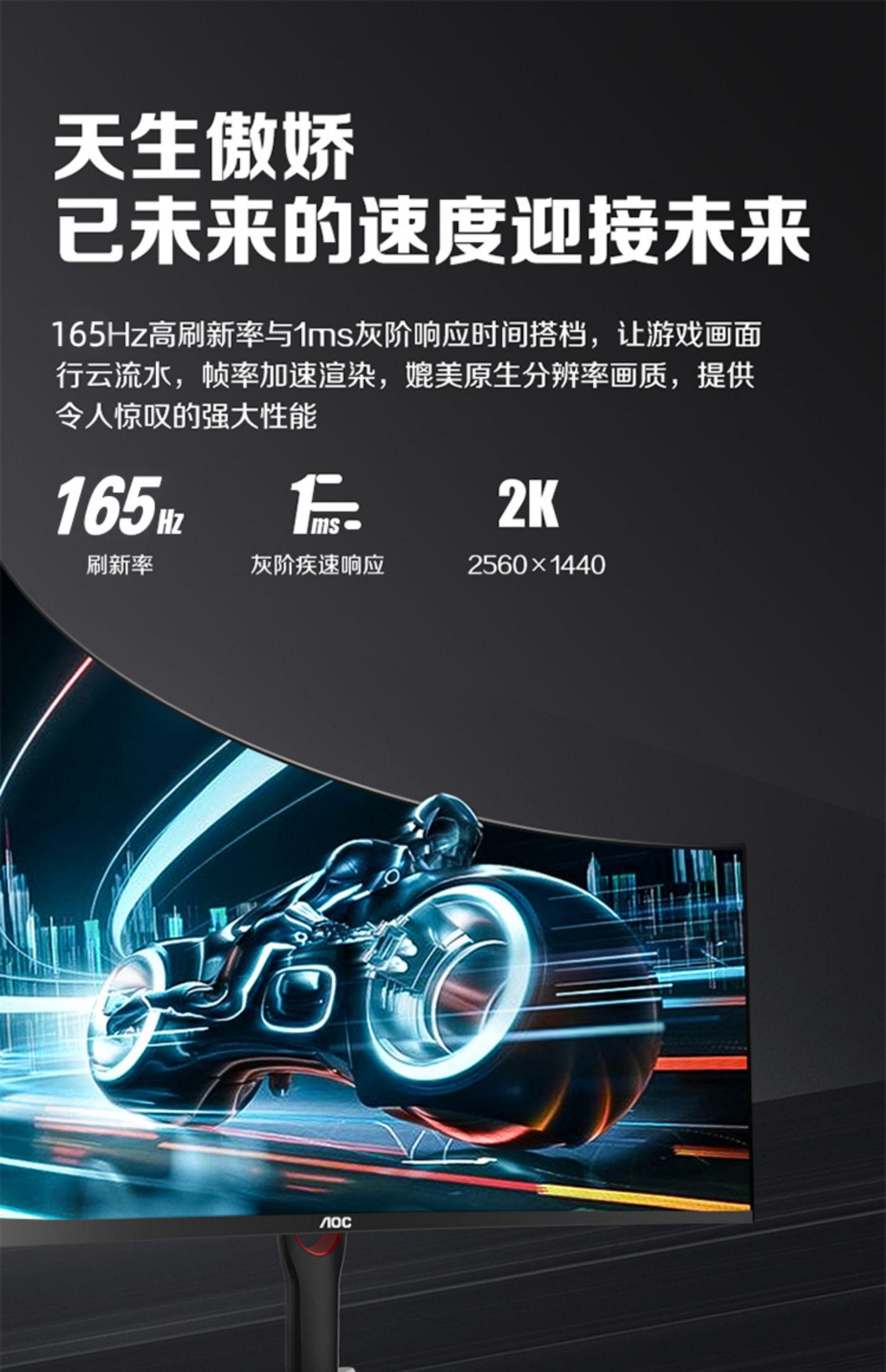 Aoc Cq32G3S 32 Pulgadas 2K 165Hz Tasa de Curvatura 1500R 1Ms Monitor Gaming Curvo Pantalla Lcd
