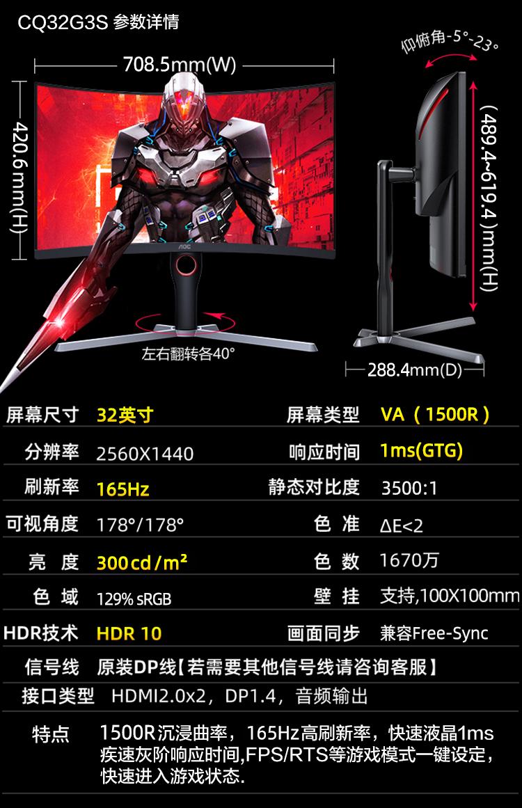 CQ32G3S 32 inch 2K 165Hz 1Ms Rotary Lift