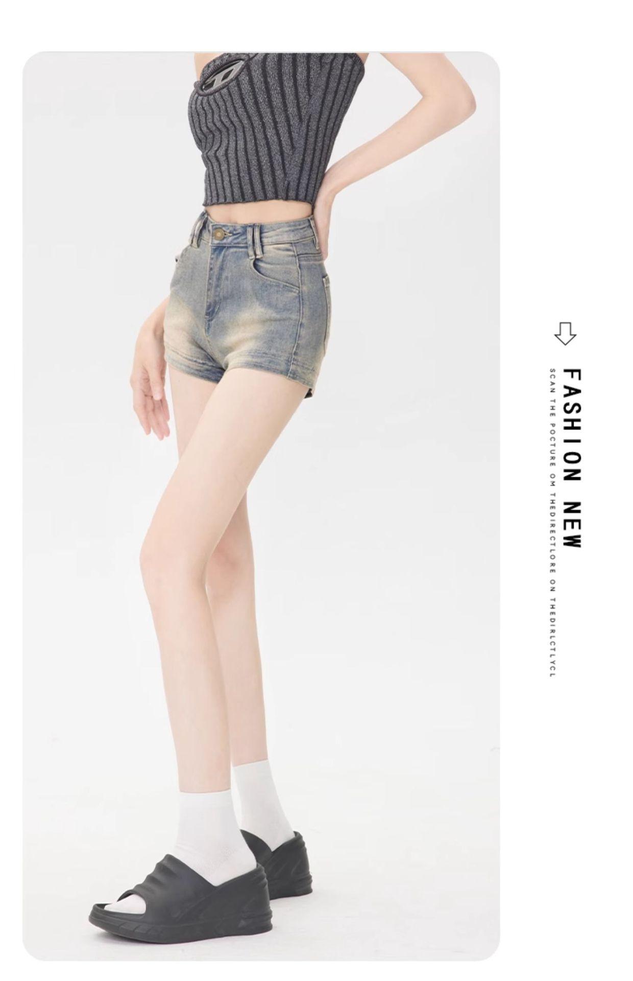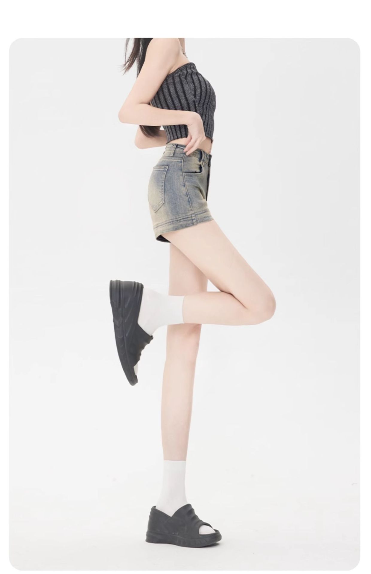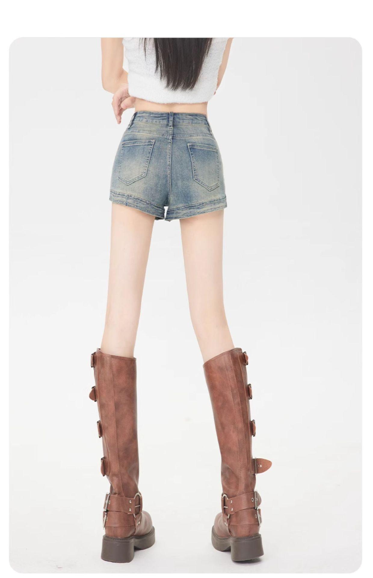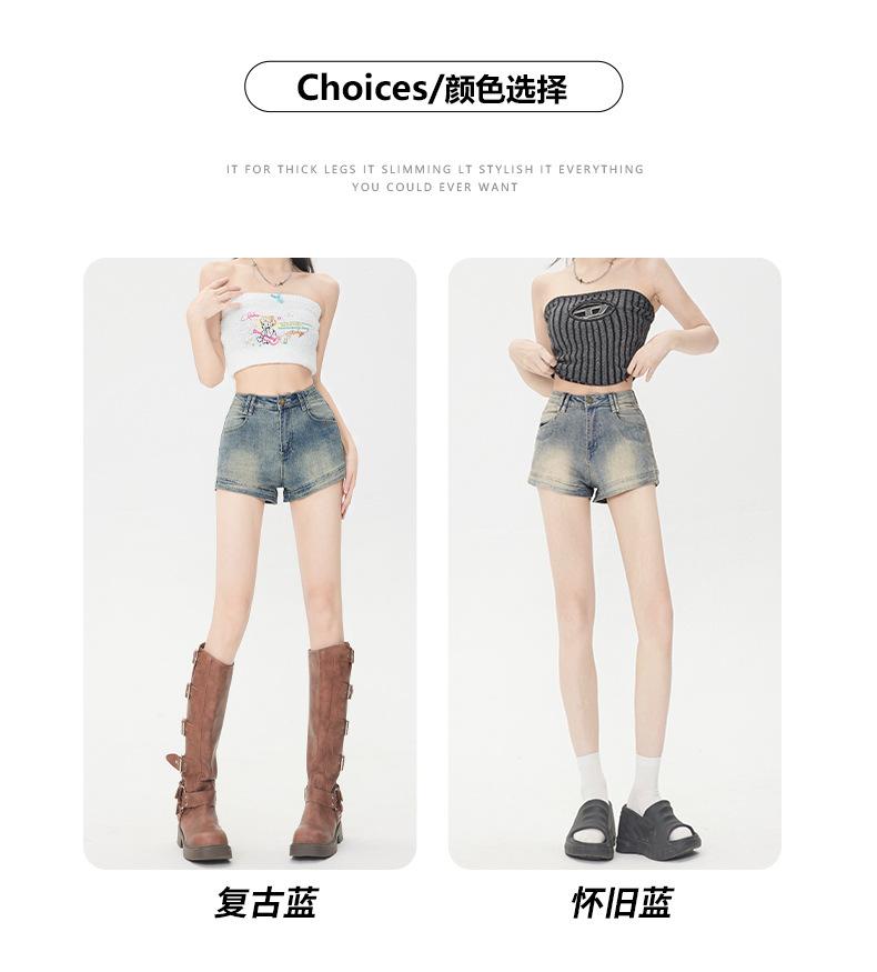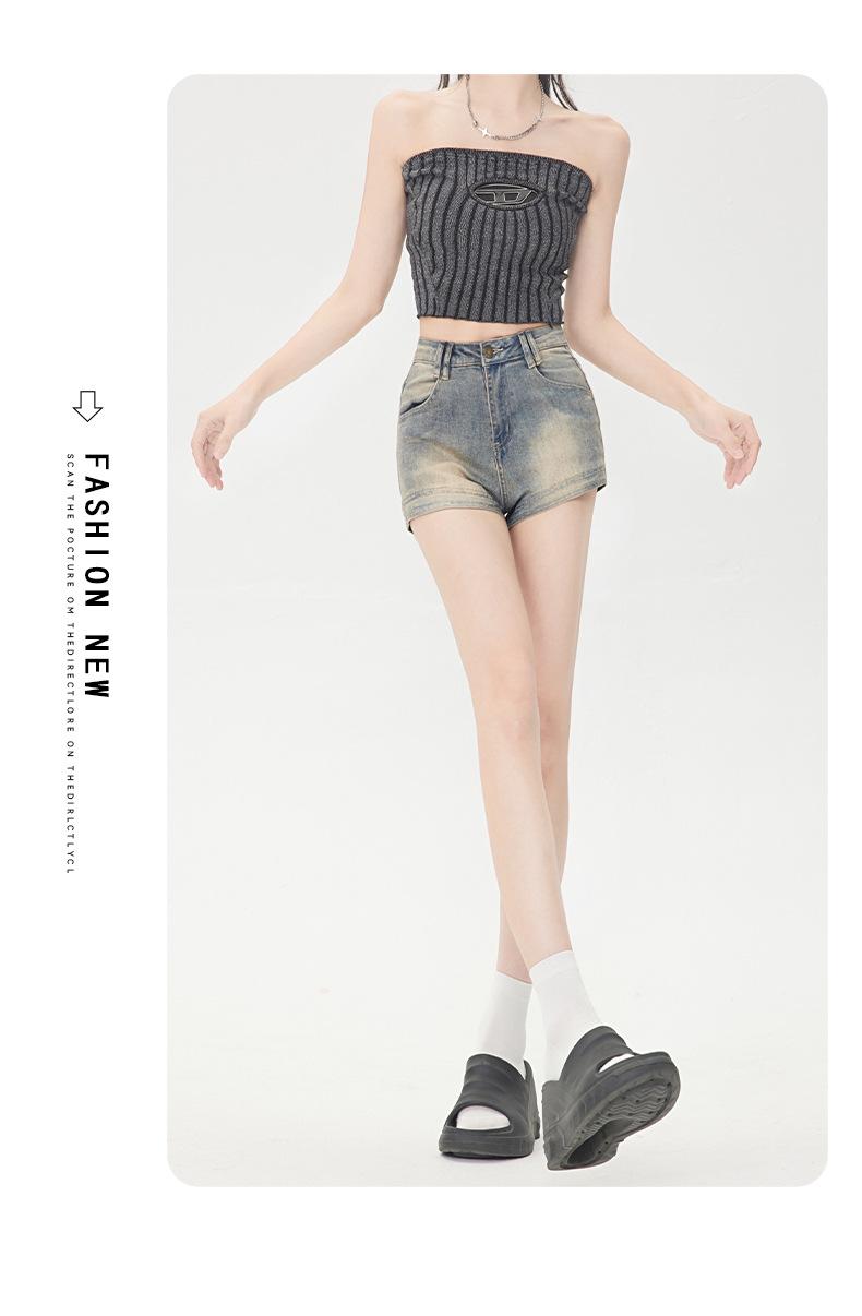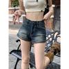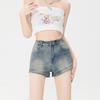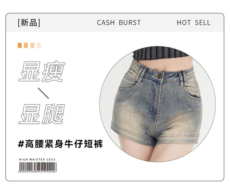 Shorts de mezclilla retro americanos para mujer Verano 2025 Nuevo Cintura alta Ajustado Look adelgazante Línea A Sexy Ultracortos Hot Pants Modernos