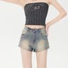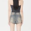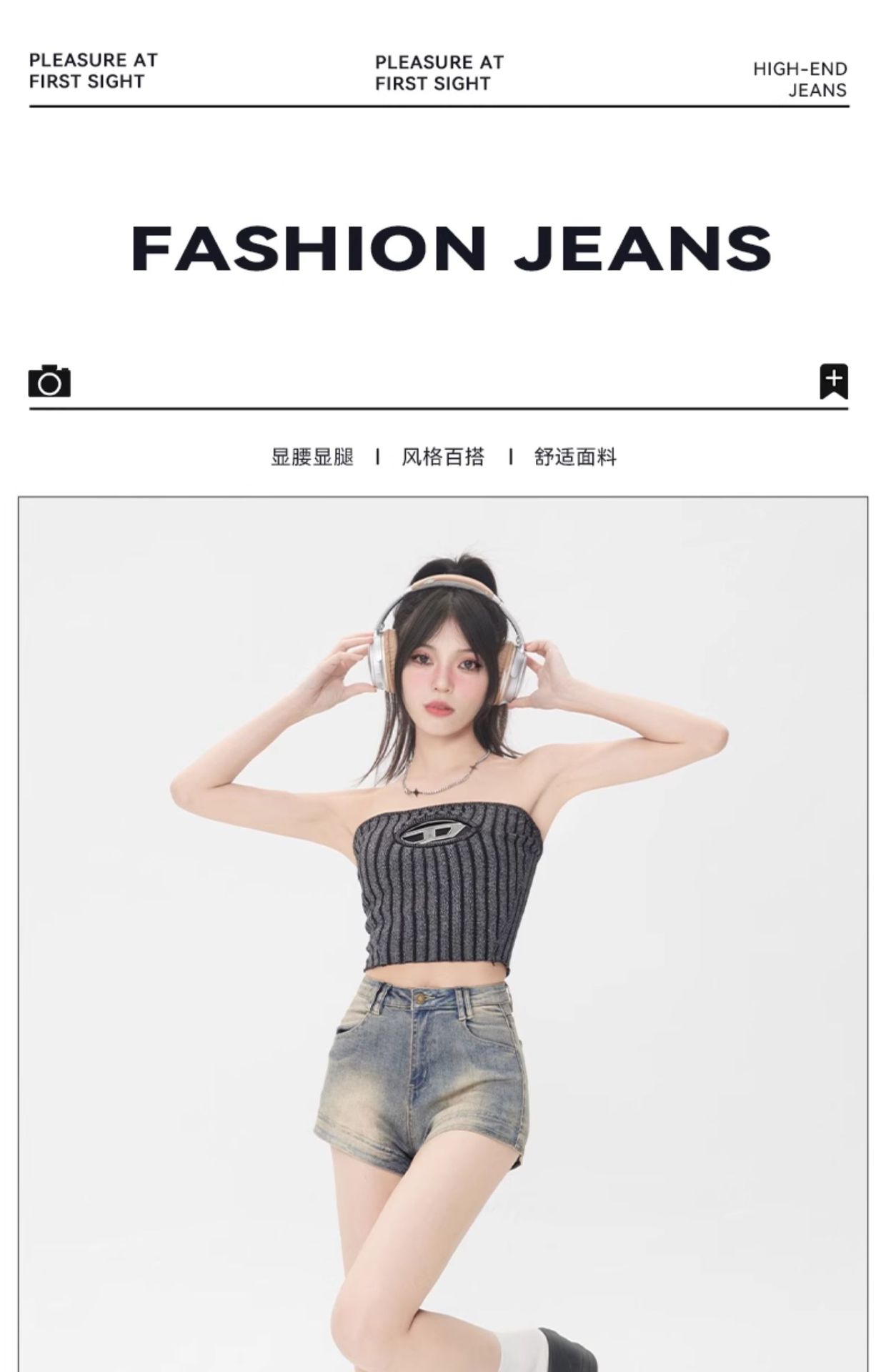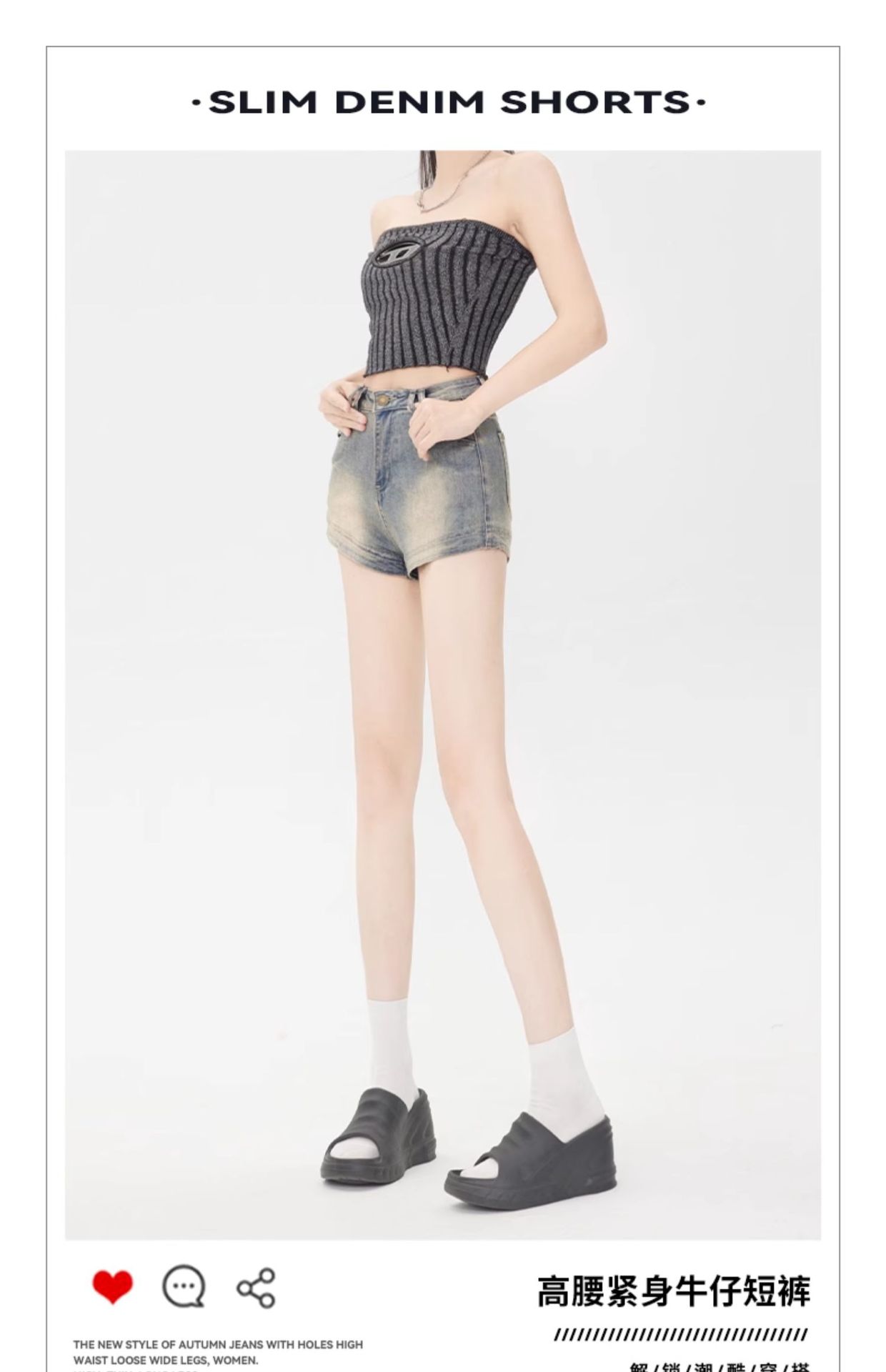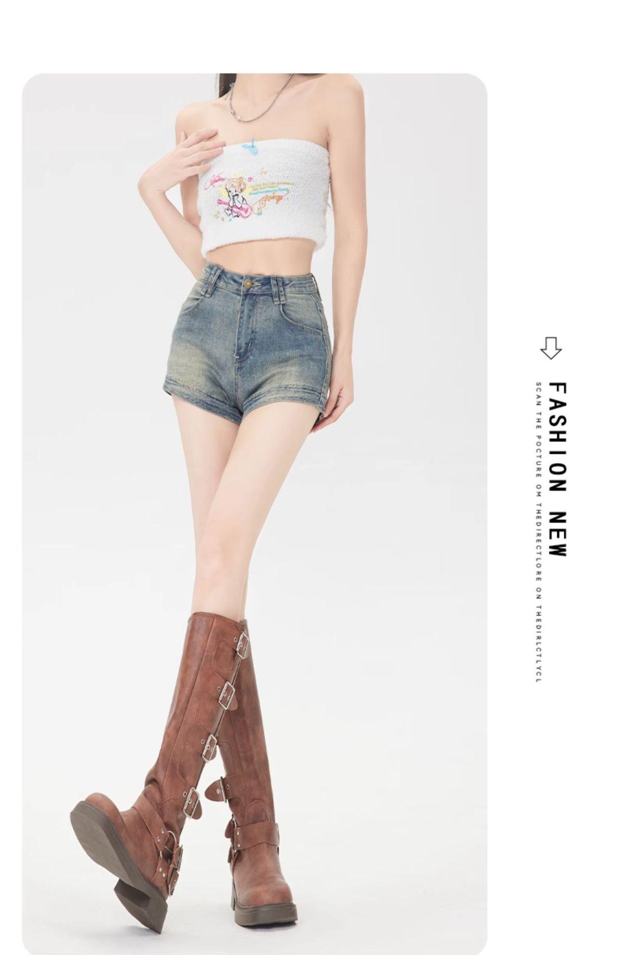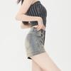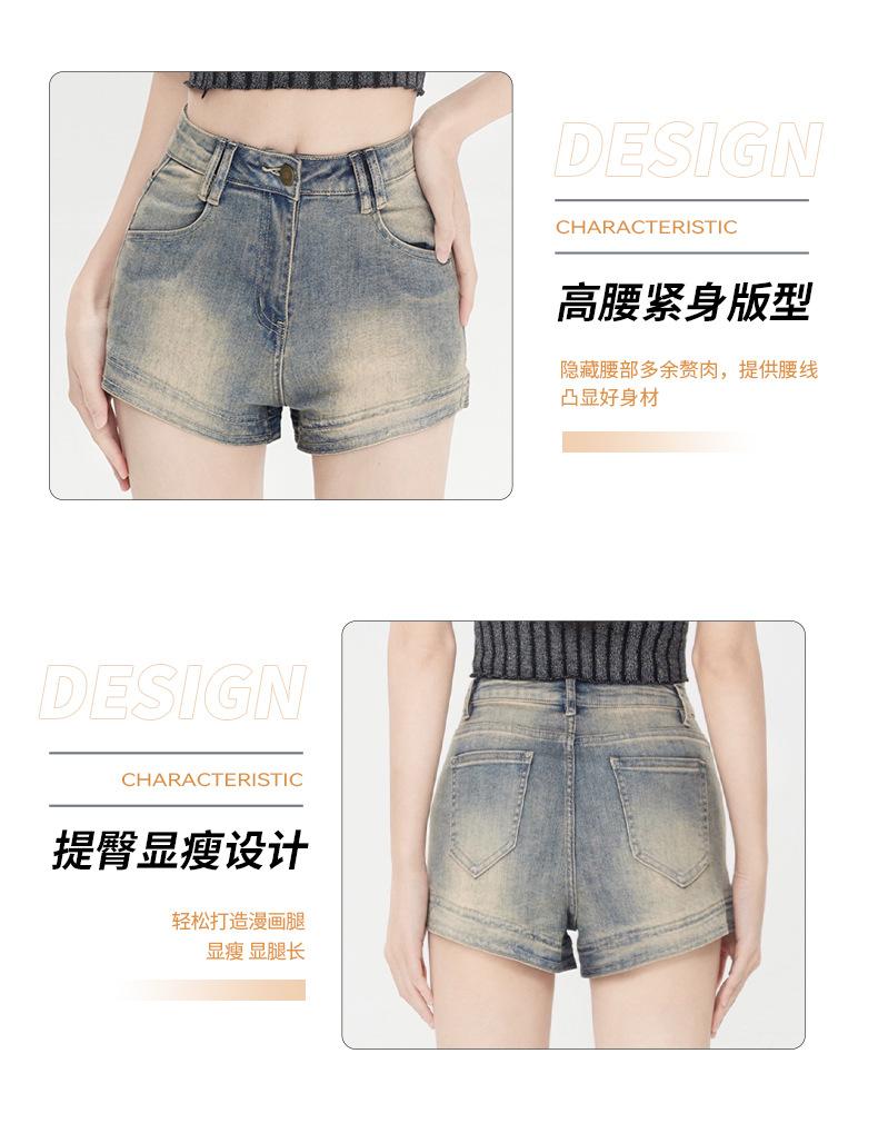 Shorts de mezclilla retro americanos para mujer Verano 2025 Nuevo Cintura alta Ajustado Look adelgazante Línea A Sexy Ultracortos Hot Pants Modernos