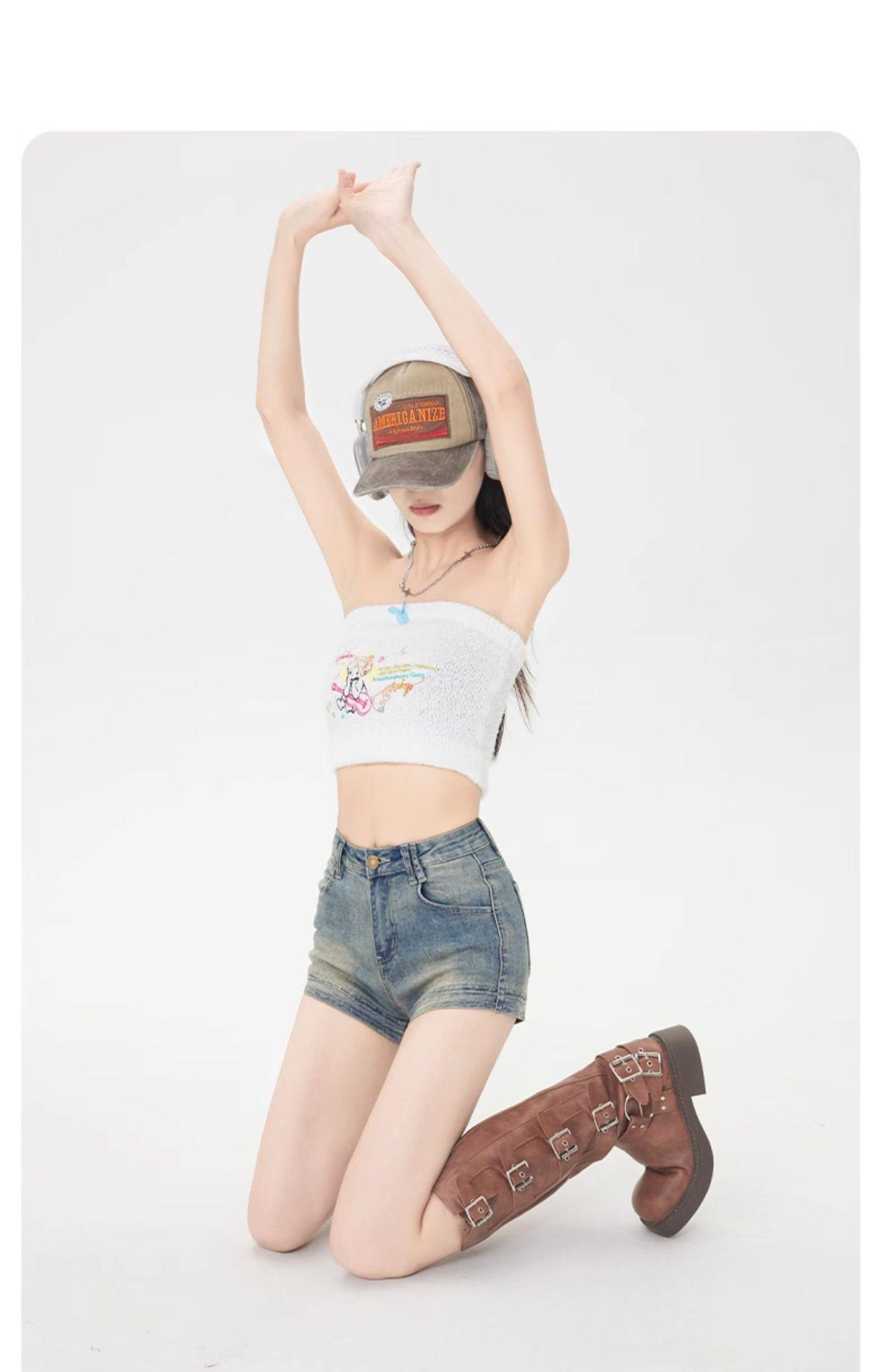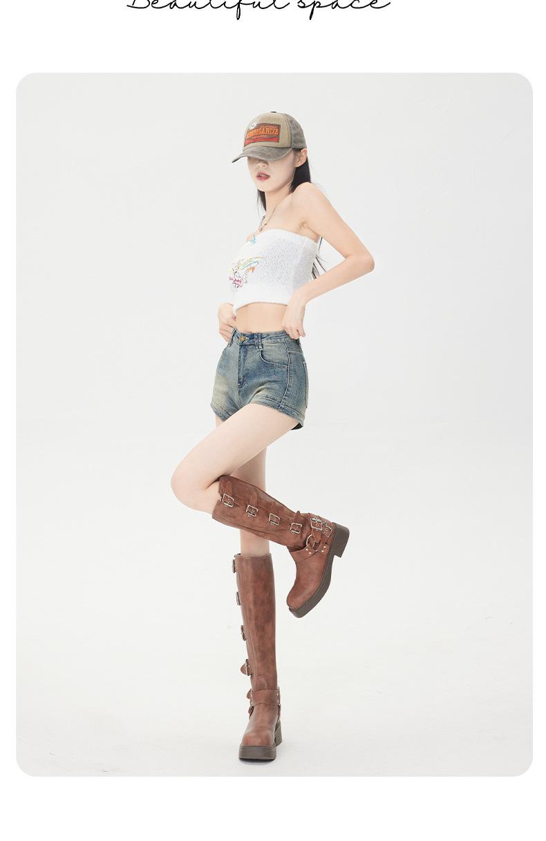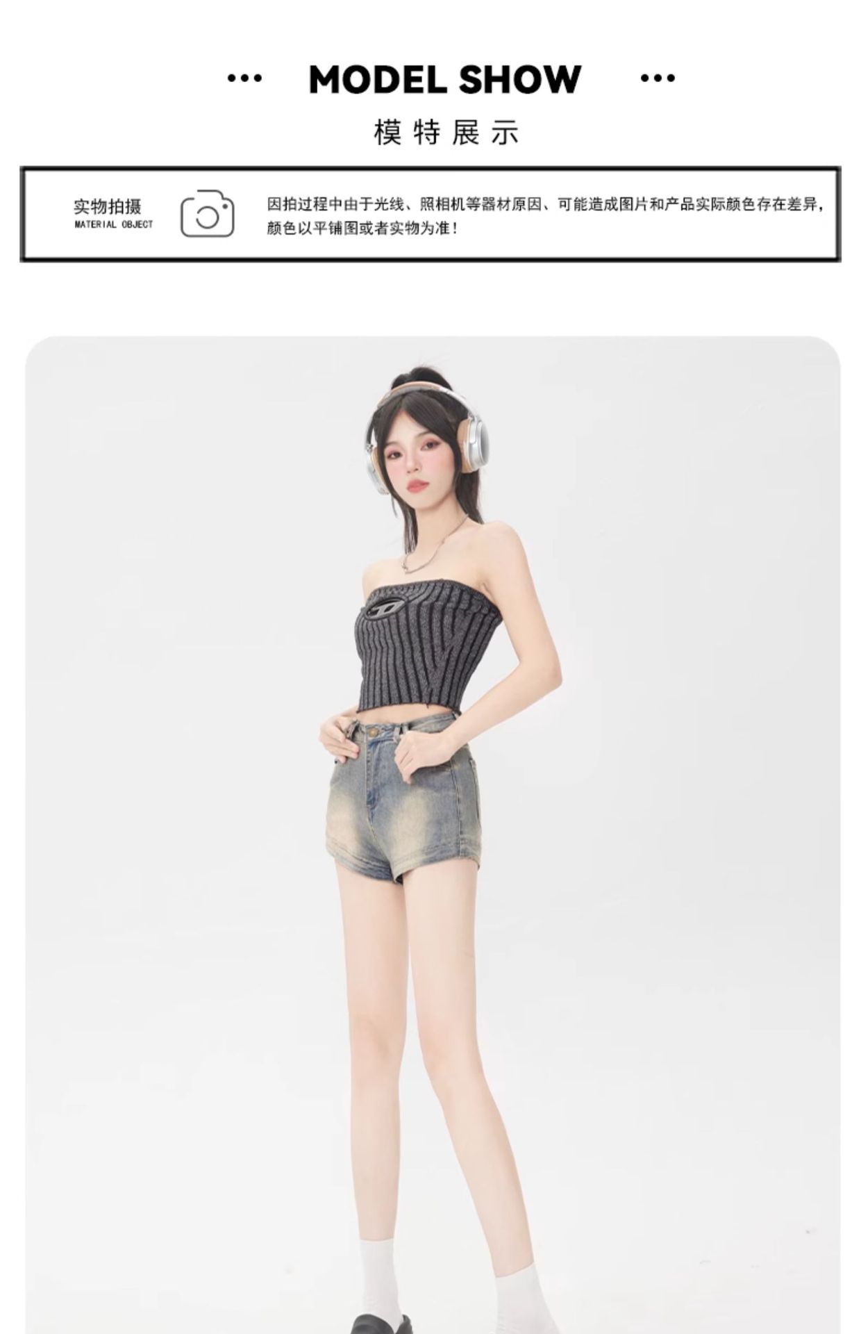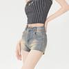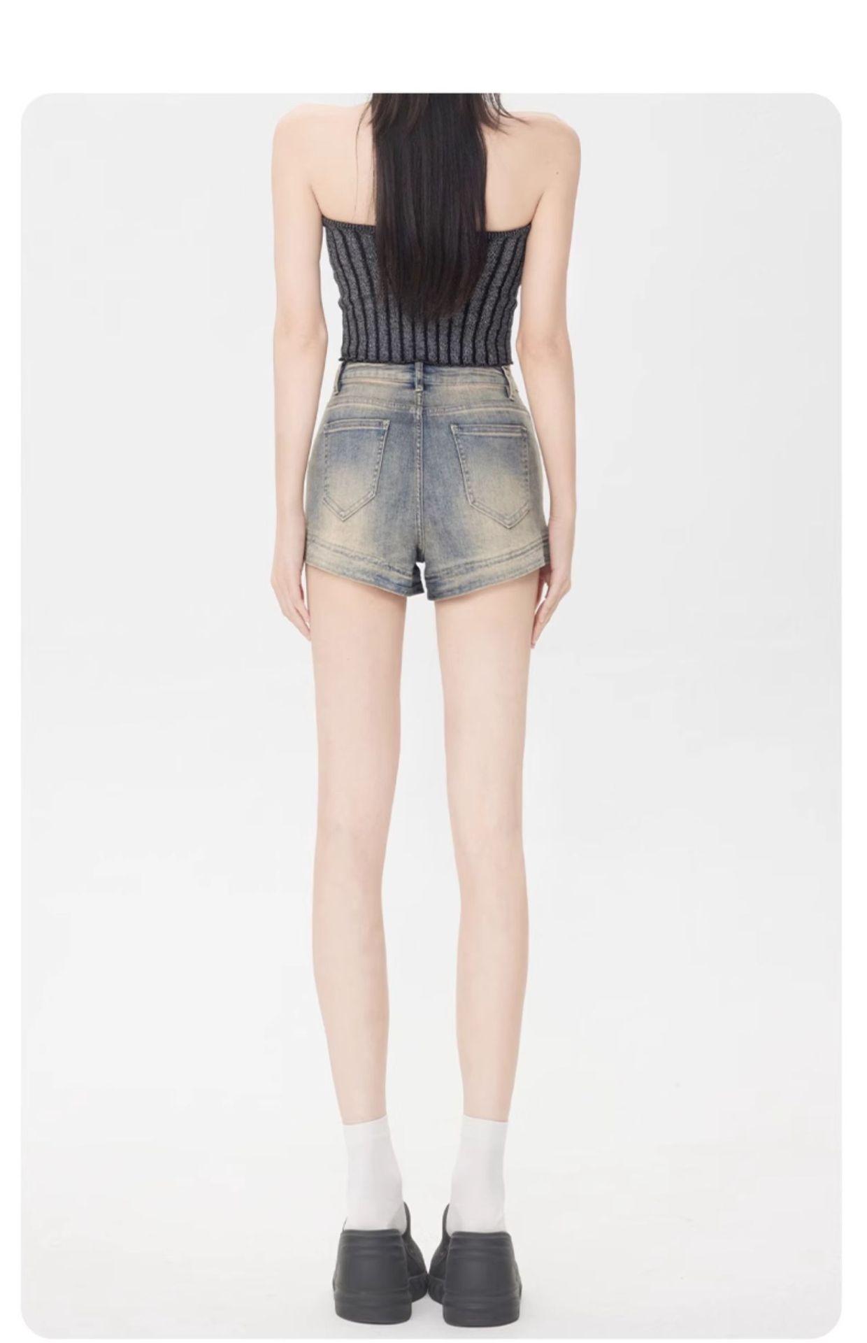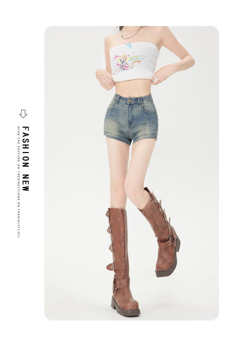 Shorts de mezclilla retro americanos para mujer Verano 2025 Nuevo Cintura alta Ajustado Look adelgazante Línea A Sexy Ultracortos Hot Pants Modernos