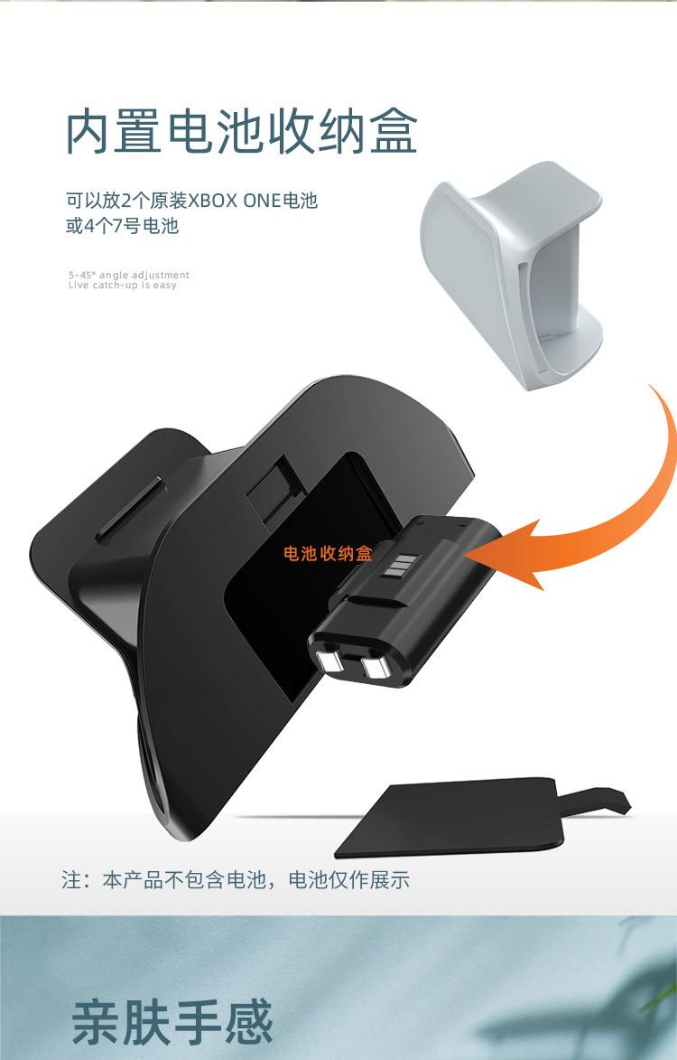 Caja de almacenamiento de batería incorporada, puede contener 2 baterías originales de XBOX ONE o 4 baterías AAA, lo que hace que la base sea más estable.