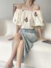 Camiseta de verano Dream Sunseeker de dos piezas con bordado de flores, hombros descubiertos, temperamento suelto, manga corta, top para mujer X1106