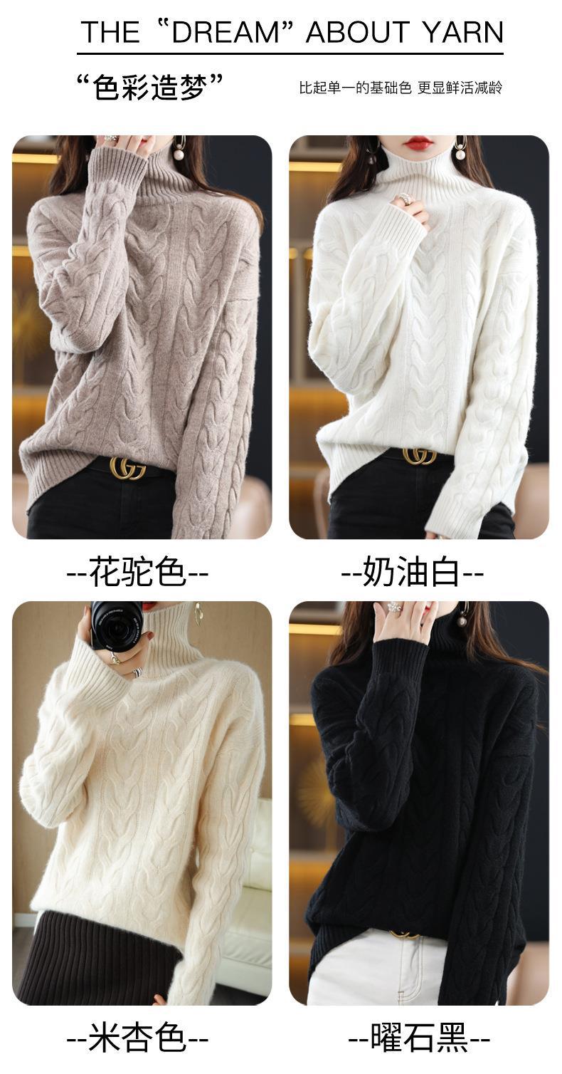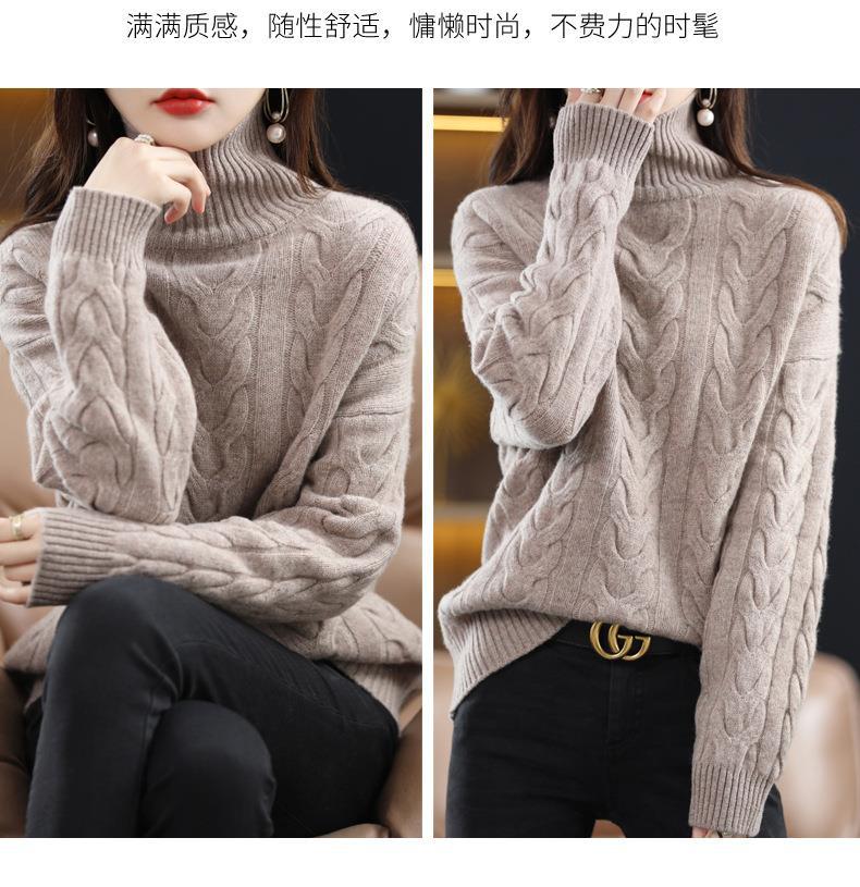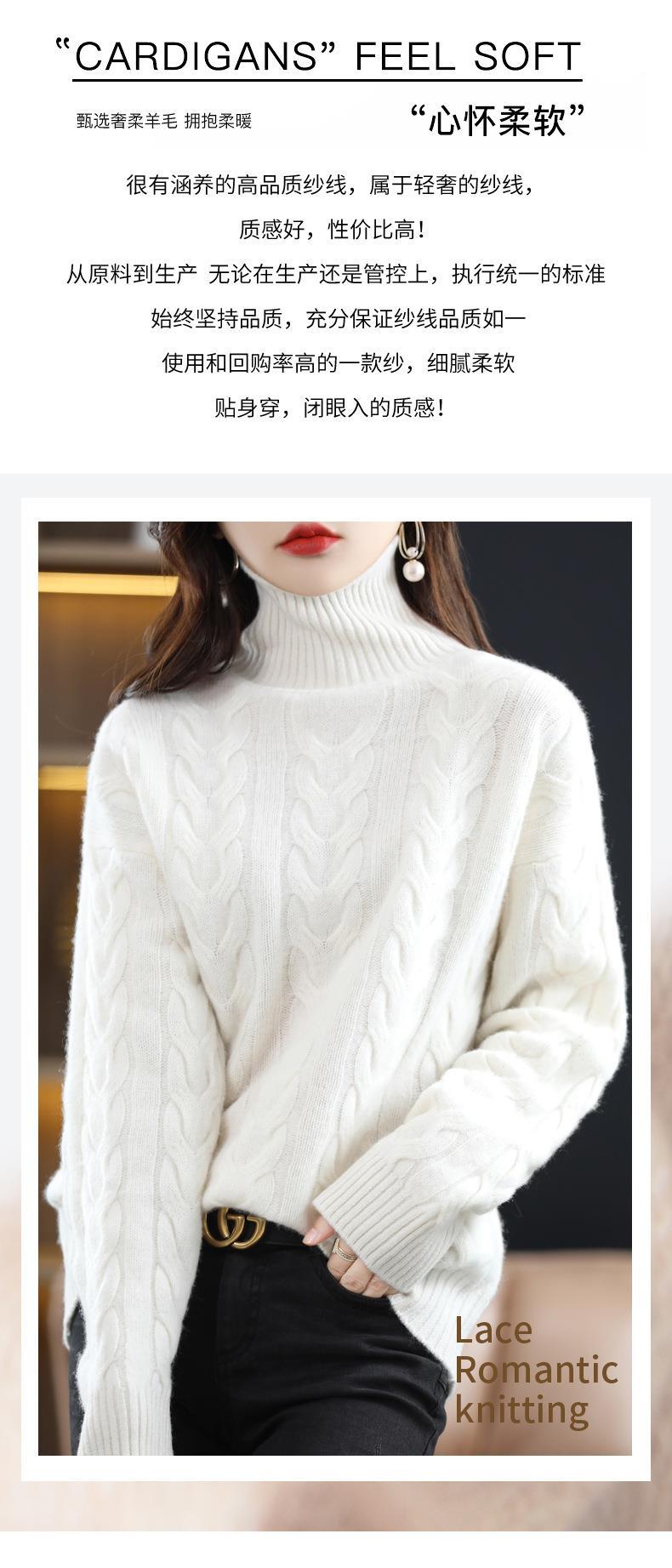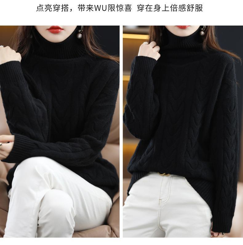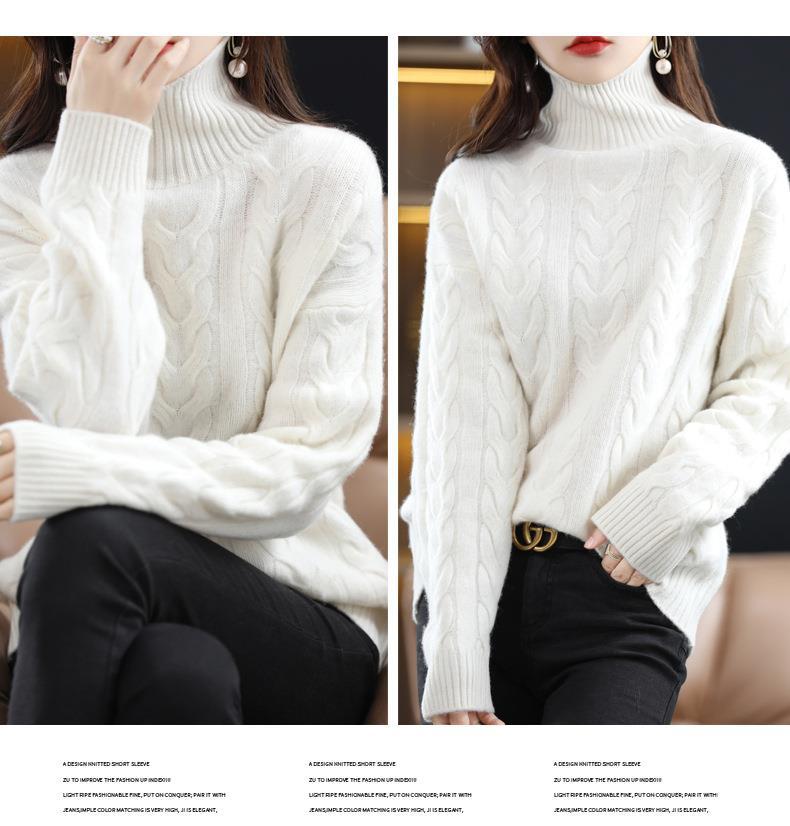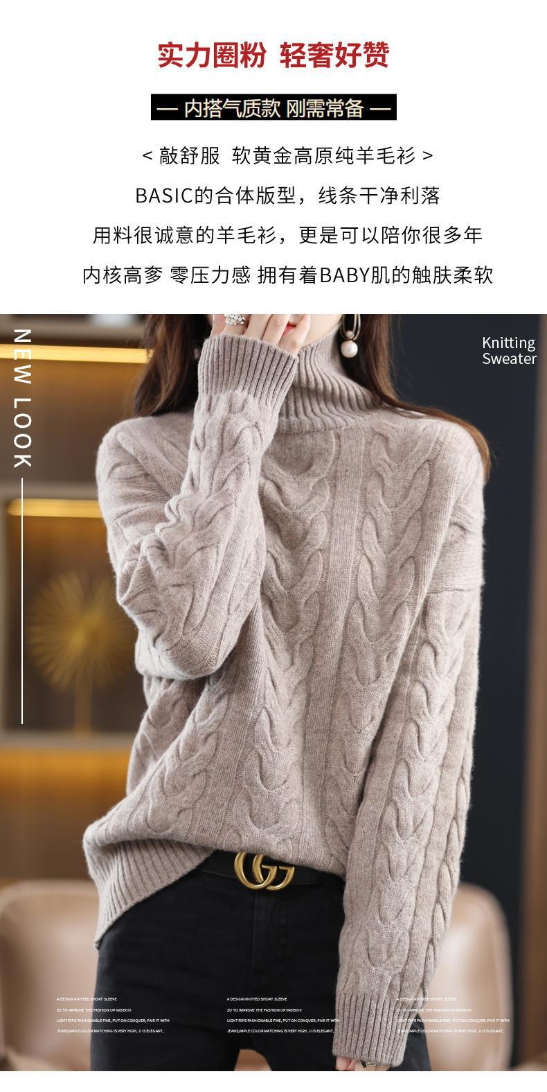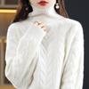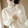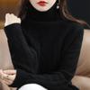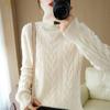 Otoño e invierno 2022 Nuevo suéter de cuello alto grueso de manga larga tipo jersey de lana pura a la moda tejido trenzado versátil camisa de fondo de lana
