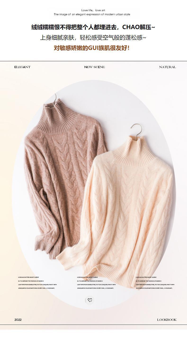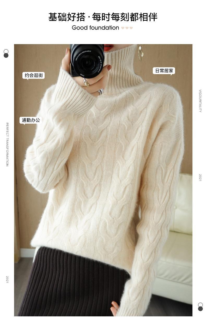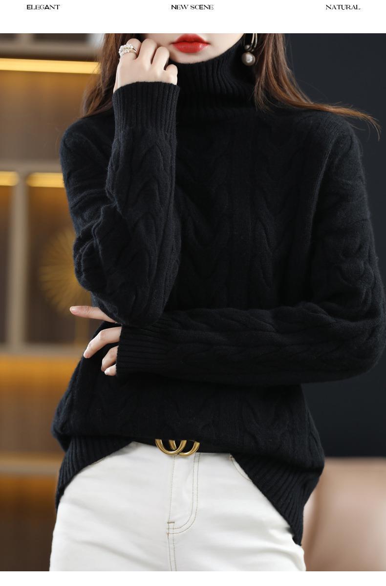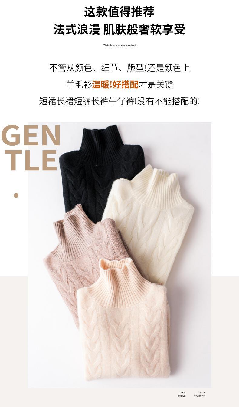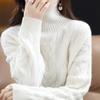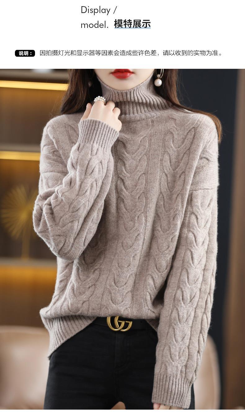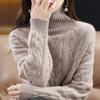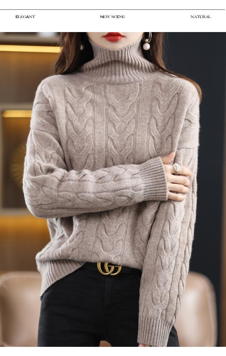 Otoño e invierno 2022 Nuevo suéter de cuello alto grueso de manga larga tipo jersey de lana pura a la moda tejido trenzado versátil camisa de fondo de lana