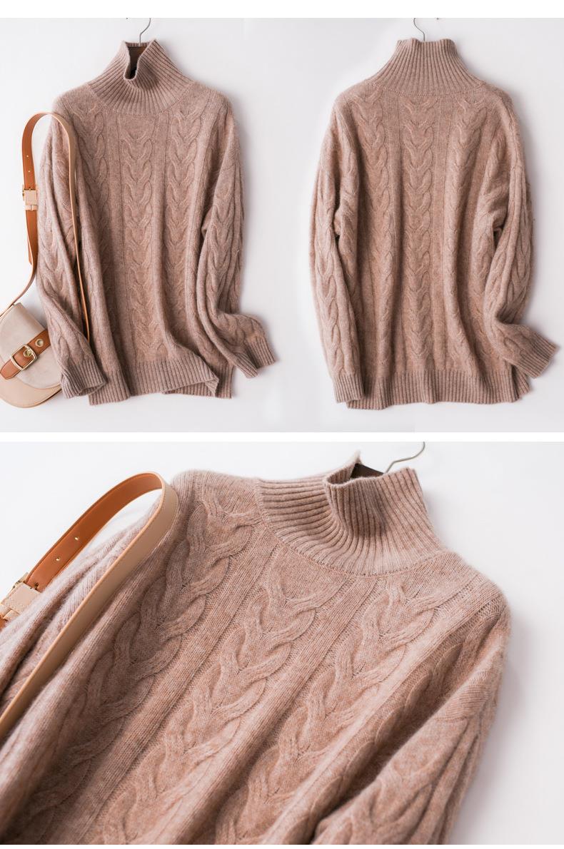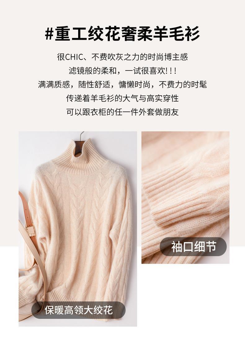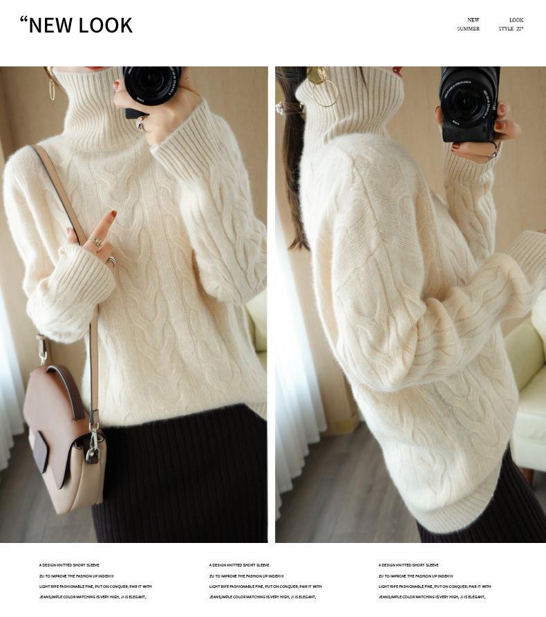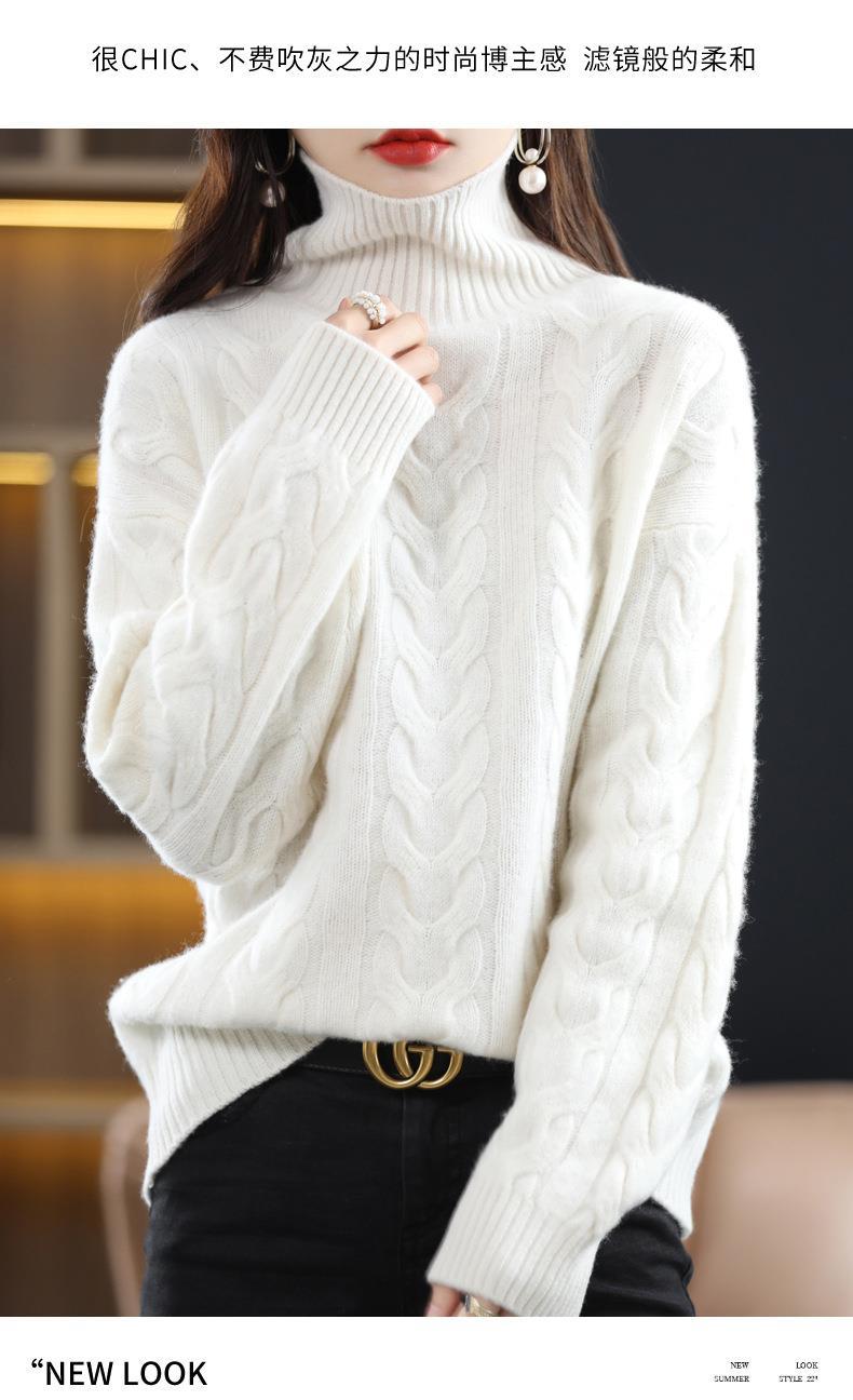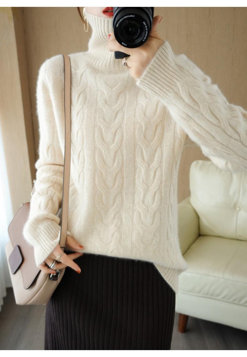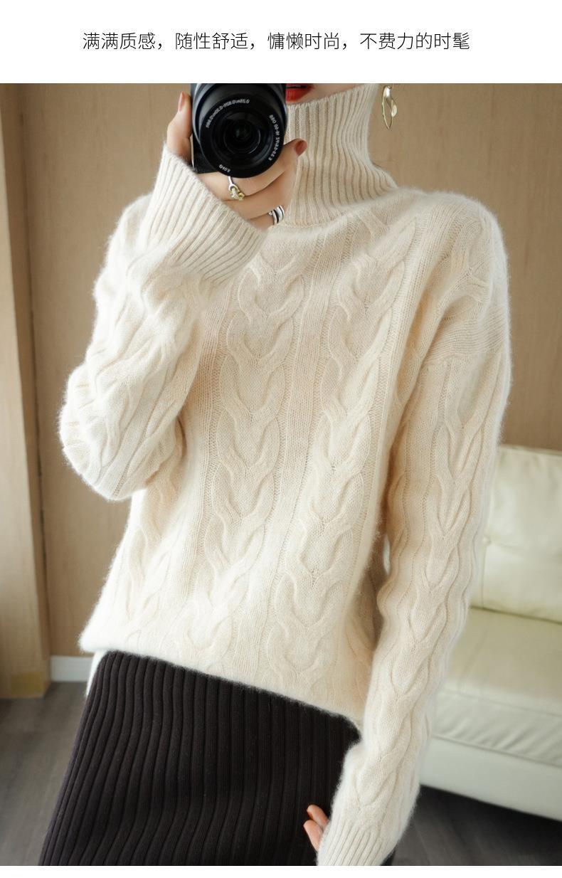 Otoño e invierno 2022 Nuevo suéter de cuello alto grueso de manga larga tipo jersey de lana pura a la moda tejido trenzado versátil camisa de fondo de lana