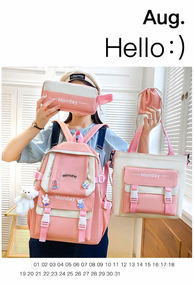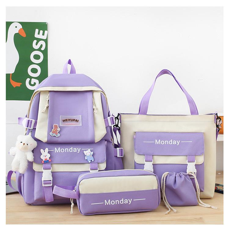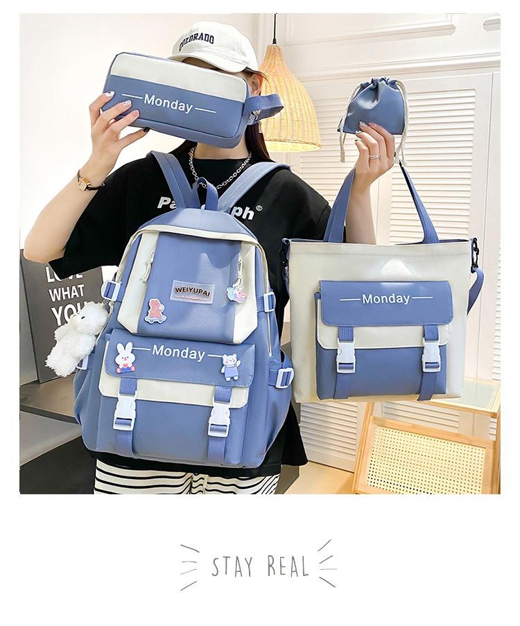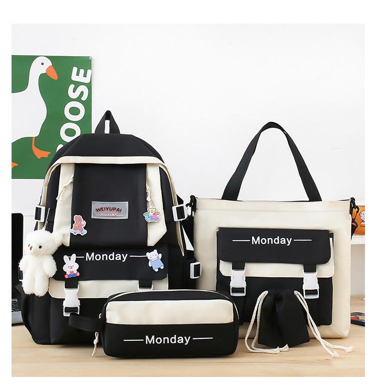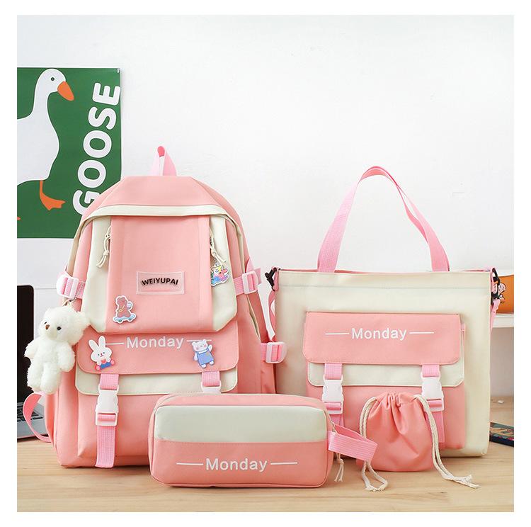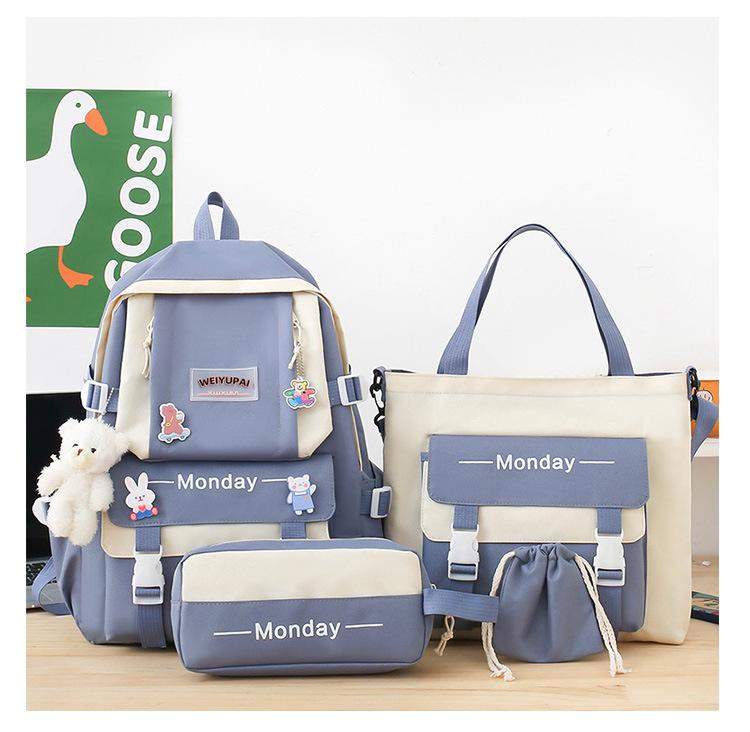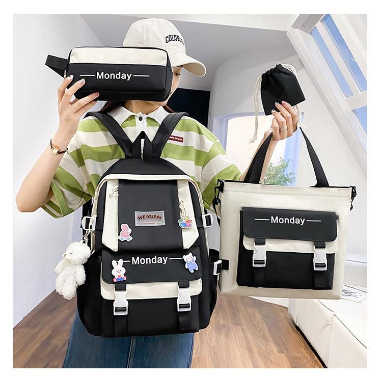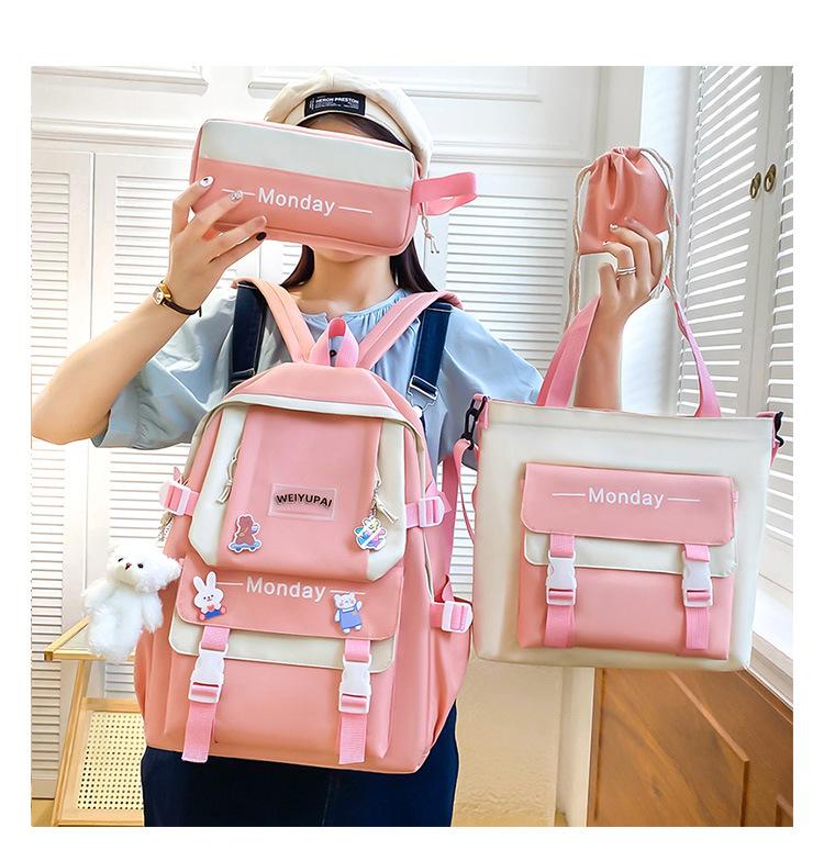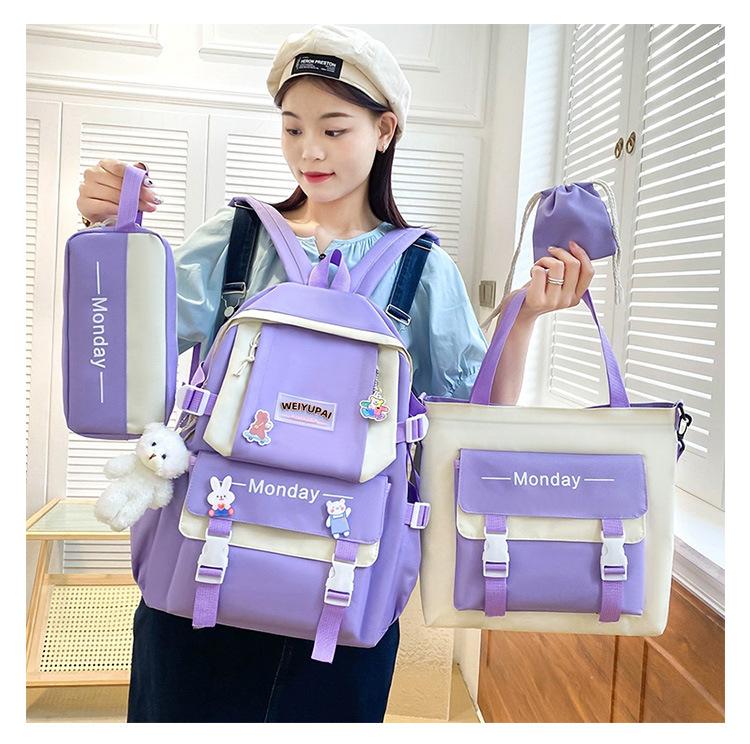Mochila escolar para estudiantes de cuatro piezas estilo coreano ins mochila estudiante de secundaria mujer clase campus gran capacidad mochila transfronteriza
