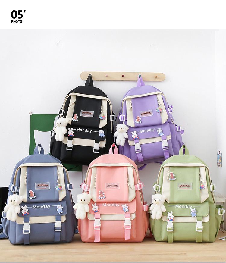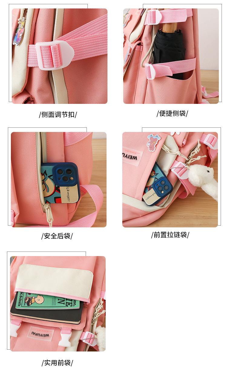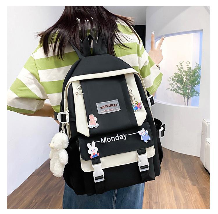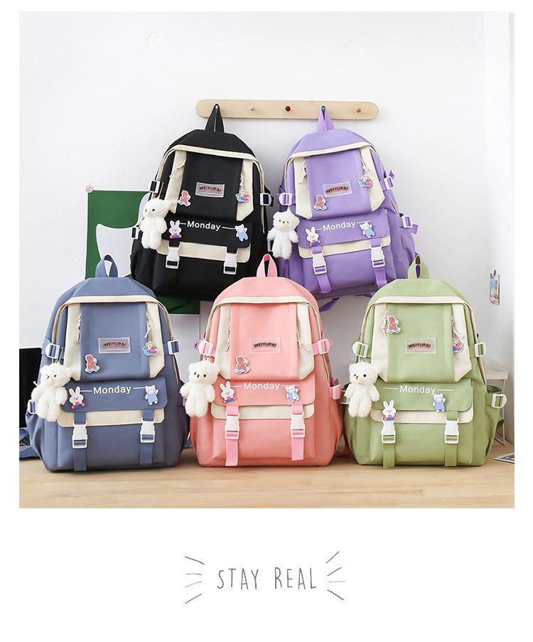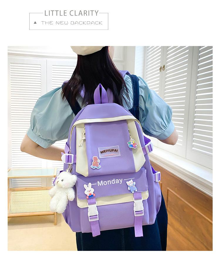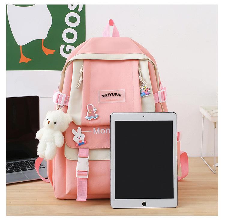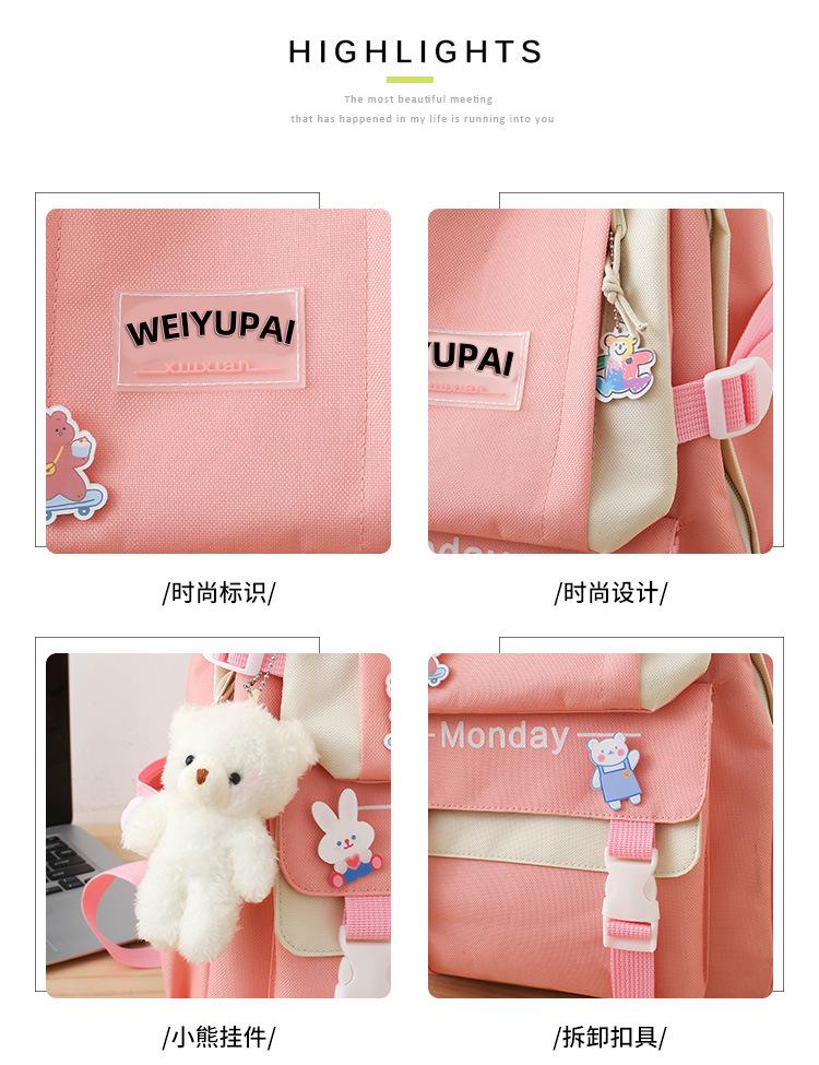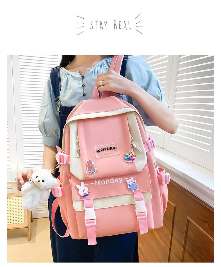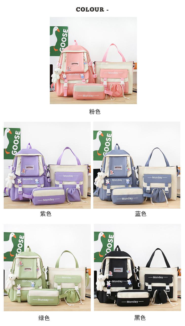 Mochila escolar para estudiantes de cuatro piezas estilo coreano ins mochila estudiante de secundaria mujer clase campus gran capacidad mochila transfronteriza