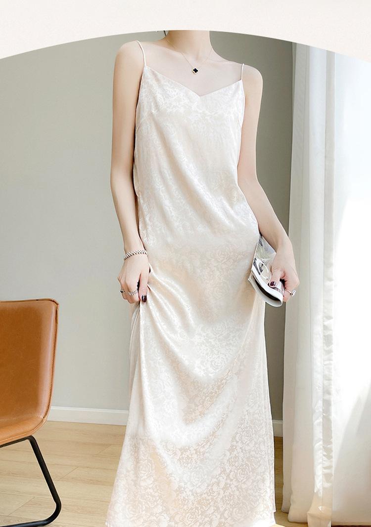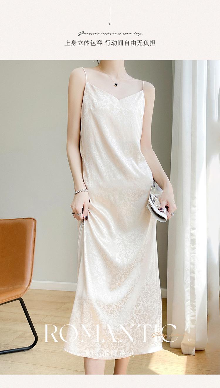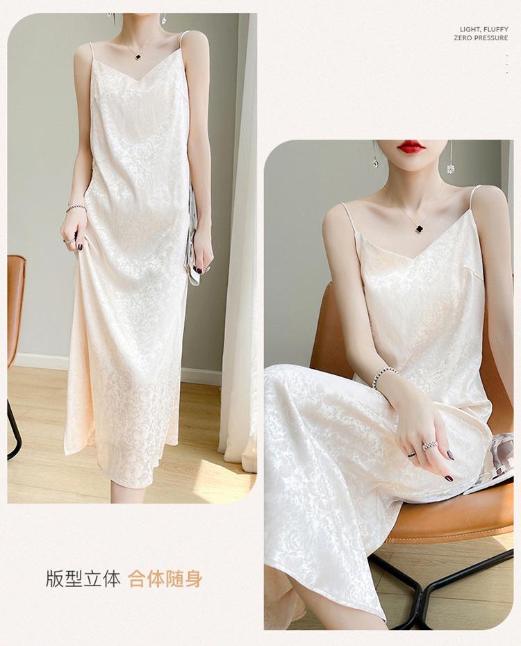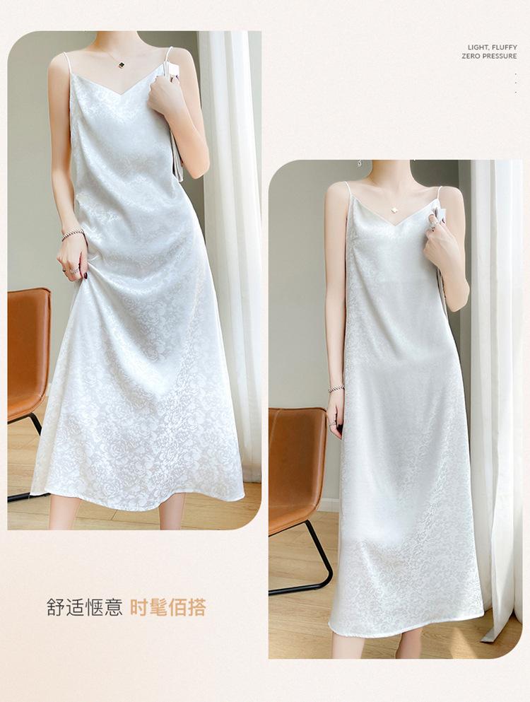 Vestido Interior Jacquard Holgado de Verano de Seda Helada Transfronterizo con Cuello en V Celebridad Sexy Tirantes Falda Larga Mujer 2025 Nuevo Estilo