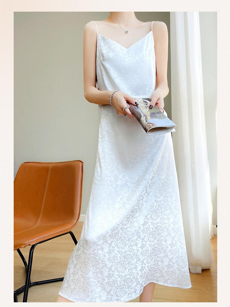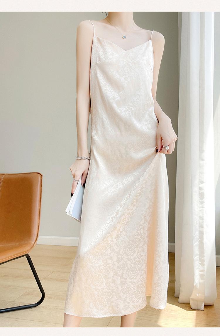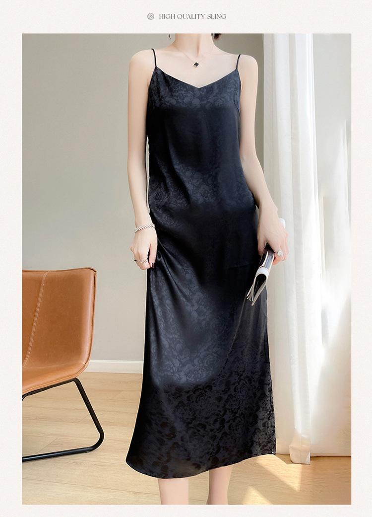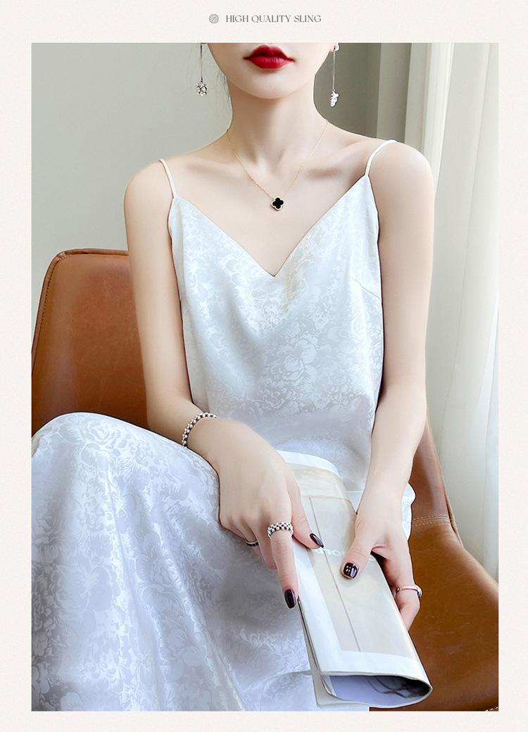 Vestido Interior Jacquard Holgado de Verano de Seda Helada Transfronterizo con Cuello en V Celebridad Sexy Tirantes Falda Larga Mujer 2025 Nuevo Estilo