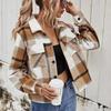 Camisa de Cuadros Europea y Americana Transfronteriza Exportación Ropa de Mujer 2021 Amazon Otoño e Invierno Nuevo Abrigo de Lana Suelto de Largo Medio para Mujer