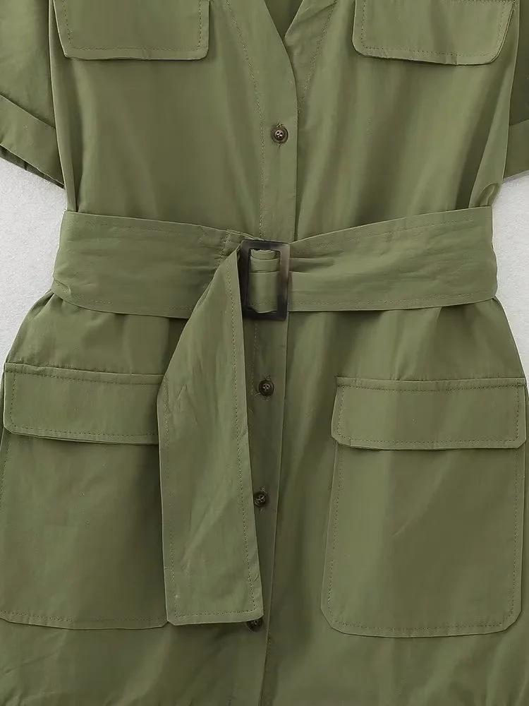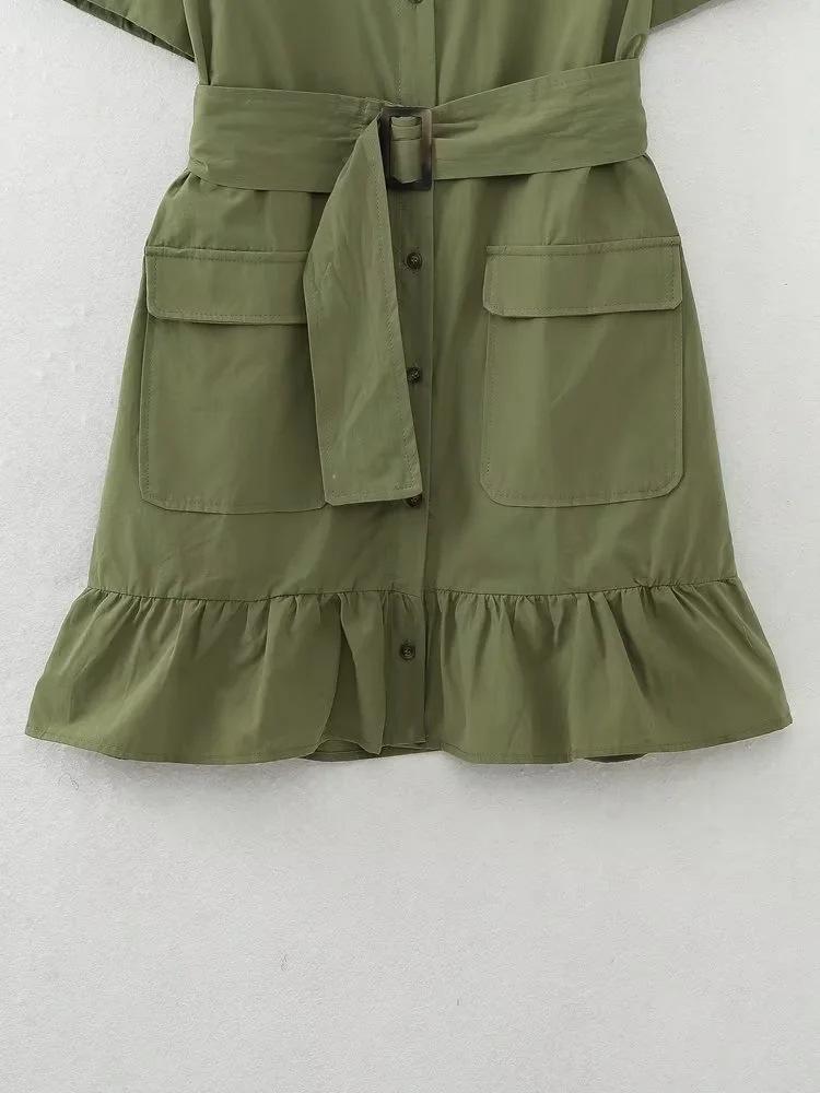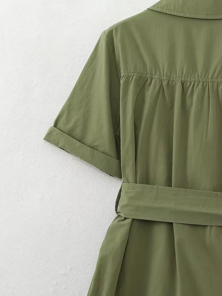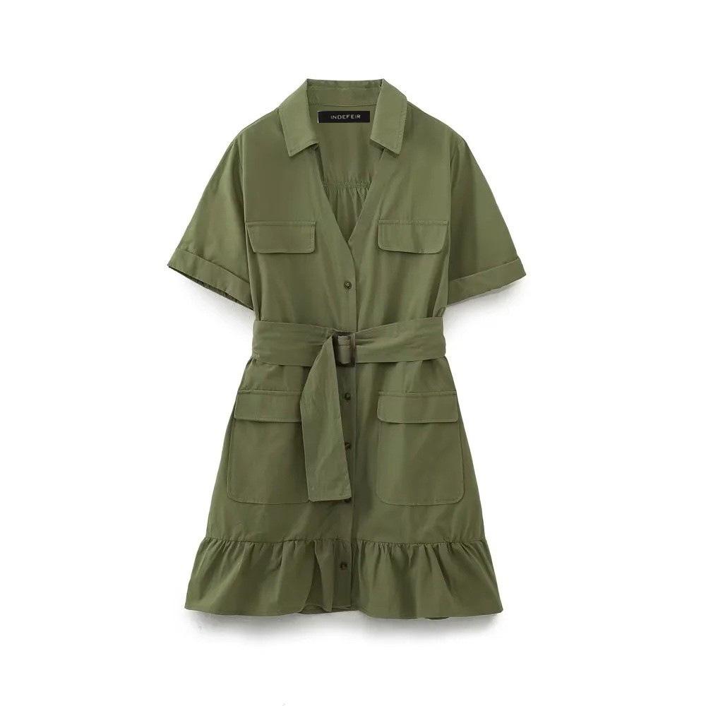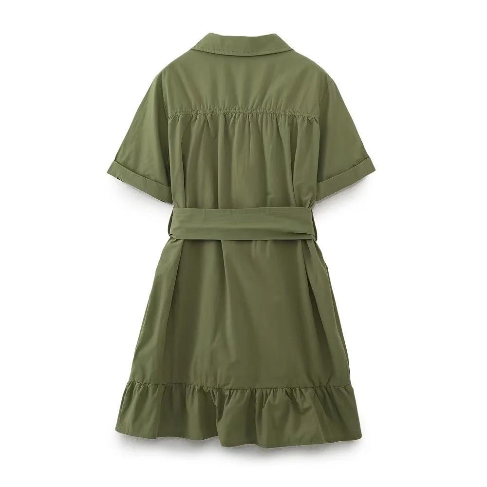 Vestido de verano 2024 nuevo, estilo transfronterizo europeo y americano, cómodo, ajustado, de manga corta, con cinturón, al por mayor