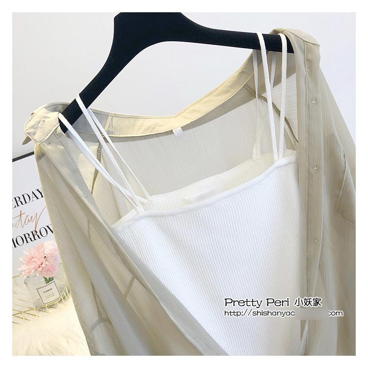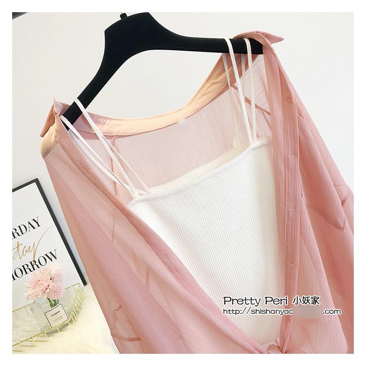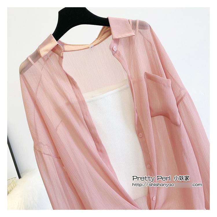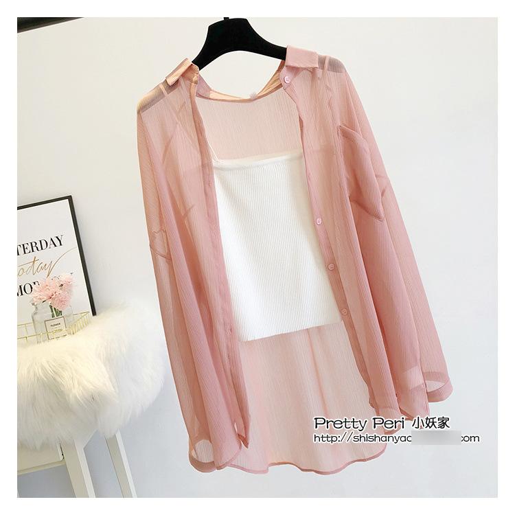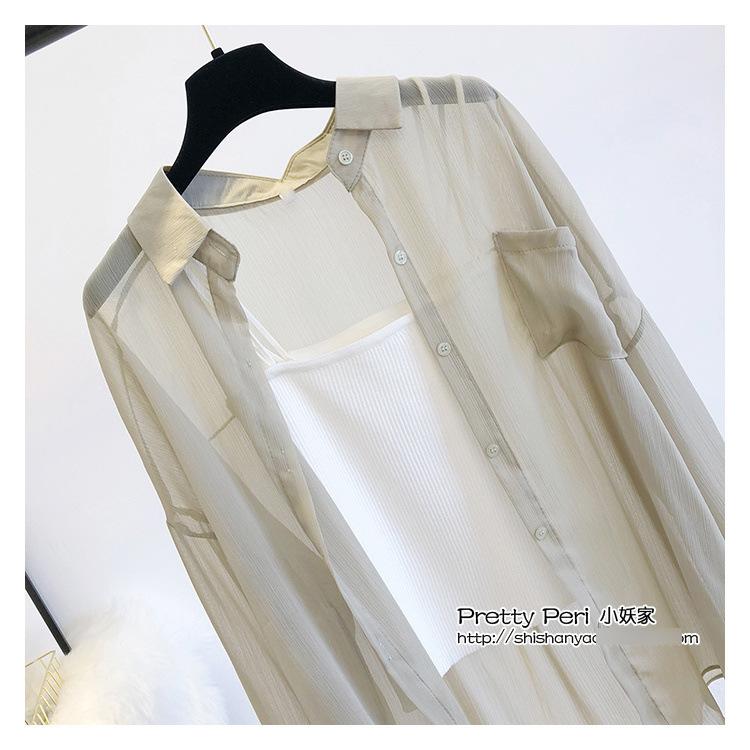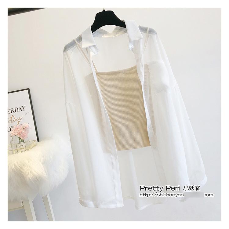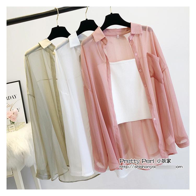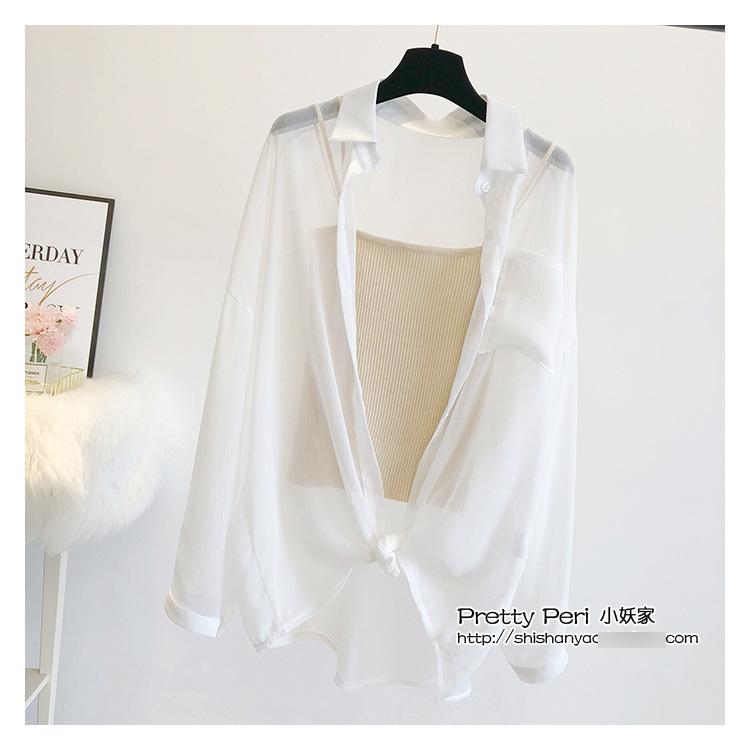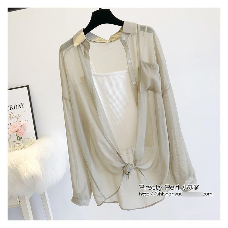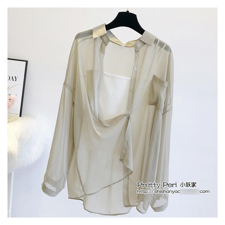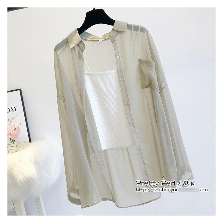 Verano 2021 Estilo Coreano Nueva Llegada Camisa Holgada Chic Estilo Hong Kong Camisa de Chifón para Mujer Camisa Protectora Solar Camisa para Aire Acondicionado Abrigo a la Moda