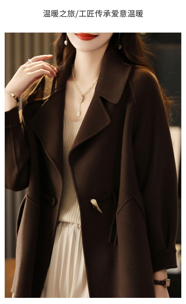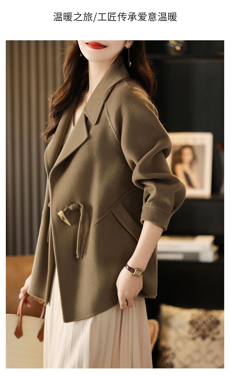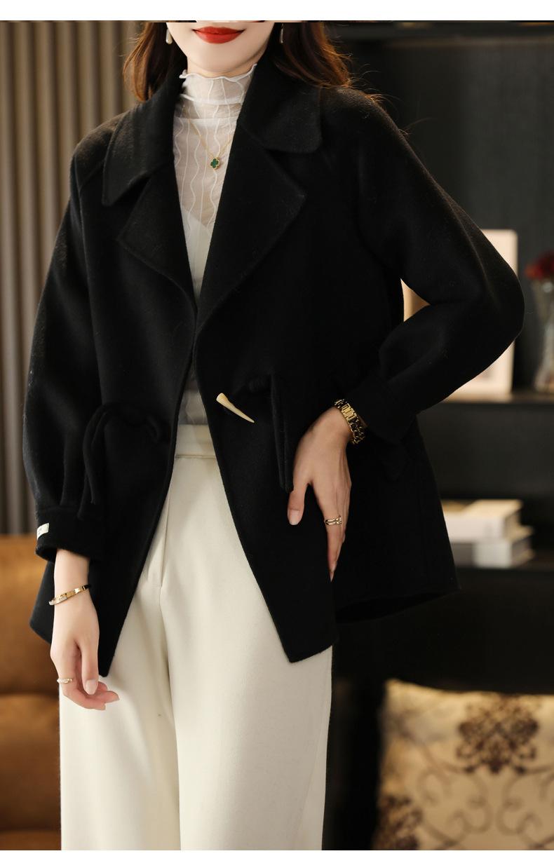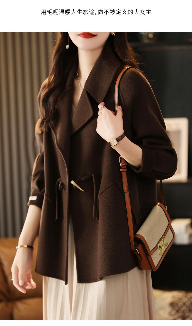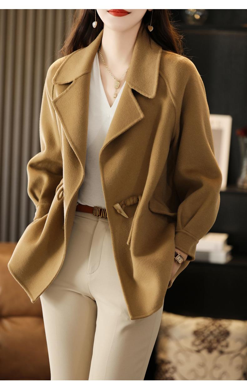 Abrigo de lana de doble cara para mujer, otoño e invierno, nuevo, combina con todo, moda, cuello de traje, hebilla de cuerno, abrigo sencillo y suelto, 2023