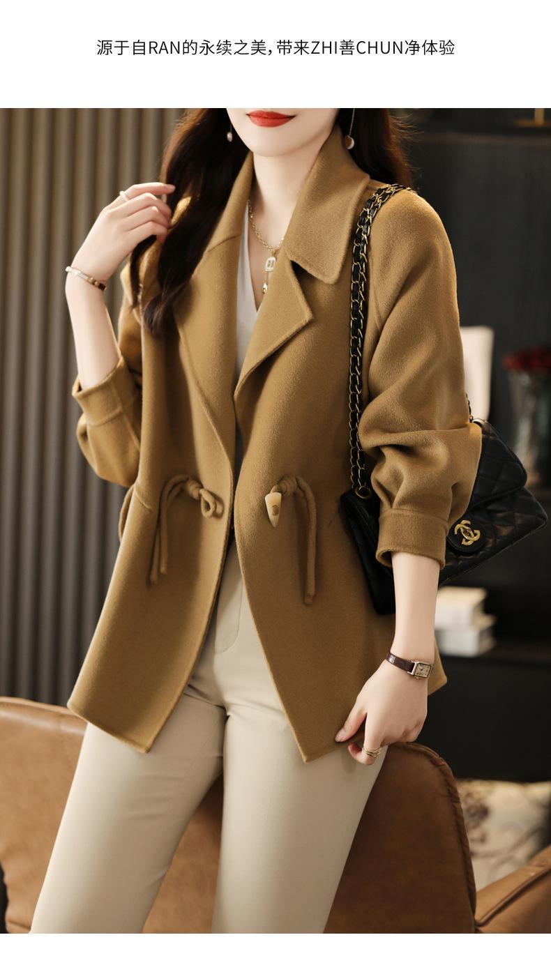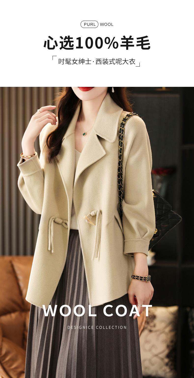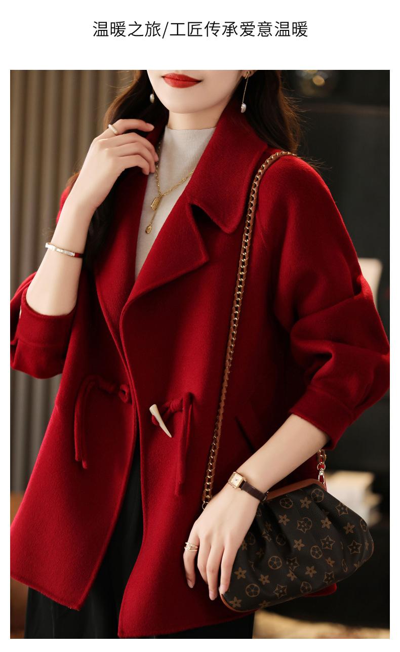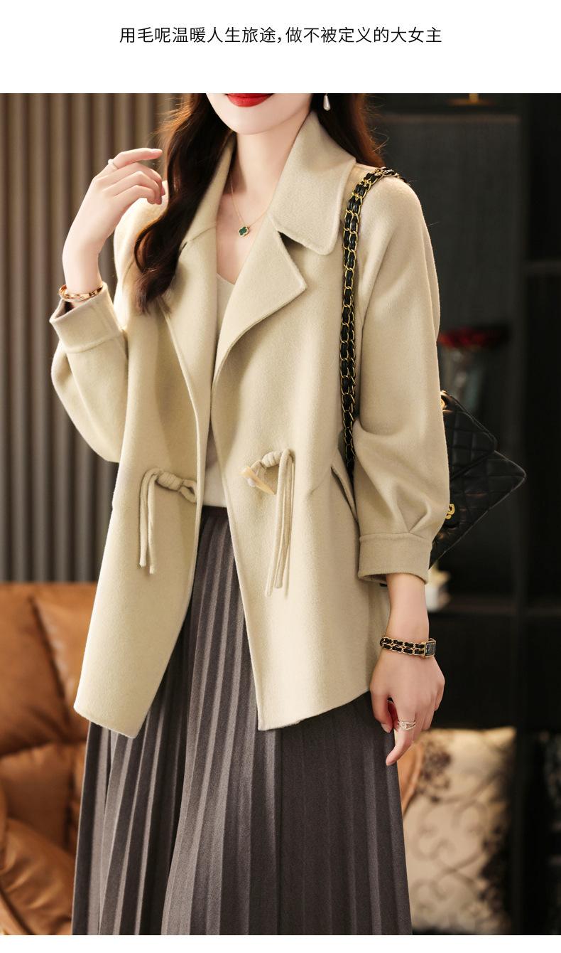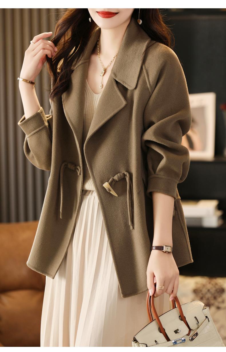 Abrigo de lana de doble cara para mujer, otoño e invierno, nuevo, combina con todo, moda, cuello de traje, hebilla de cuerno, abrigo sencillo y suelto, 2023