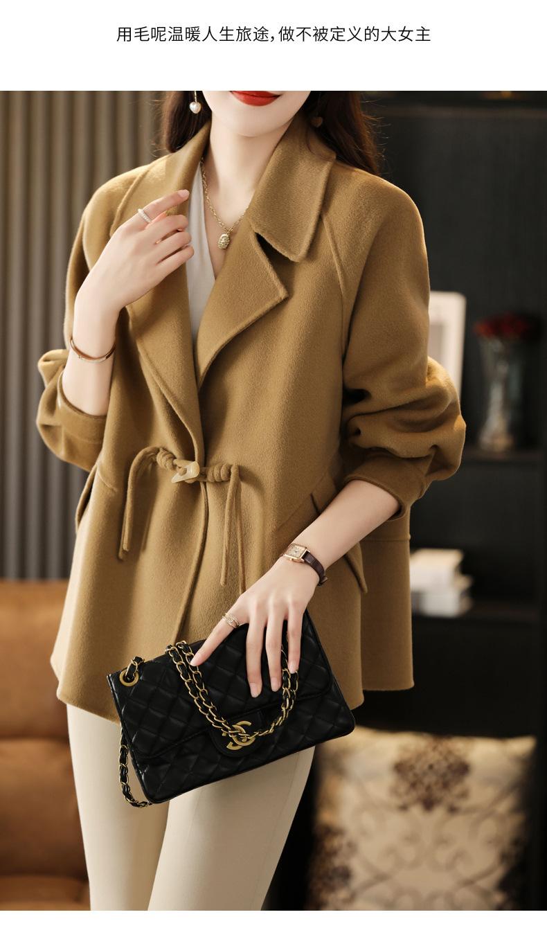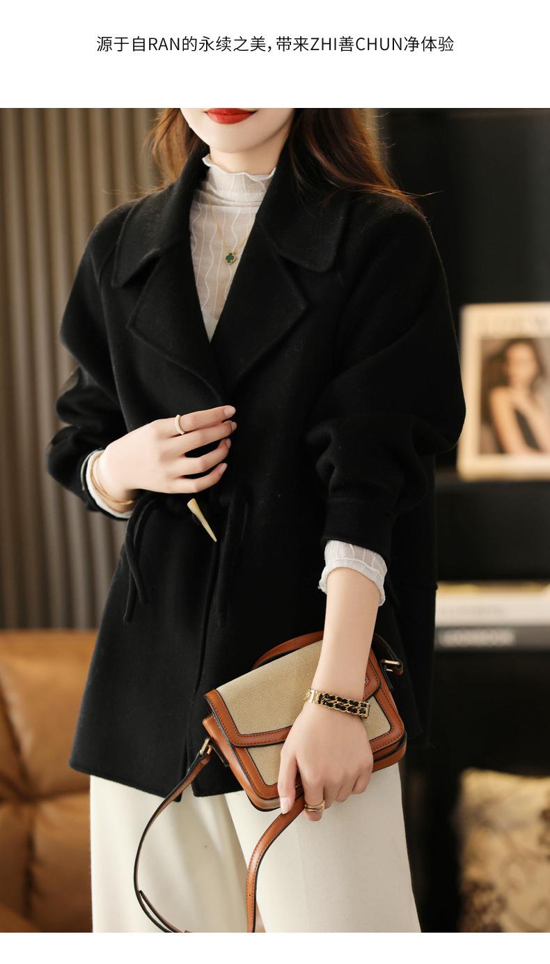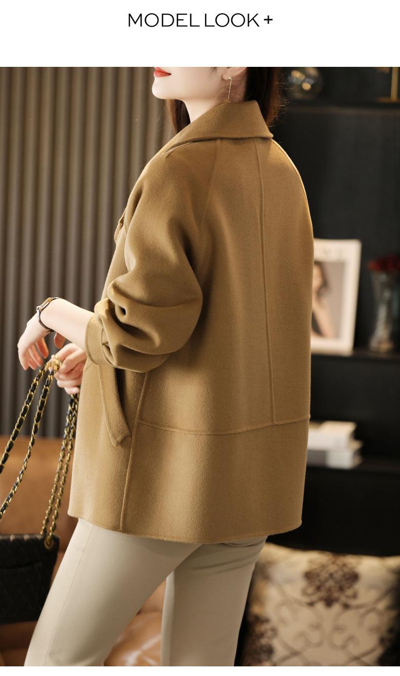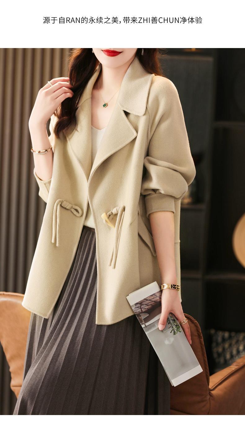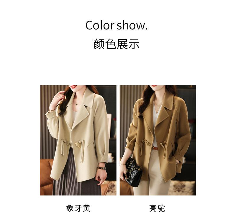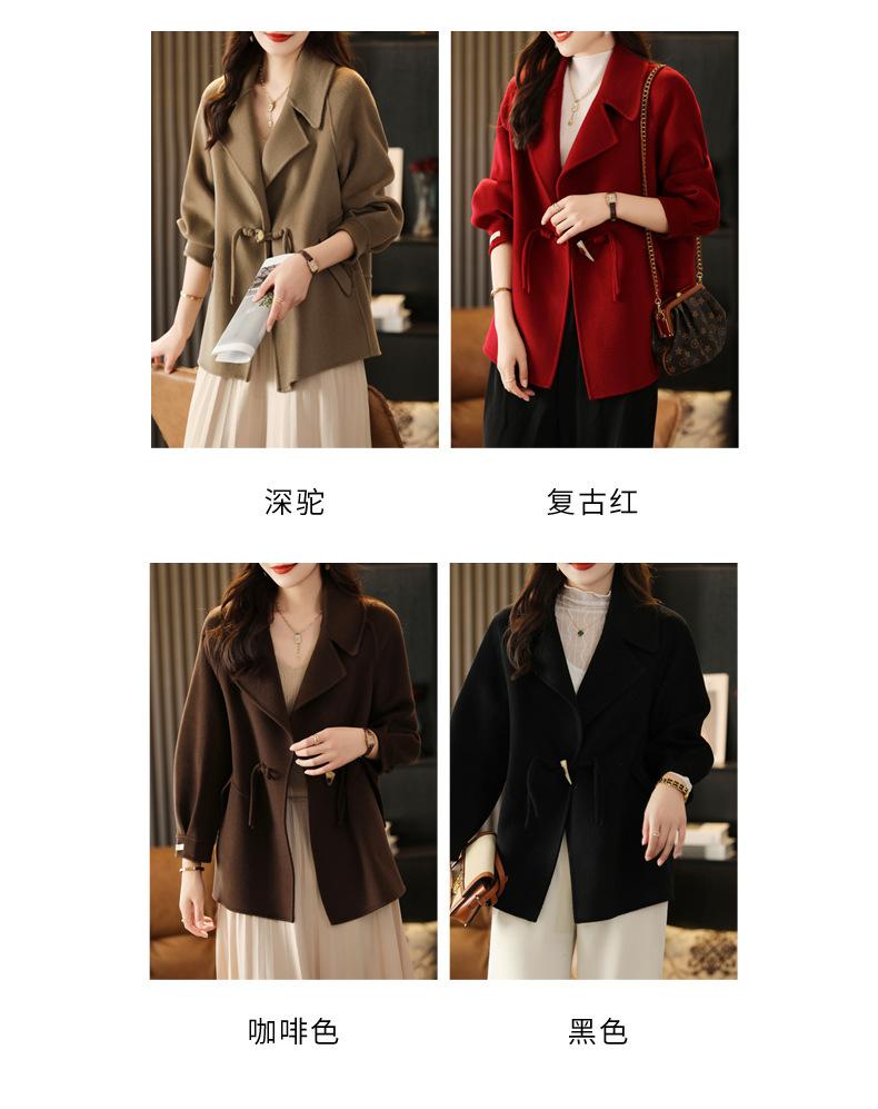 Abrigo de lana de doble cara para mujer, otoño e invierno, nuevo, combina con todo, moda, cuello de traje, hebilla de cuerno, abrigo sencillo y suelto, 2023