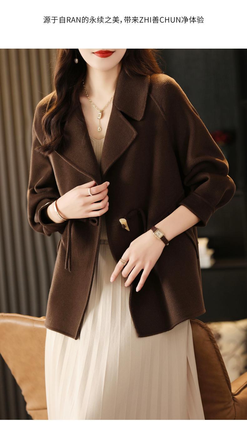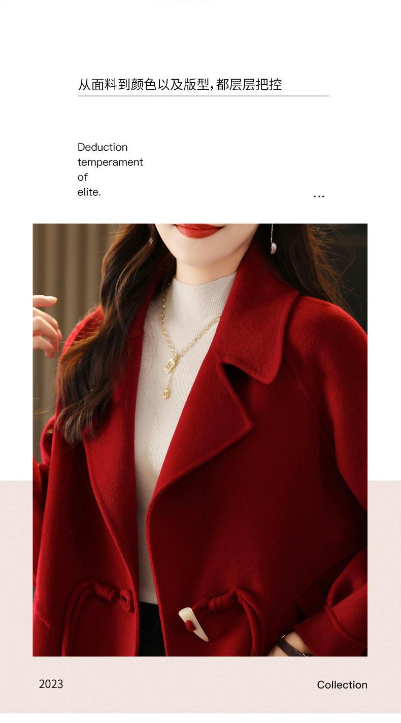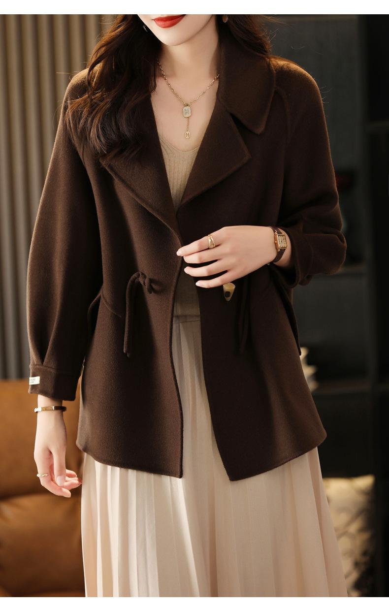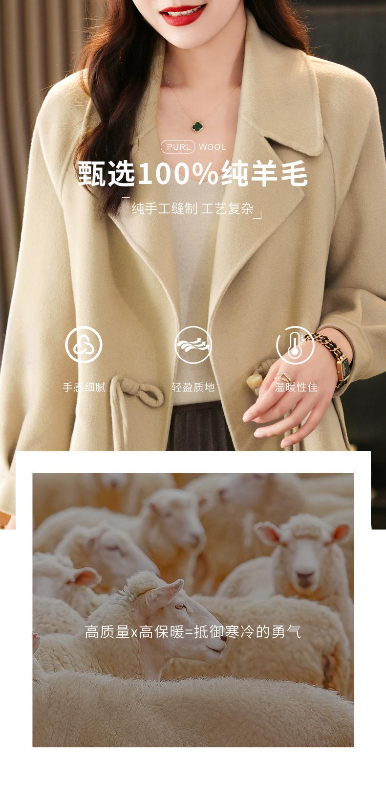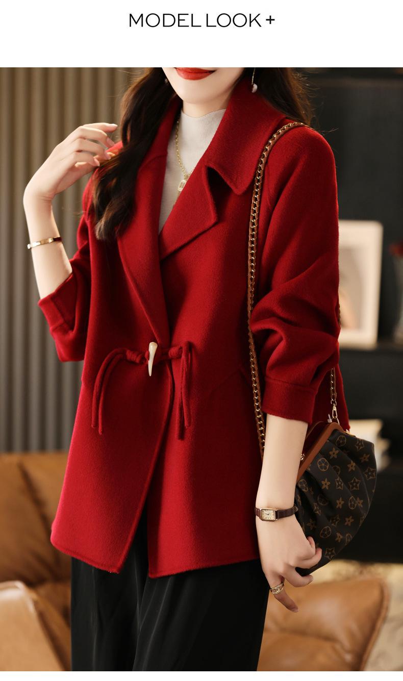 Abrigo de lana de doble cara para mujer, otoño e invierno, nuevo, combina con todo, moda, cuello de traje, hebilla de cuerno, abrigo sencillo y suelto, 2023