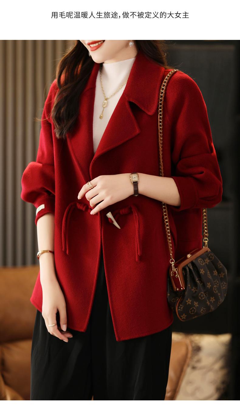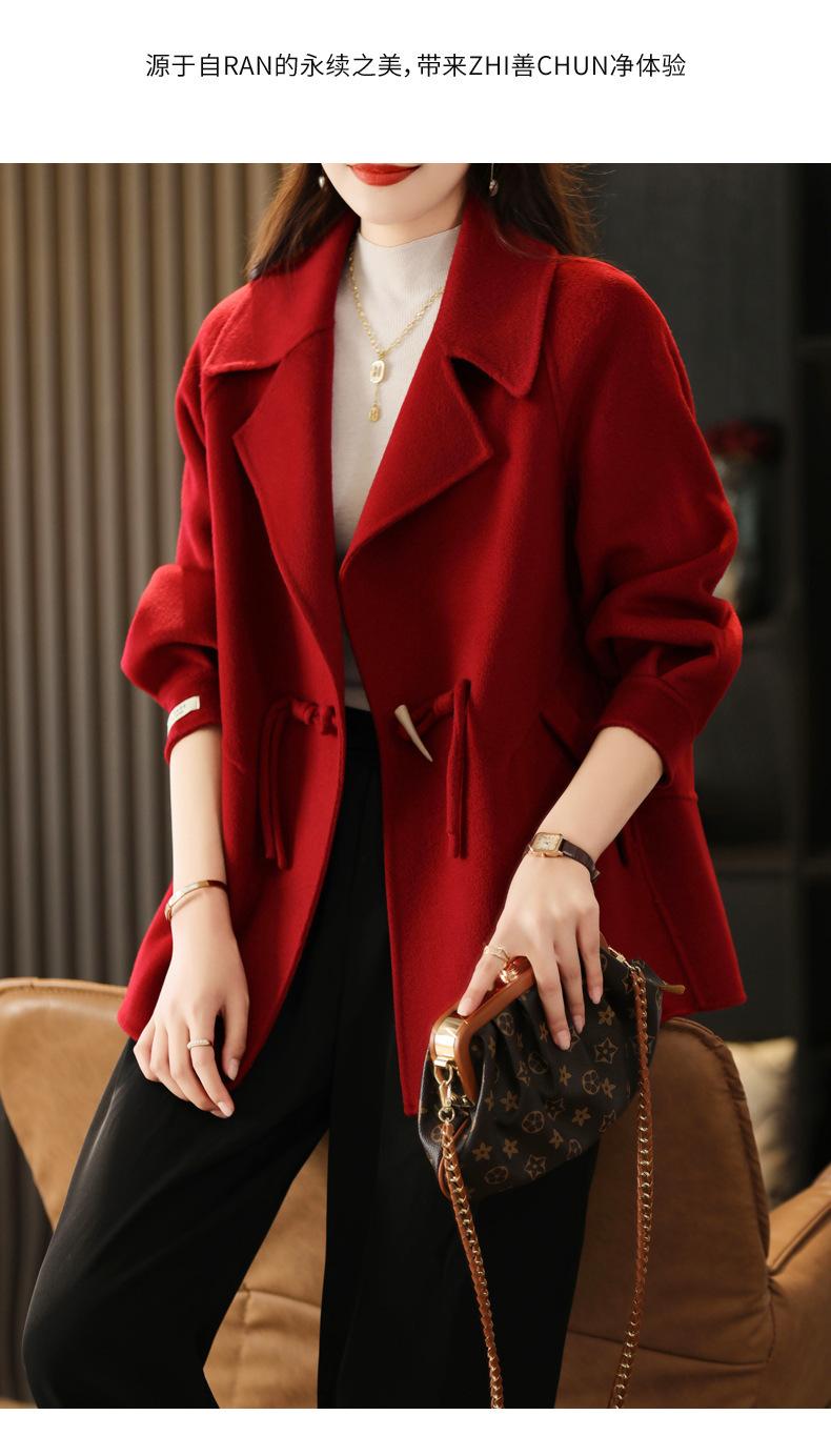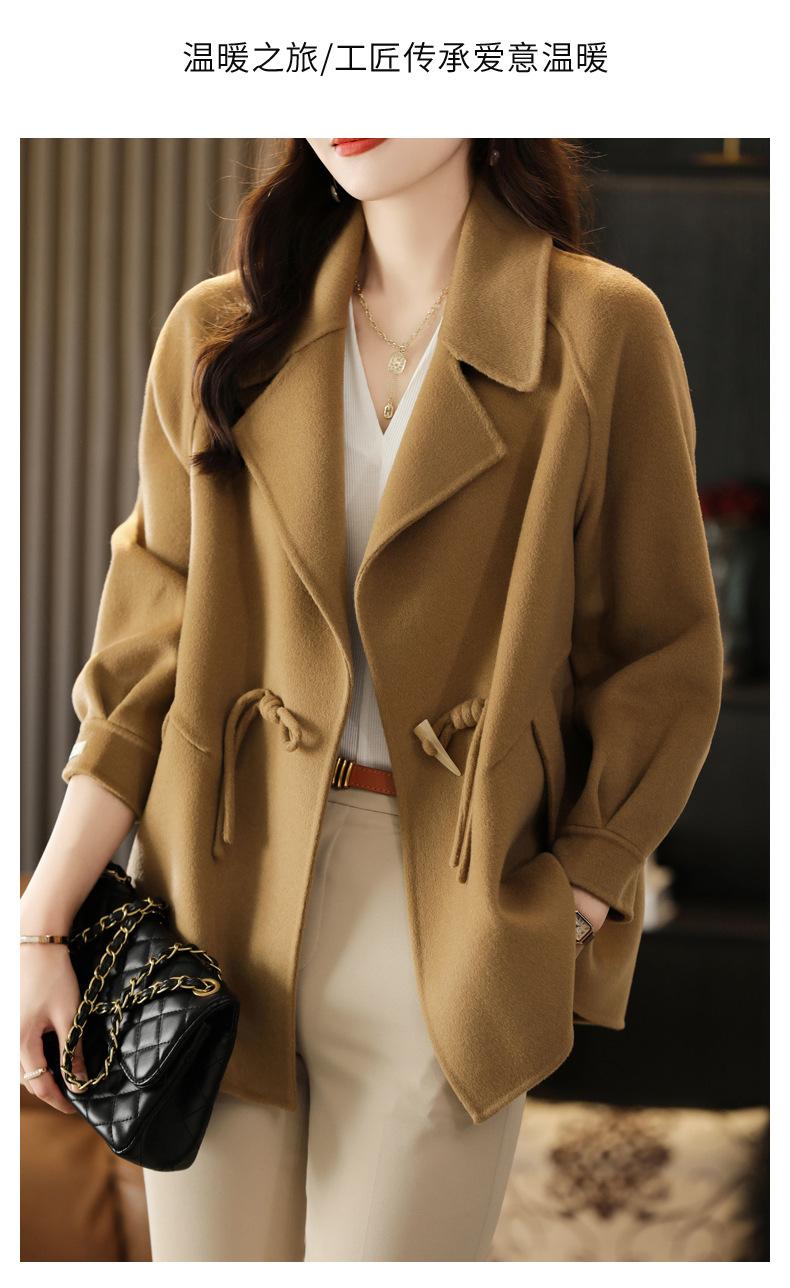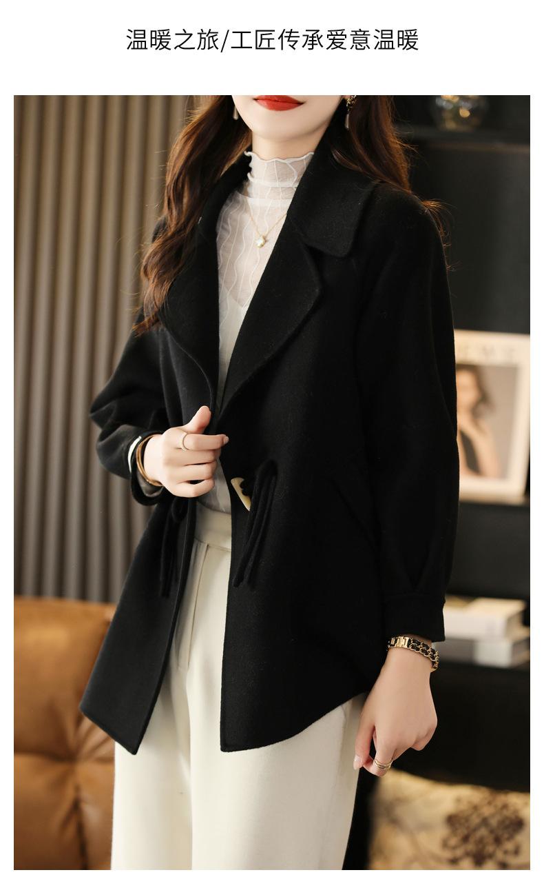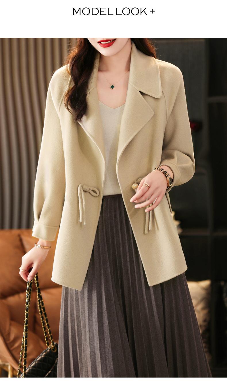 Abrigo de lana de doble cara para mujer, otoño e invierno, nuevo, combina con todo, moda, cuello de traje, hebilla de cuerno, abrigo sencillo y suelto, 2023