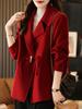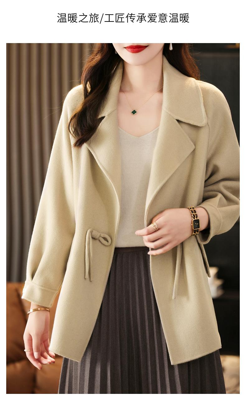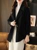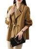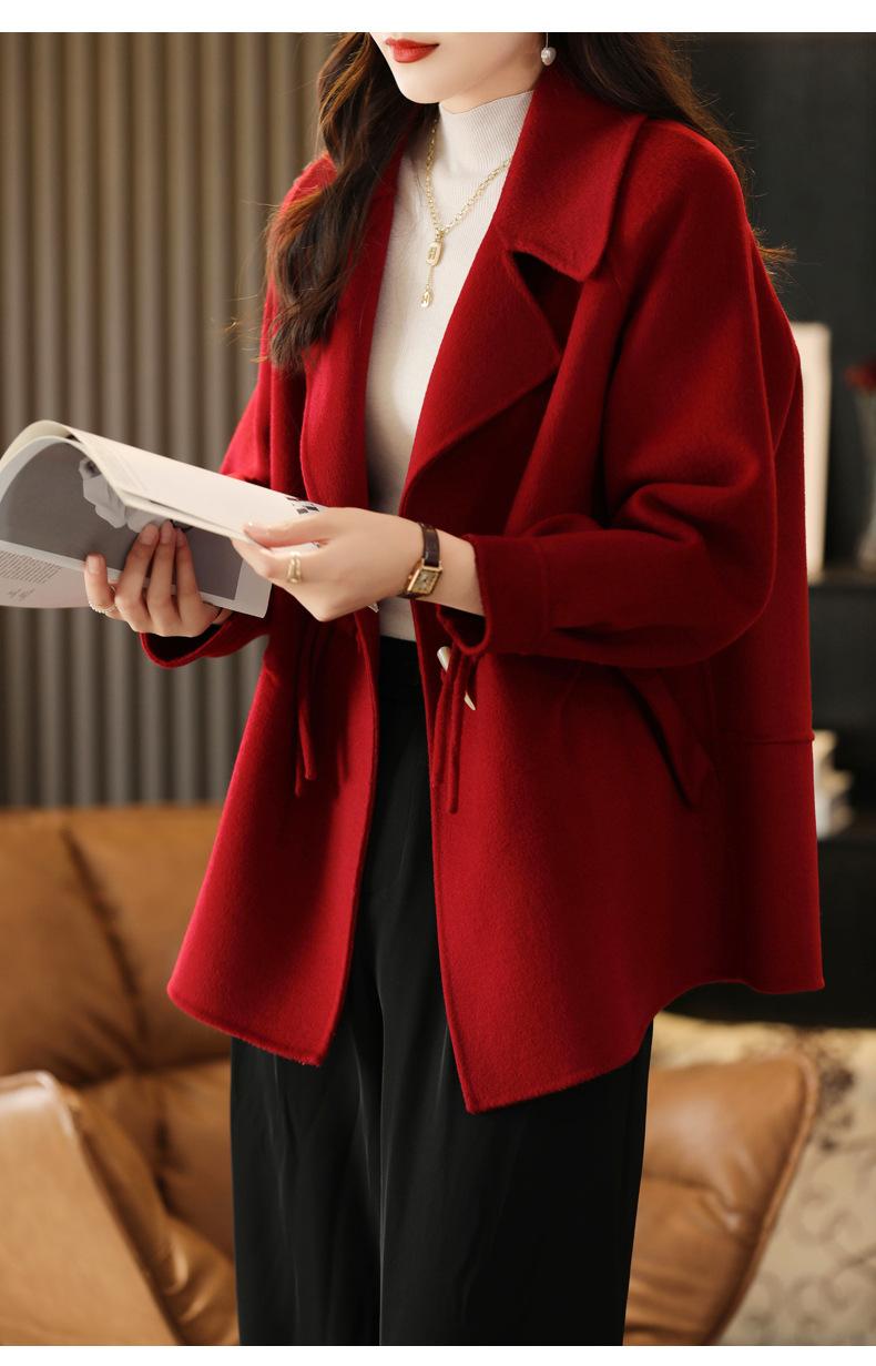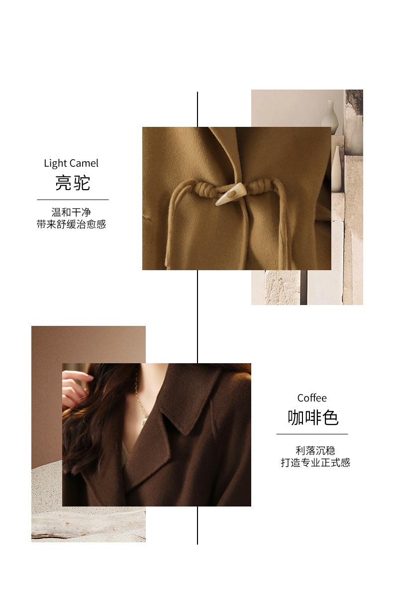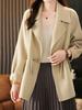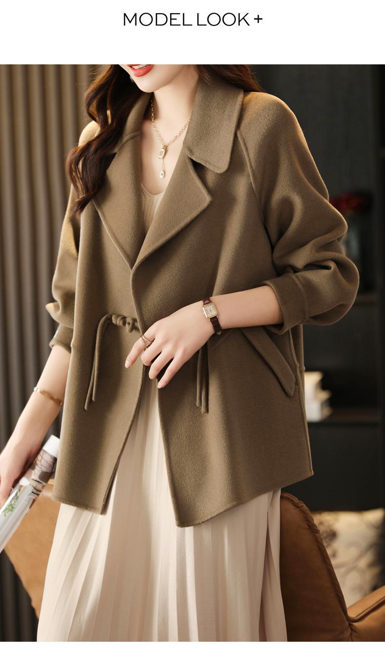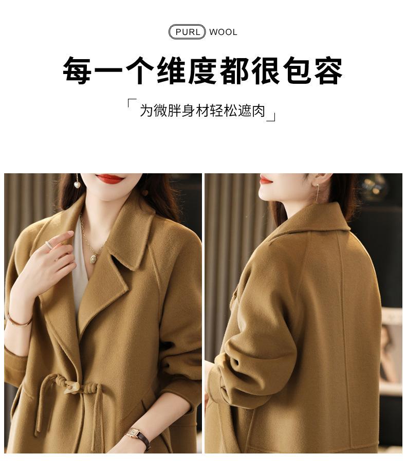 Abrigo de lana de doble cara para mujer, otoño e invierno, nuevo, combina con todo, moda, cuello de traje, hebilla de cuerno, abrigo sencillo y suelto, 2023