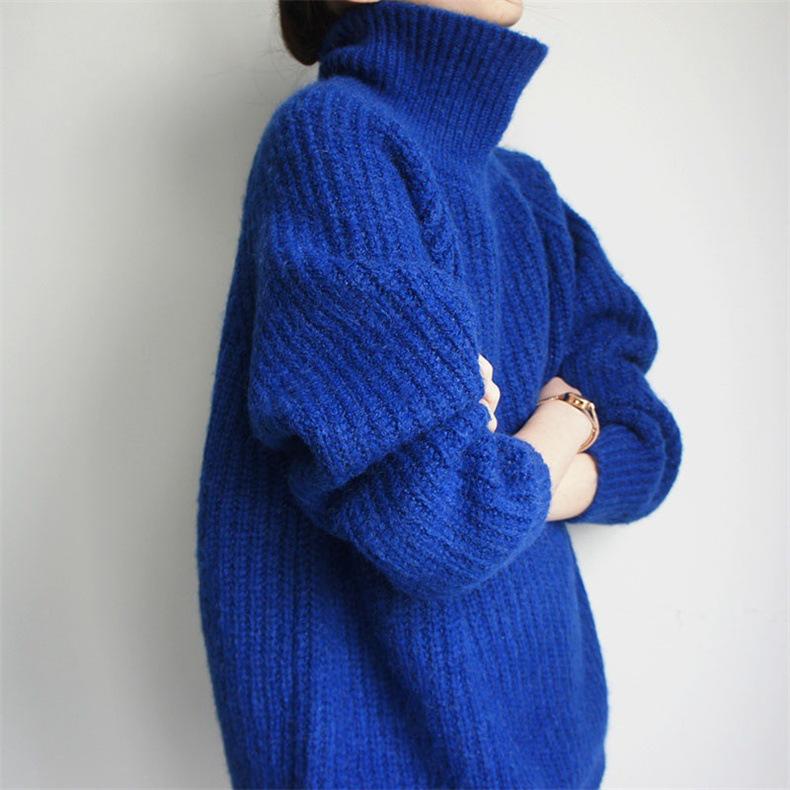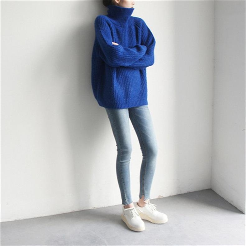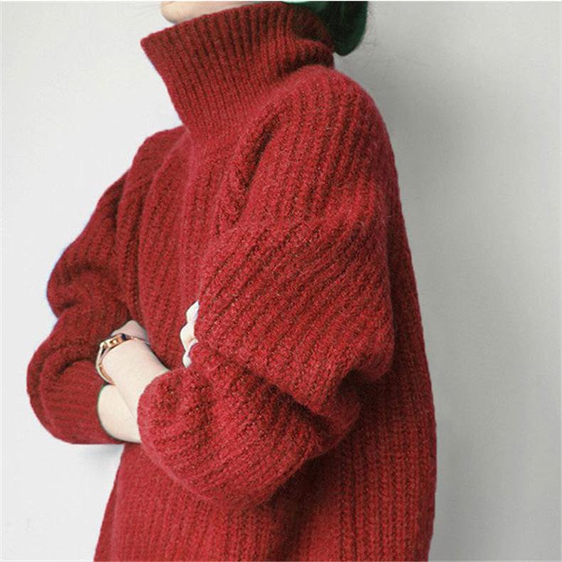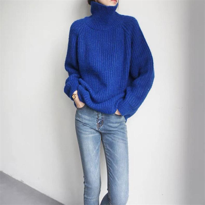 Suéter de estilo coreano para otoño e invierno, nuevo jersey holgado y adelgazante de cuello alto para mujer, camisa de punto de color sólido, top de moda para mujer