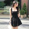 Vestido tipo chaleco sin mangas de punto estilo francés retro para mujer, vestido midi holgado y adelgazante de rayas negras de verano para chica sexy