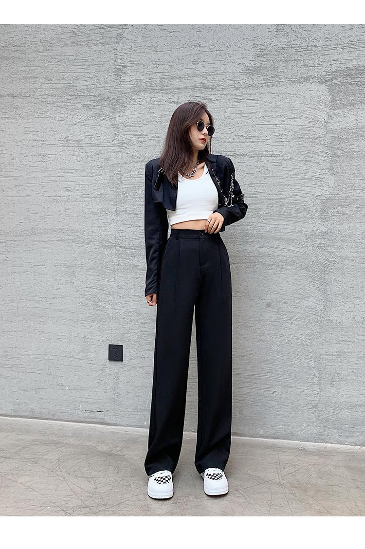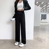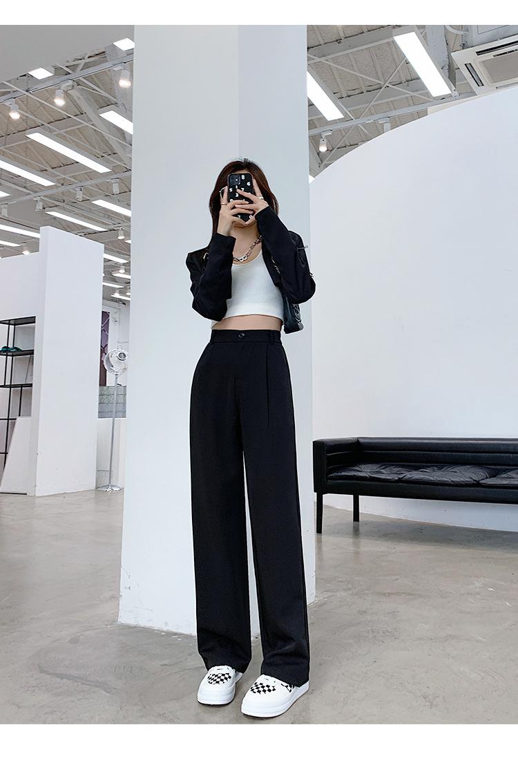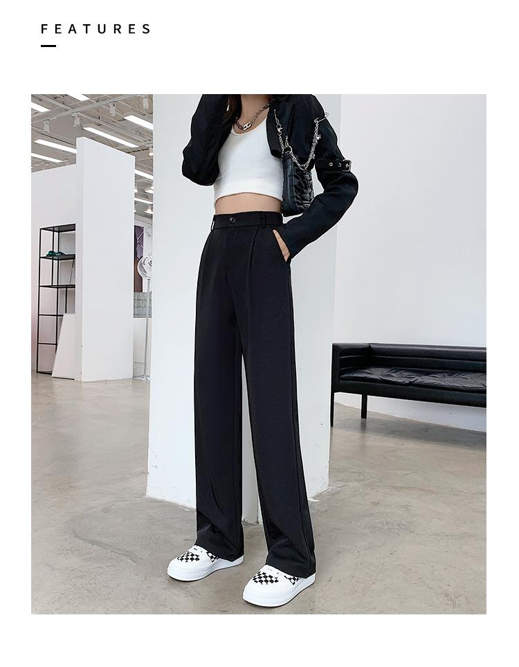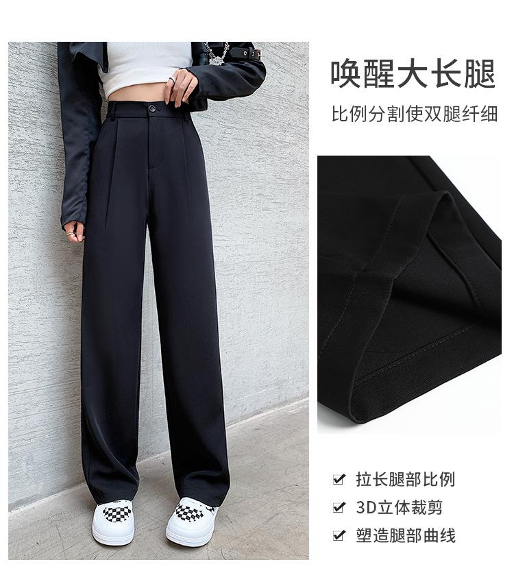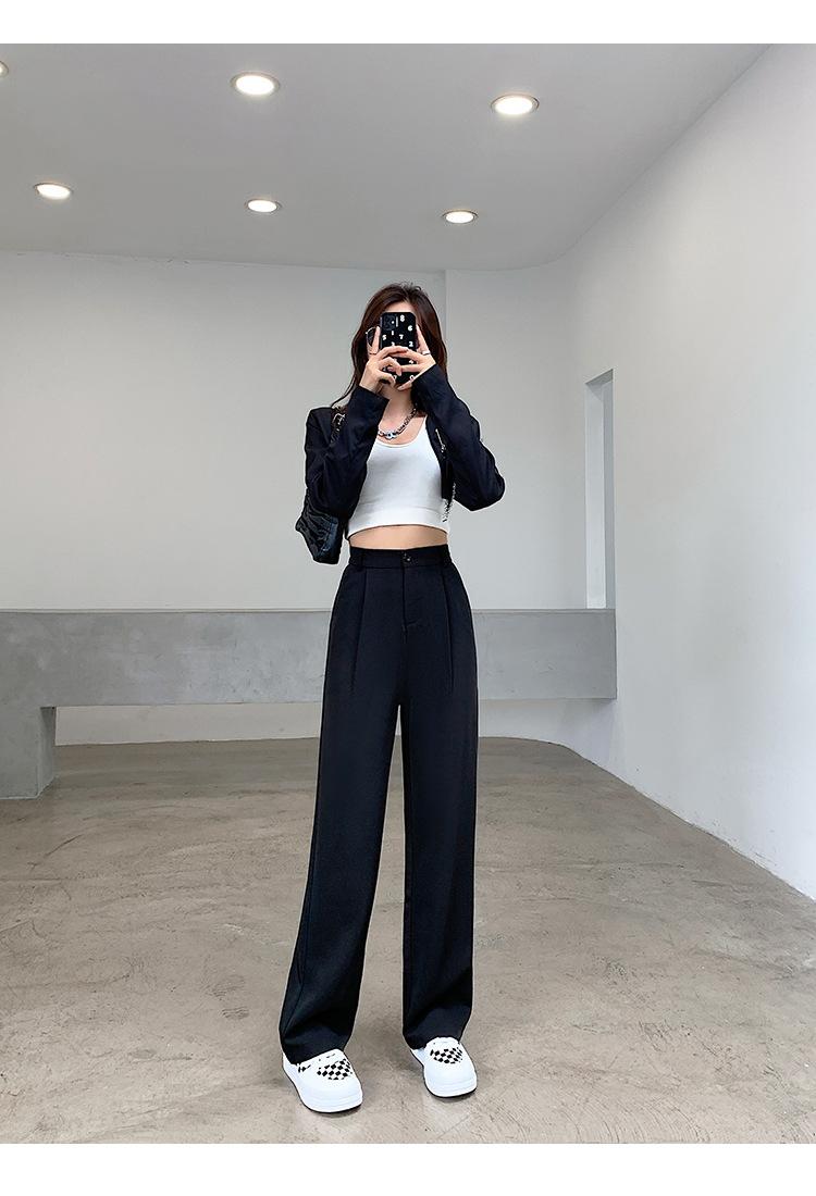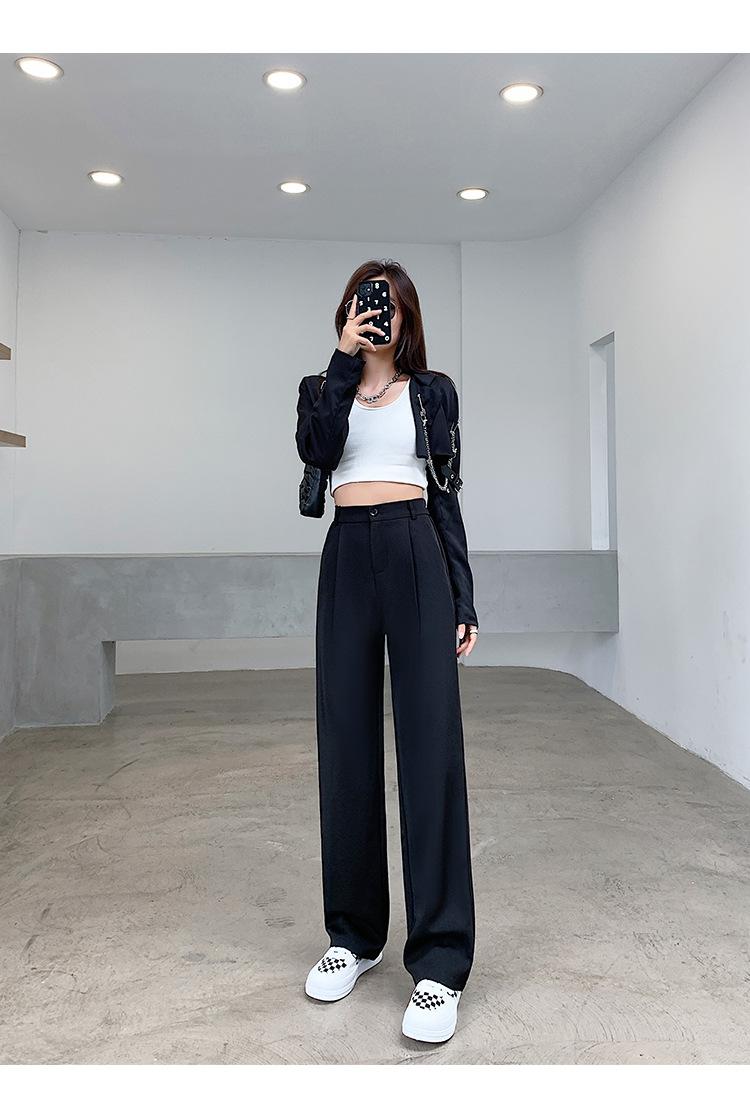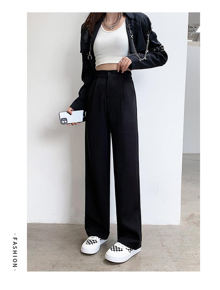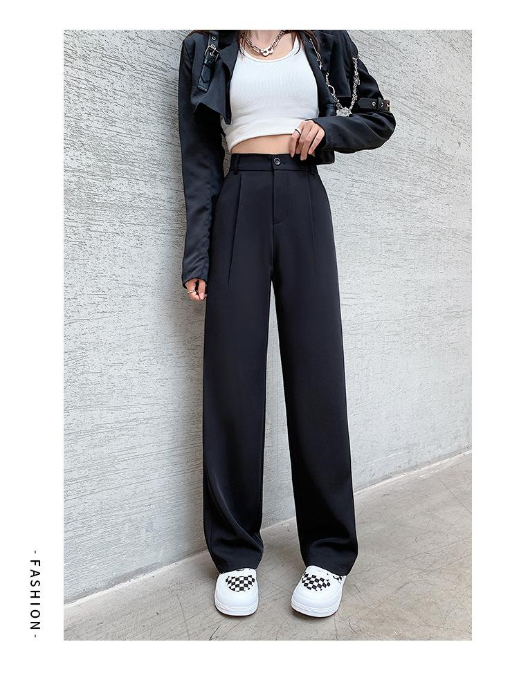 Pantalones negros pequeños de pierna ancha para mujer, pantalones drapeados de cintura alta de primavera, pantalones casuales rectos adelgazantes, pantalones de traje para mujer