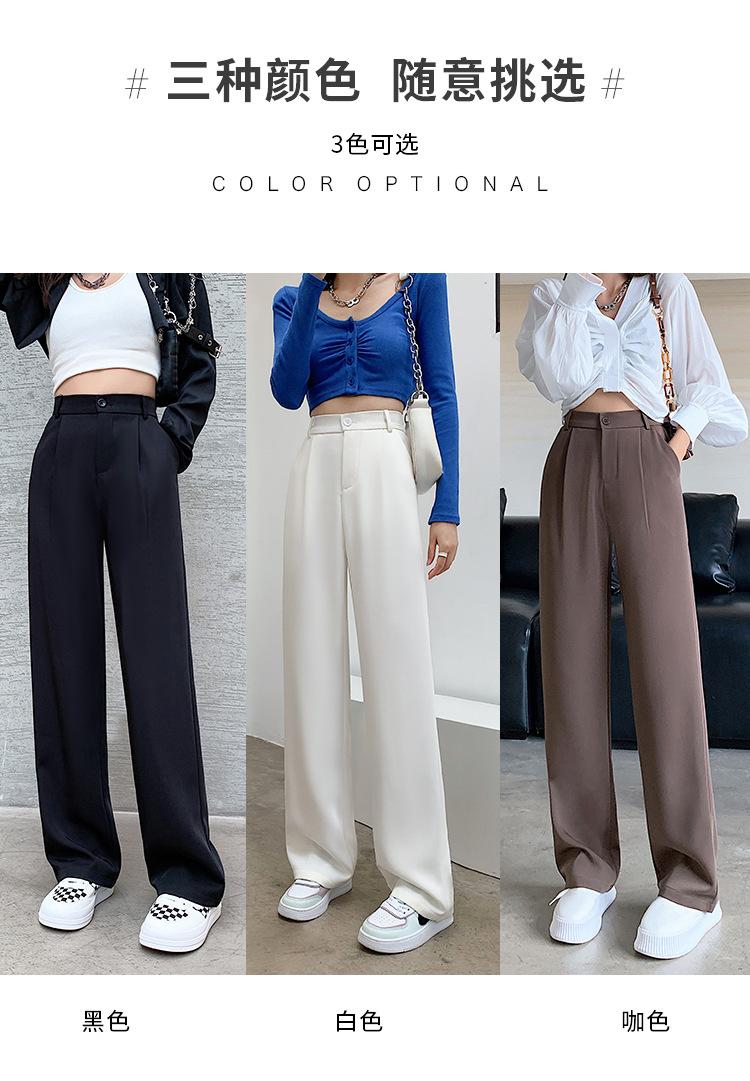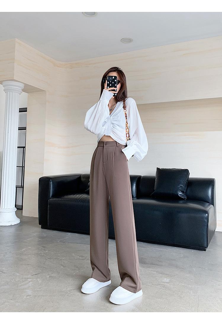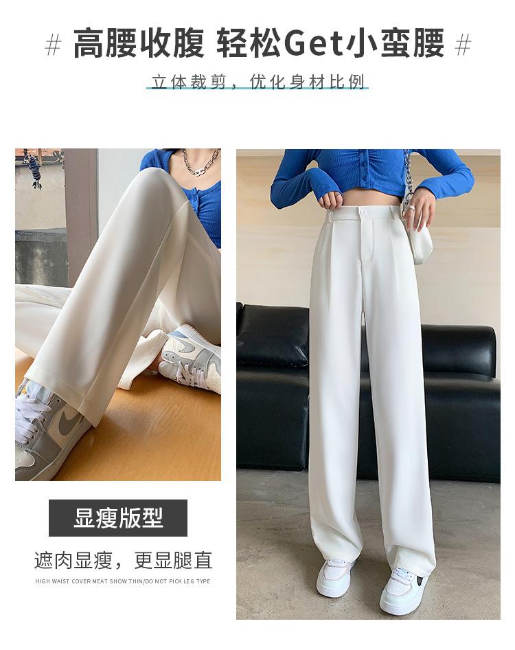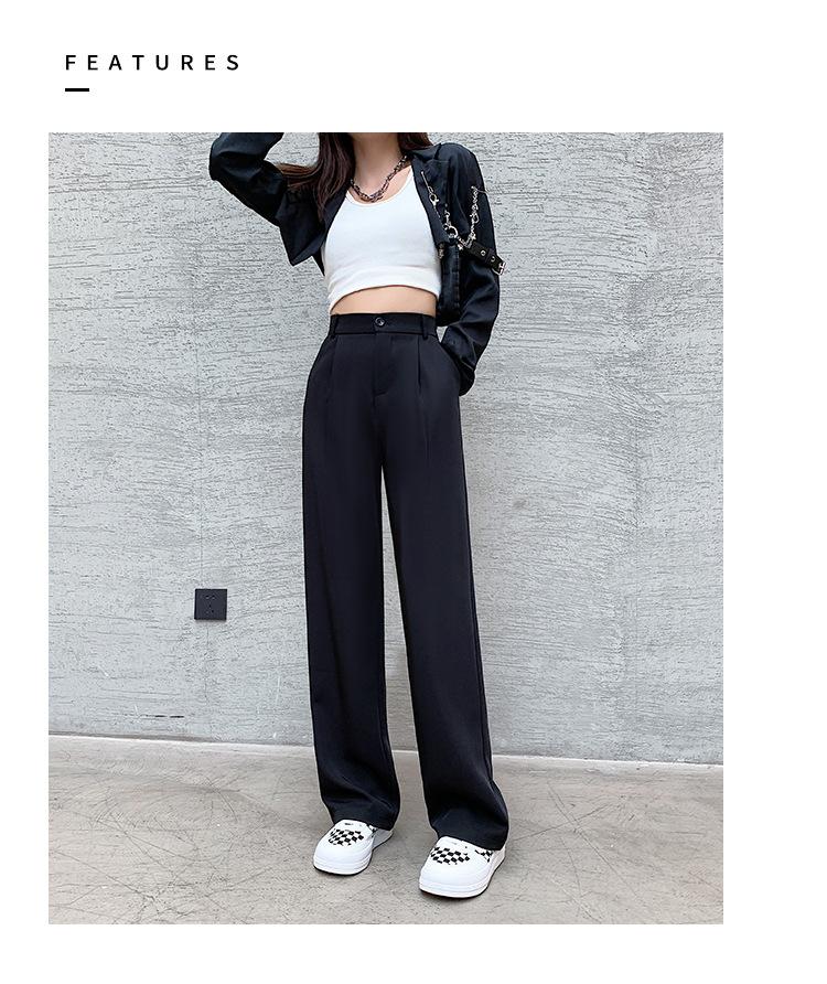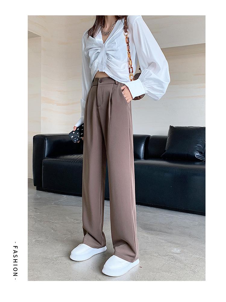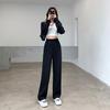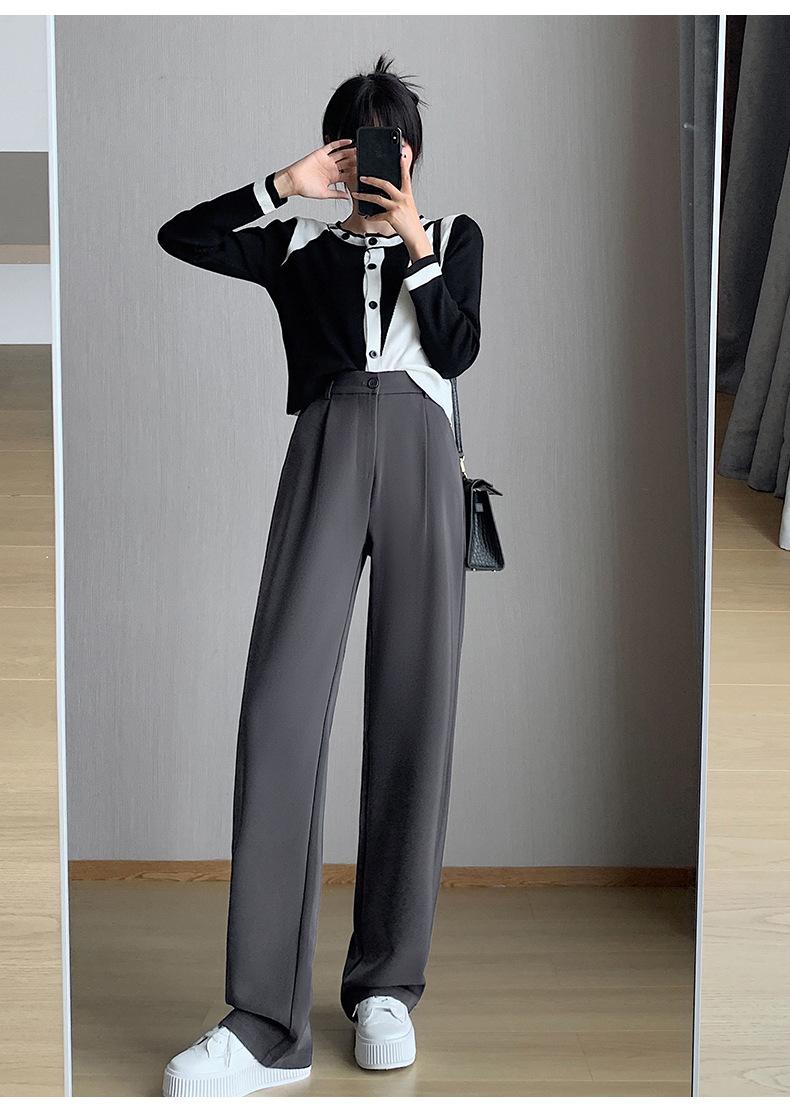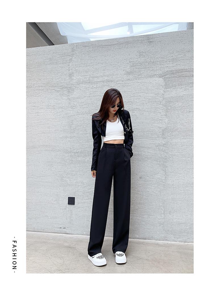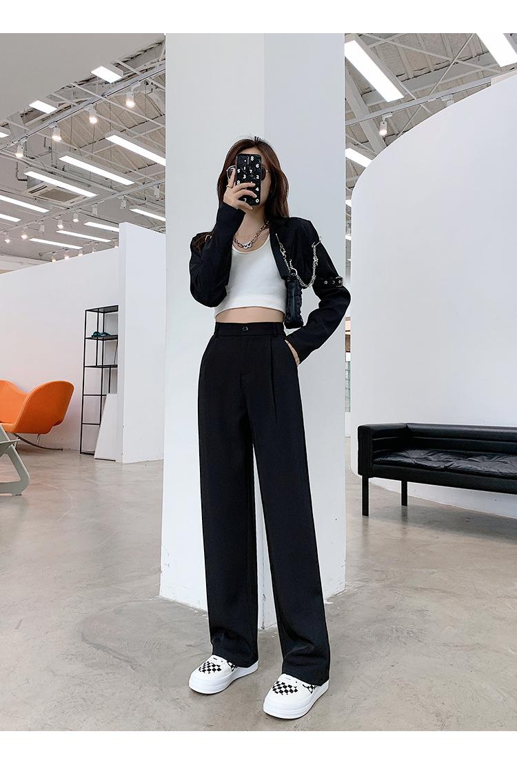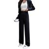 Pantalones negros pequeños de pierna ancha para mujer, pantalones drapeados de cintura alta de primavera, pantalones casuales rectos adelgazantes, pantalones de traje para mujer