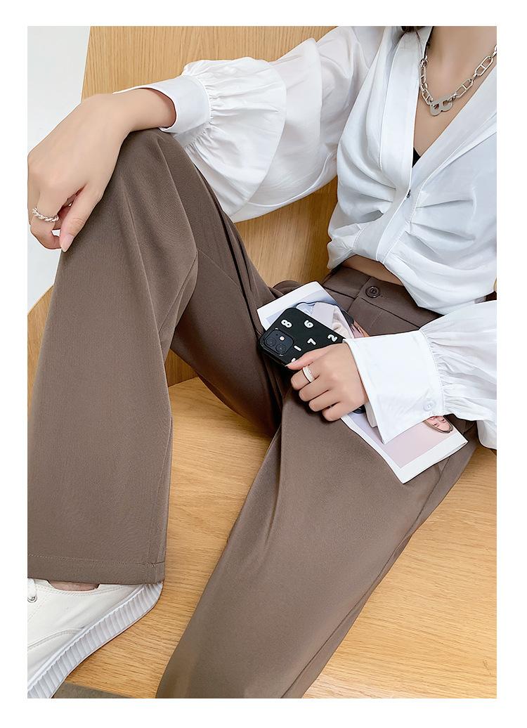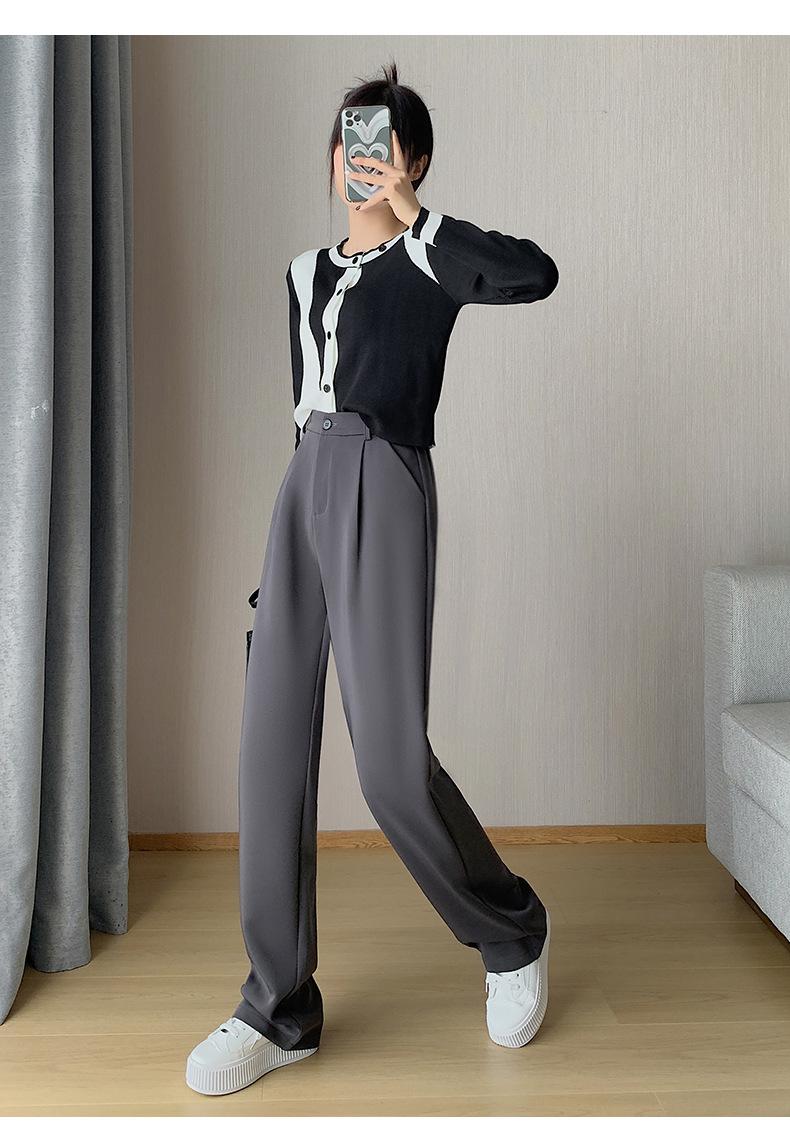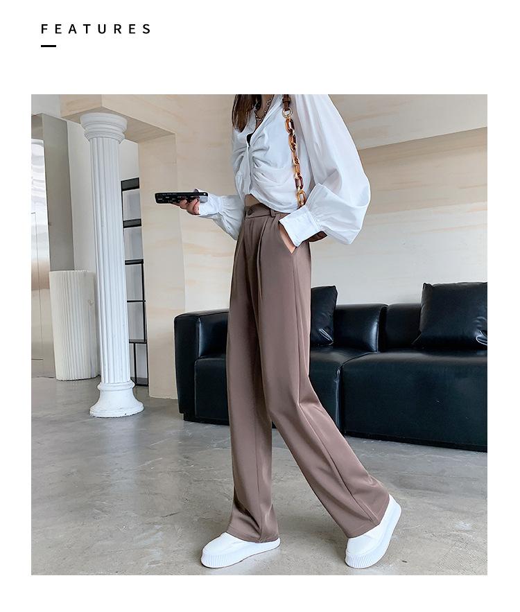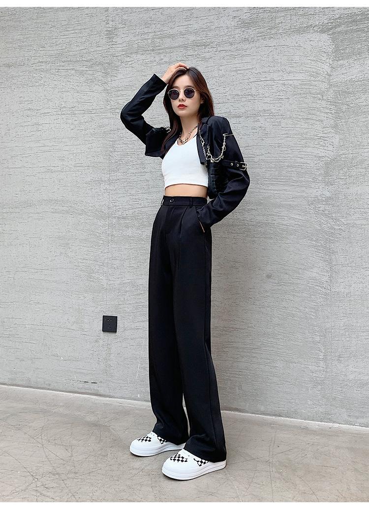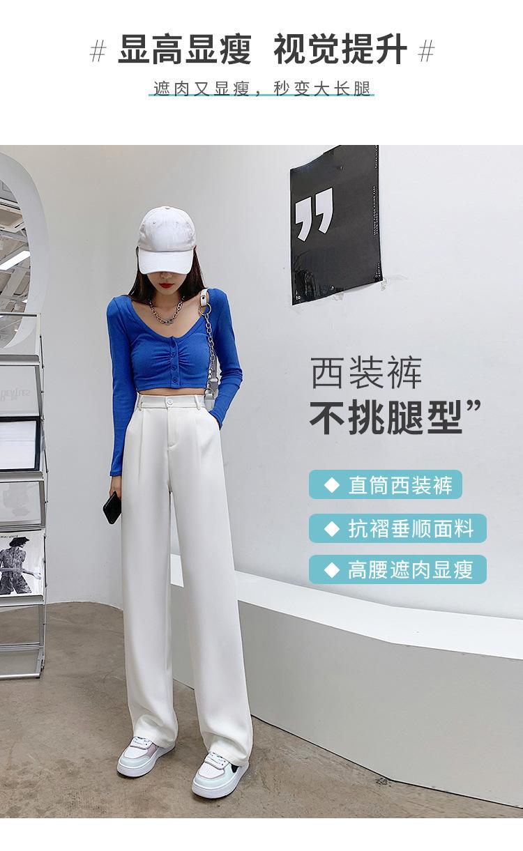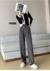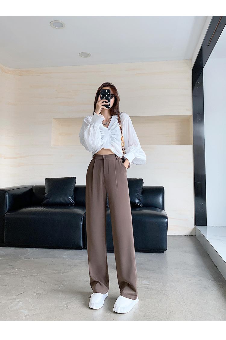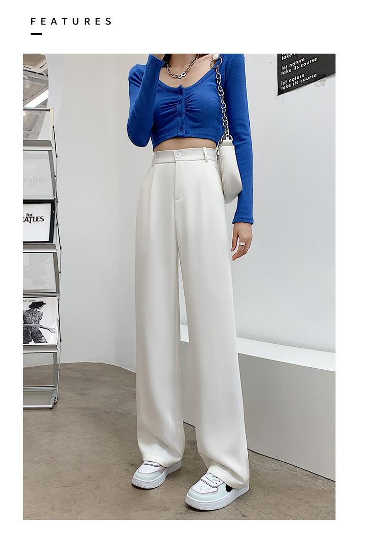 Pantalones negros pequeños de pierna ancha para mujer, pantalones drapeados de cintura alta de primavera, pantalones casuales rectos adelgazantes, pantalones de traje para mujer