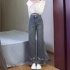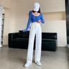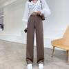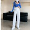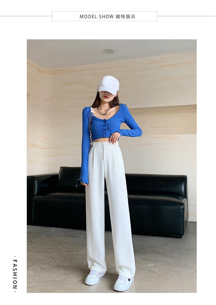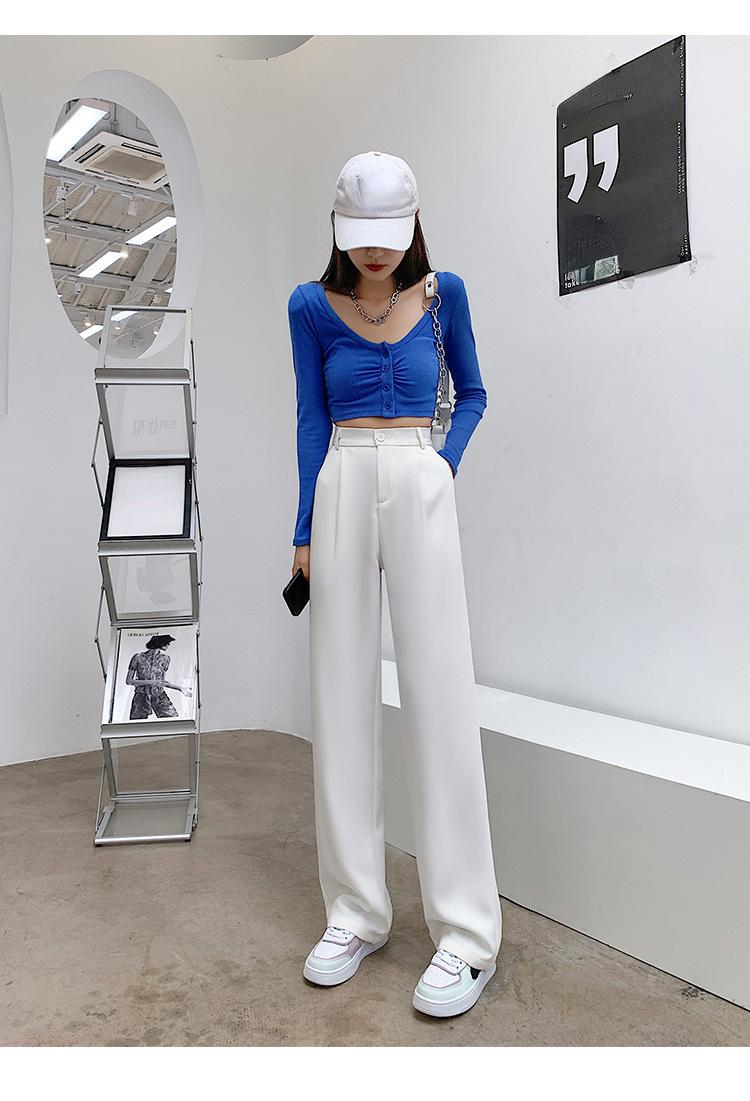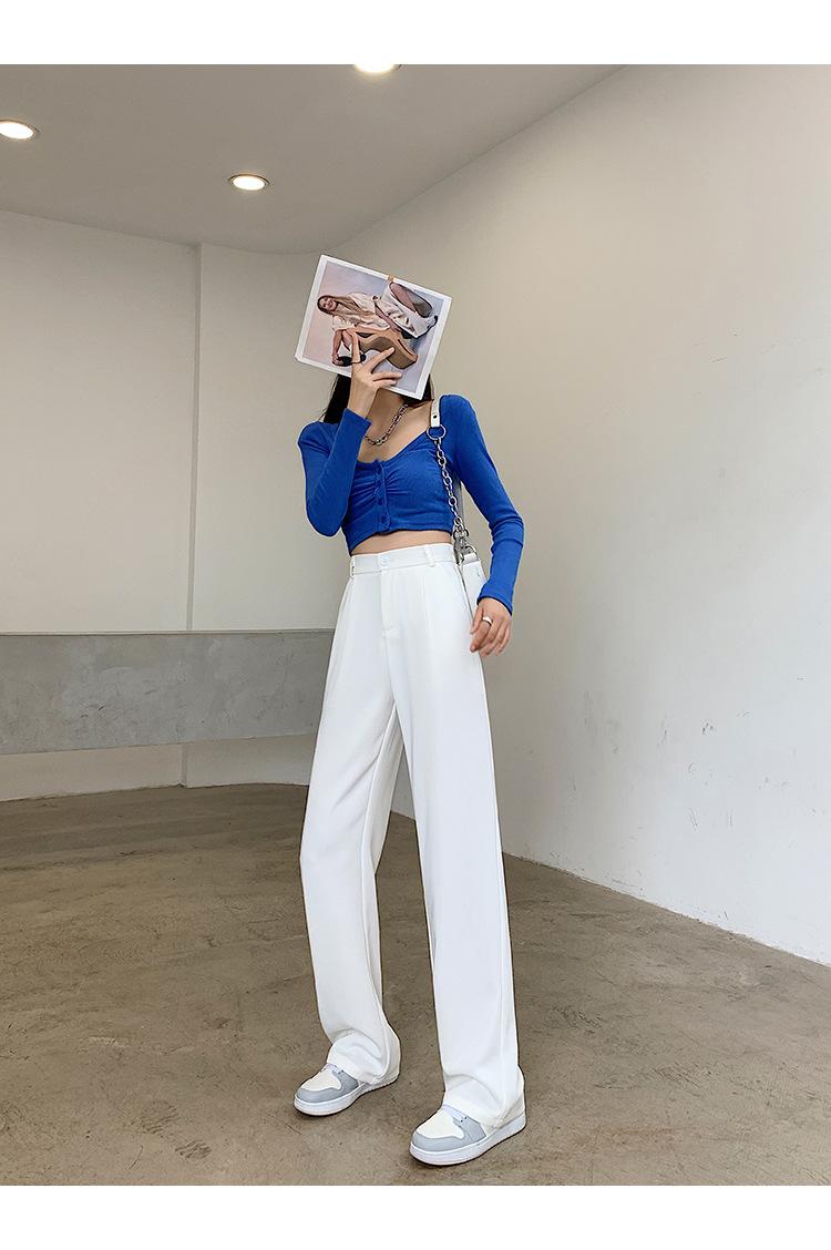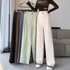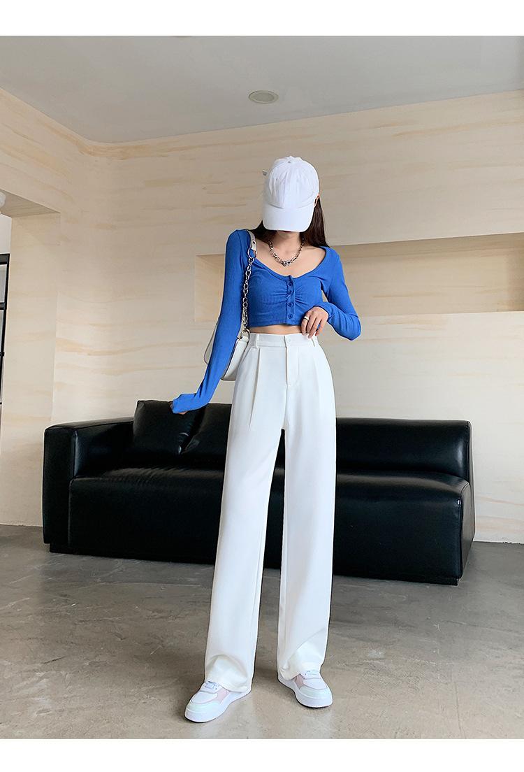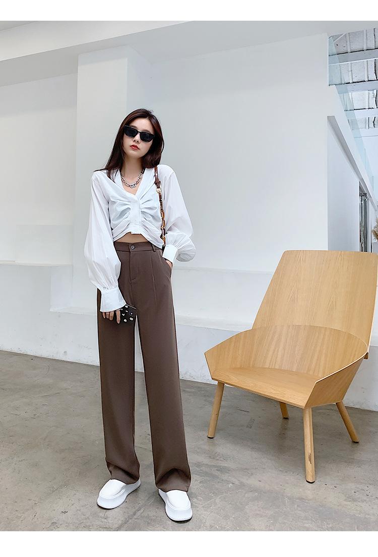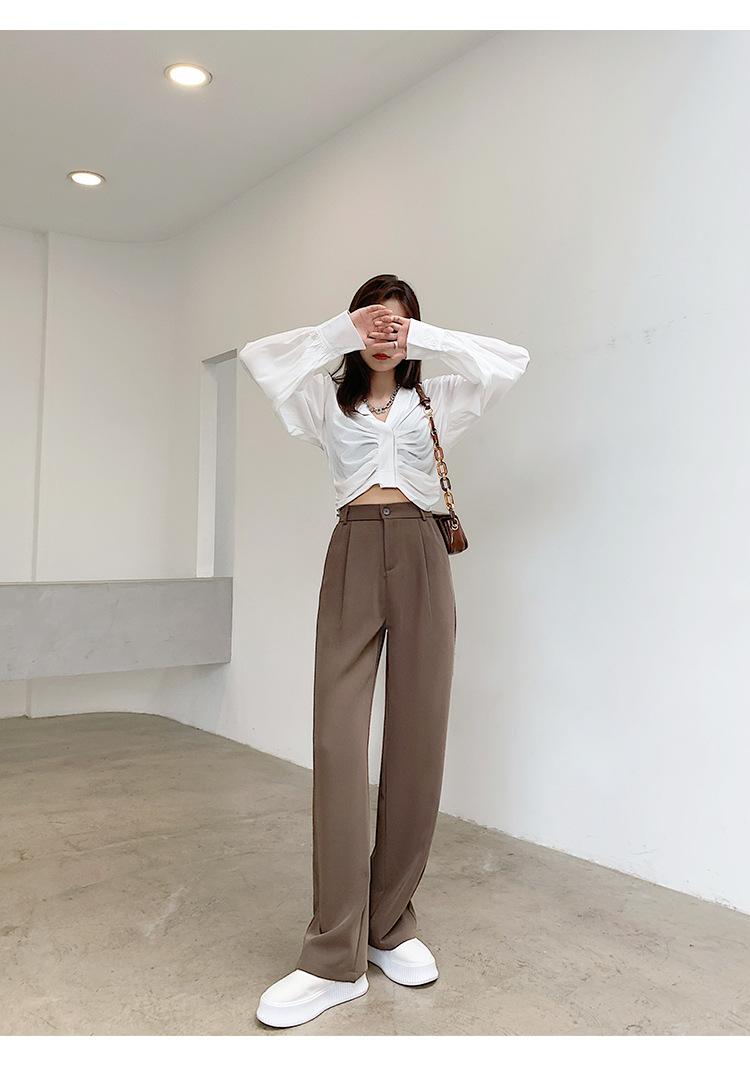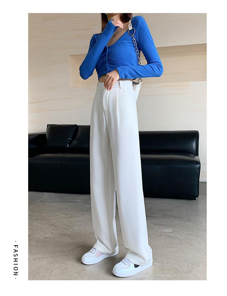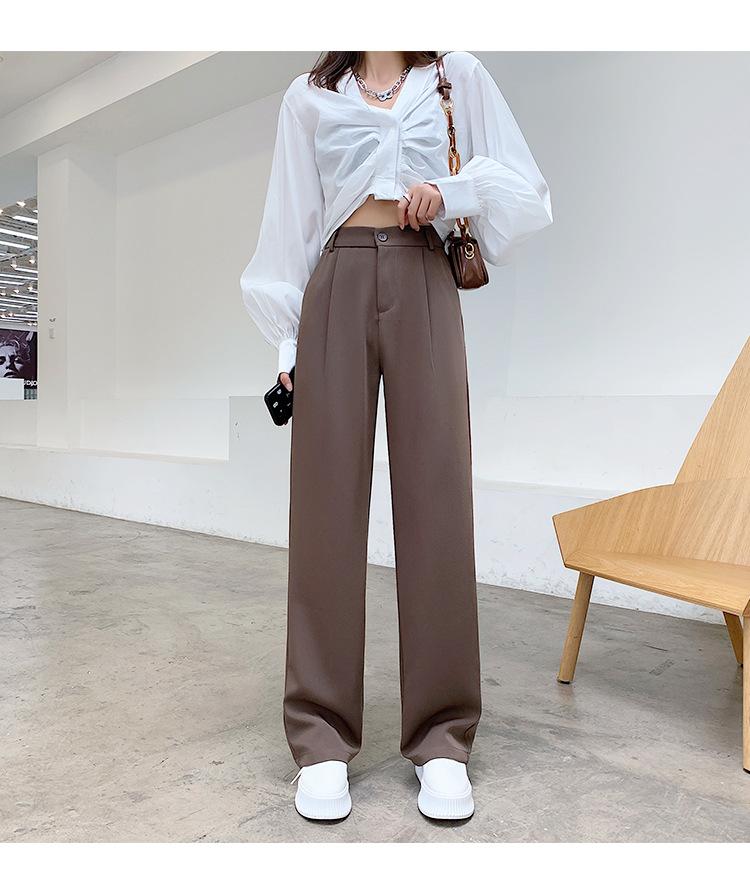 Pantalones negros pequeños de pierna ancha para mujer, pantalones drapeados de cintura alta de primavera, pantalones casuales rectos adelgazantes, pantalones de traje para mujer