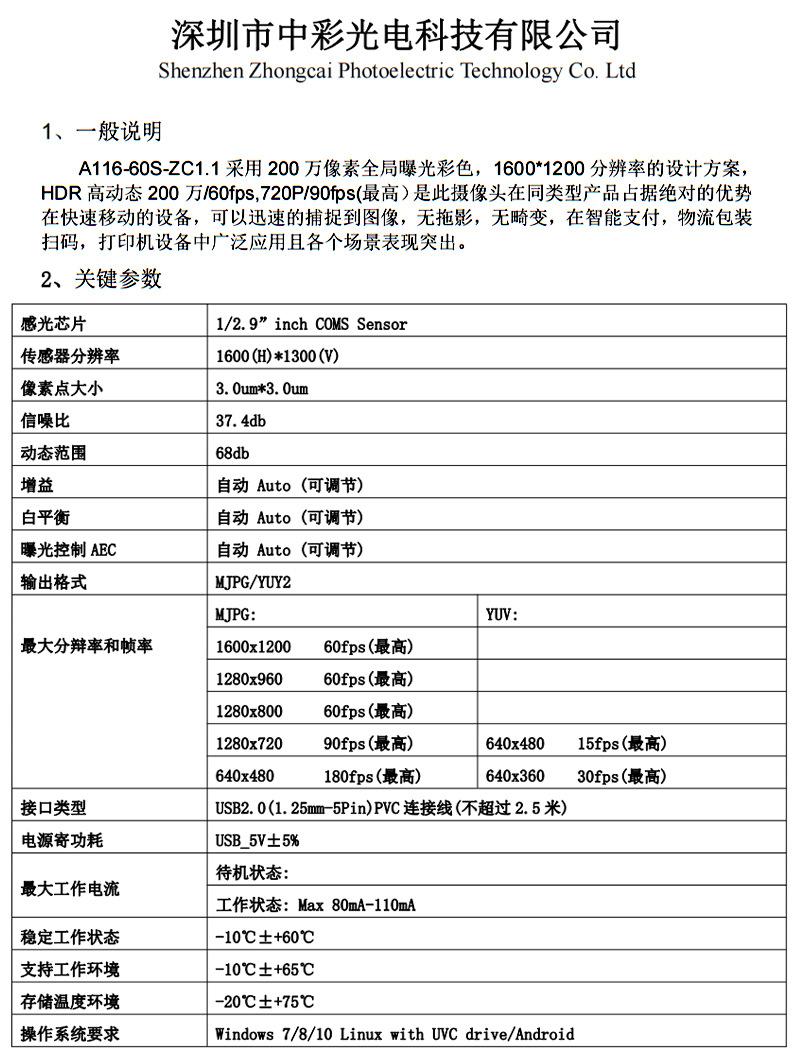 Can reach 180 frames, high-definition distortion-free fixed focus, colorful imaging, global exposure, global s...
