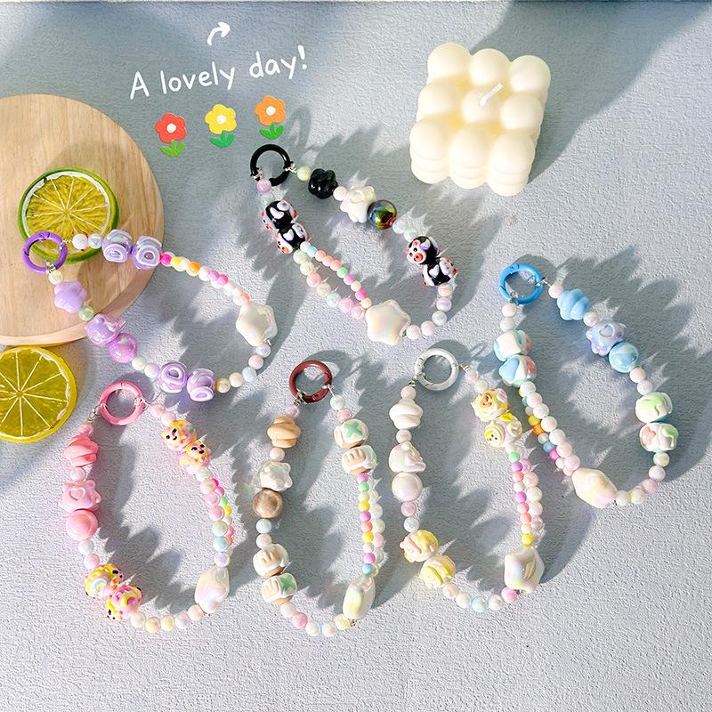 Accesorios para teléfono móvil, cadena para teléfono móvil, caja ciega, colgante, hebilla, cadena de cuentas, cordón de dibujos animados, colgante, funda de teléfono pintada a mano