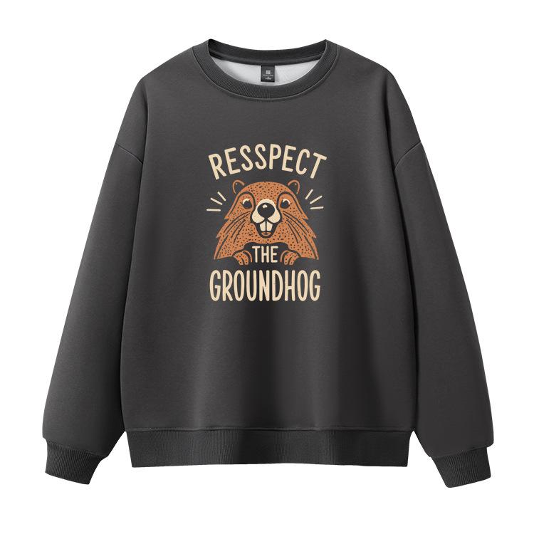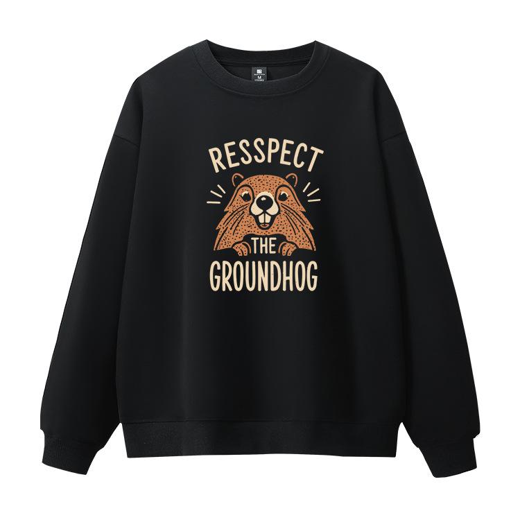 Sudadera Americana de Cuello Redondo de Alta Calidad para Mujer Otoño e Invierno Nueva Casual Estampado de Ardilla Holgada Talla Grande
