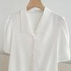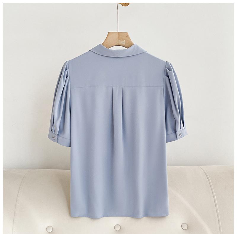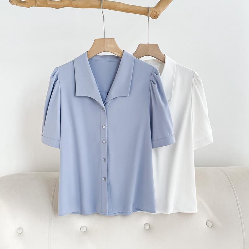 Camisa profesional de manga corta de verano para mujer, diseño de cuello de golondrina de alta calidad, camisa de entrevista de viajero de gasa con sentido de nicho