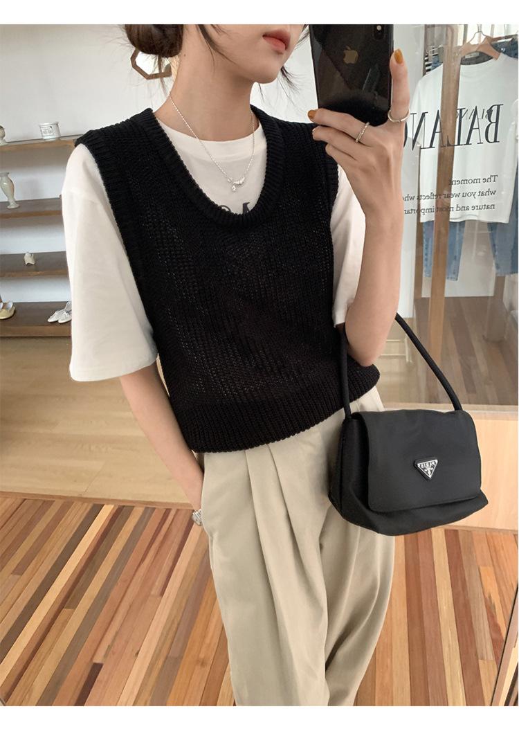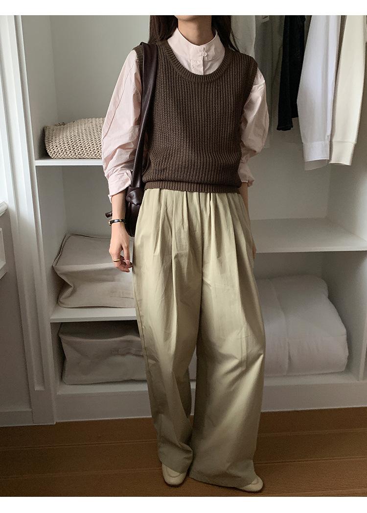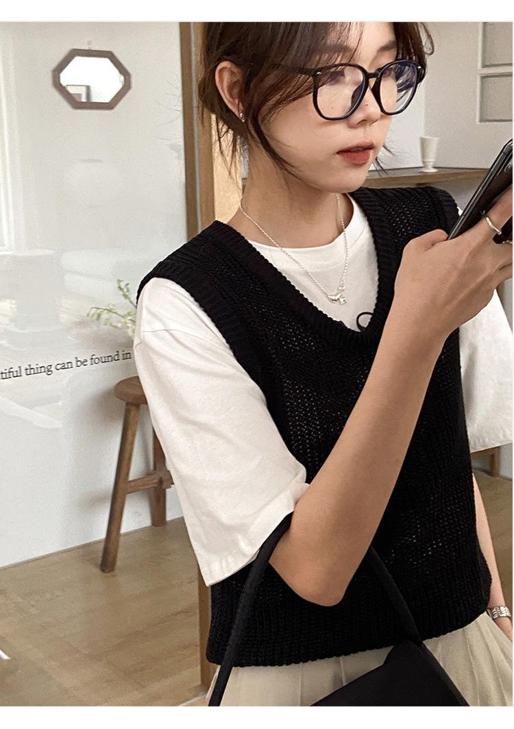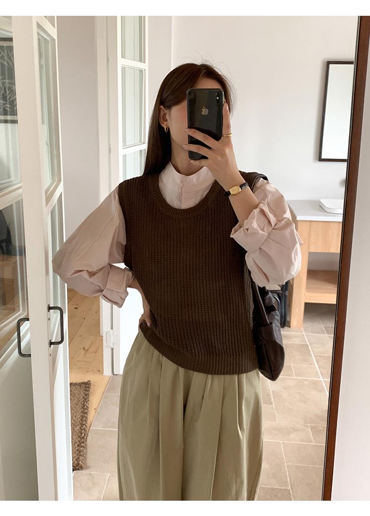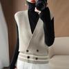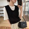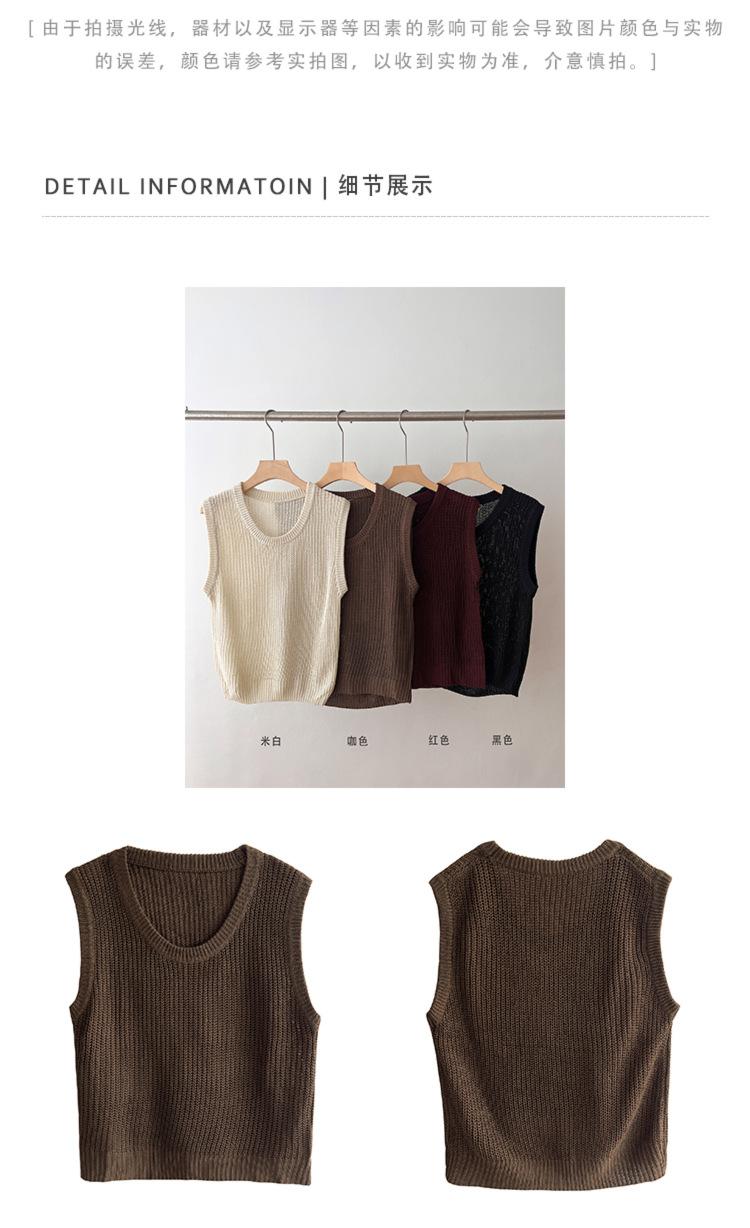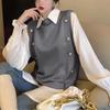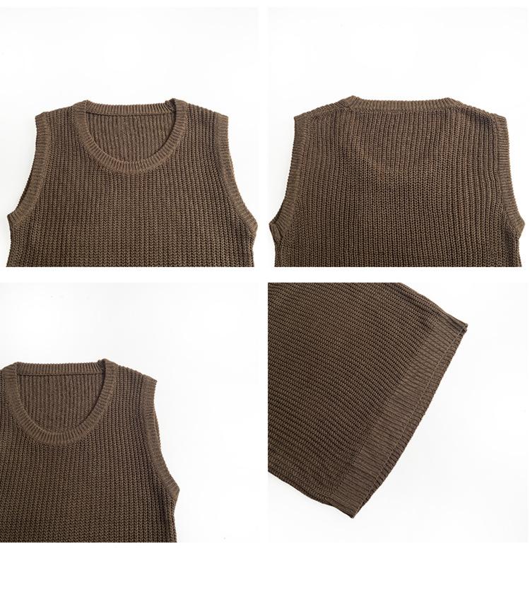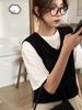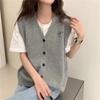 Chaleco tejido sencillo sin mangas estilo coreano para mujer otoño 2023 Nuevo cuello U casual holgado adelgazante suéter chaleco 6151