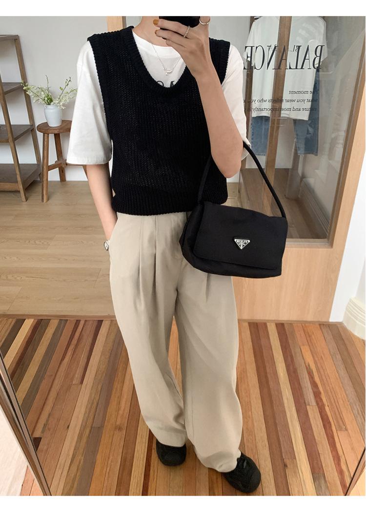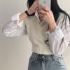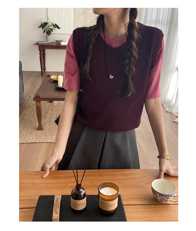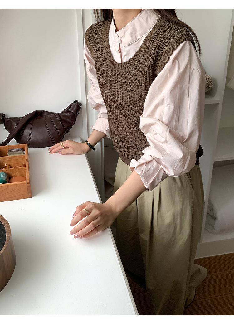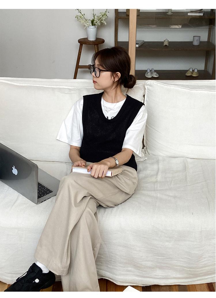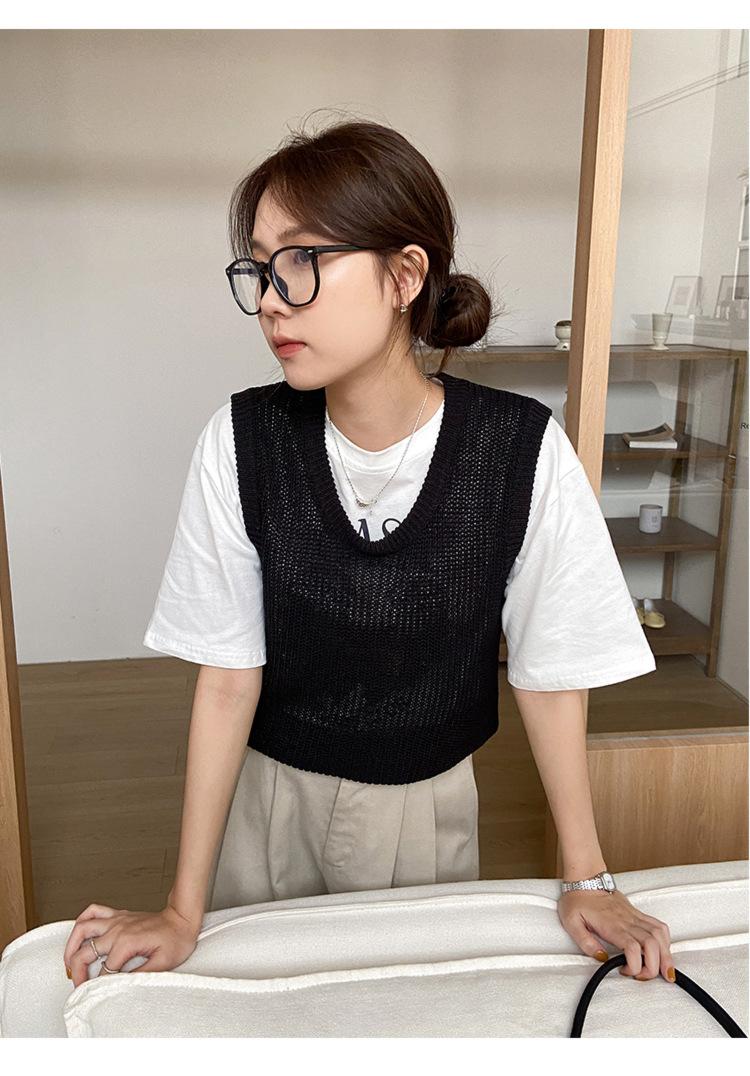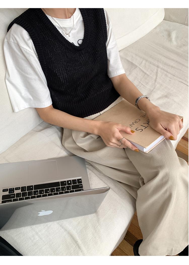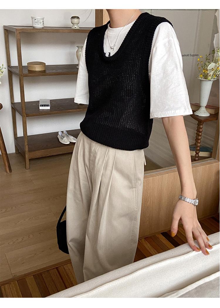 Chaleco tejido sencillo sin mangas estilo coreano para mujer otoño 2023 Nuevo cuello U casual holgado adelgazante suéter chaleco 6151