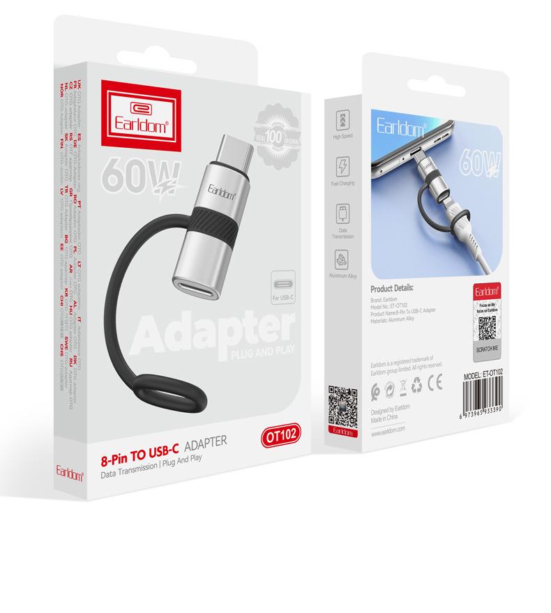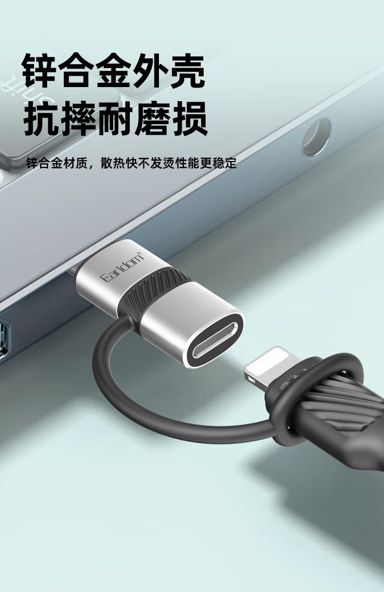 Adecuado para adaptador Apple 15 Tipo-C a Lightning, convertidor de carga rápida iPhone 15 de 60 W macho y hembra