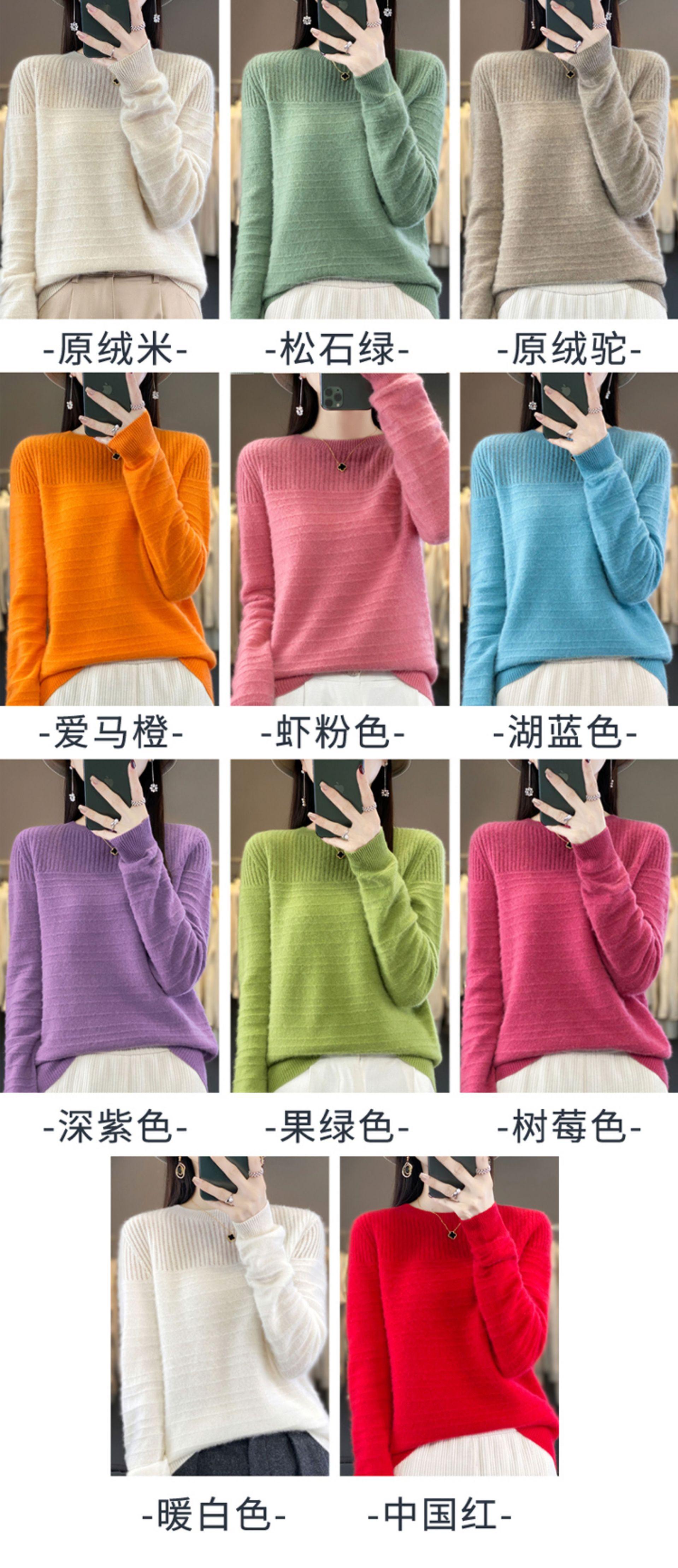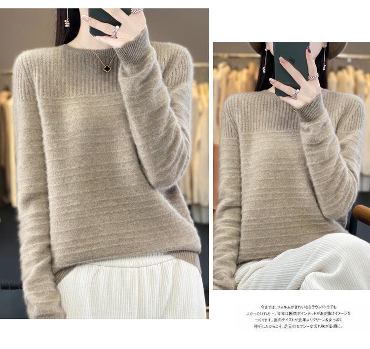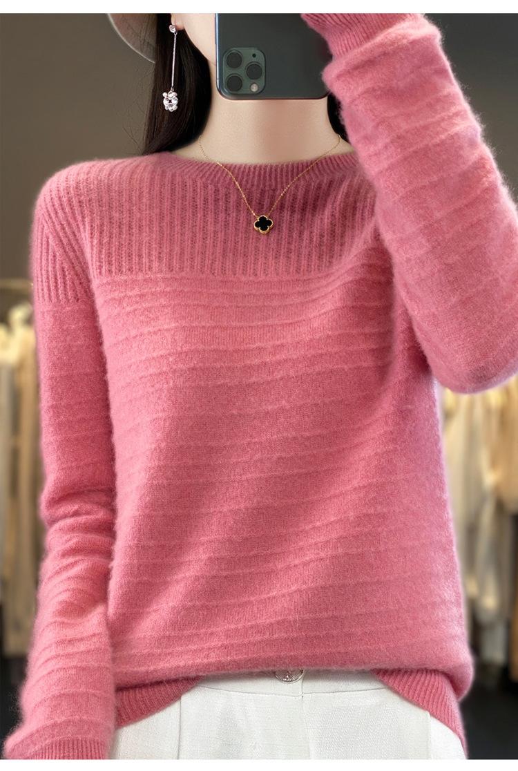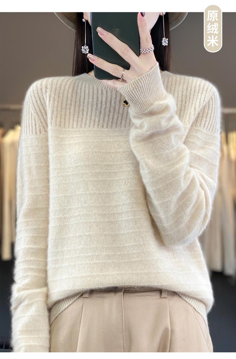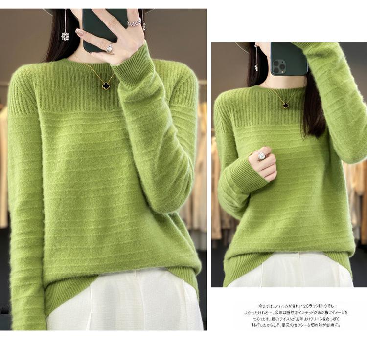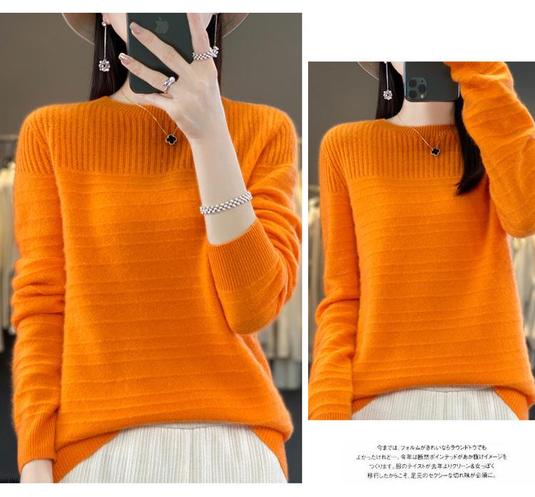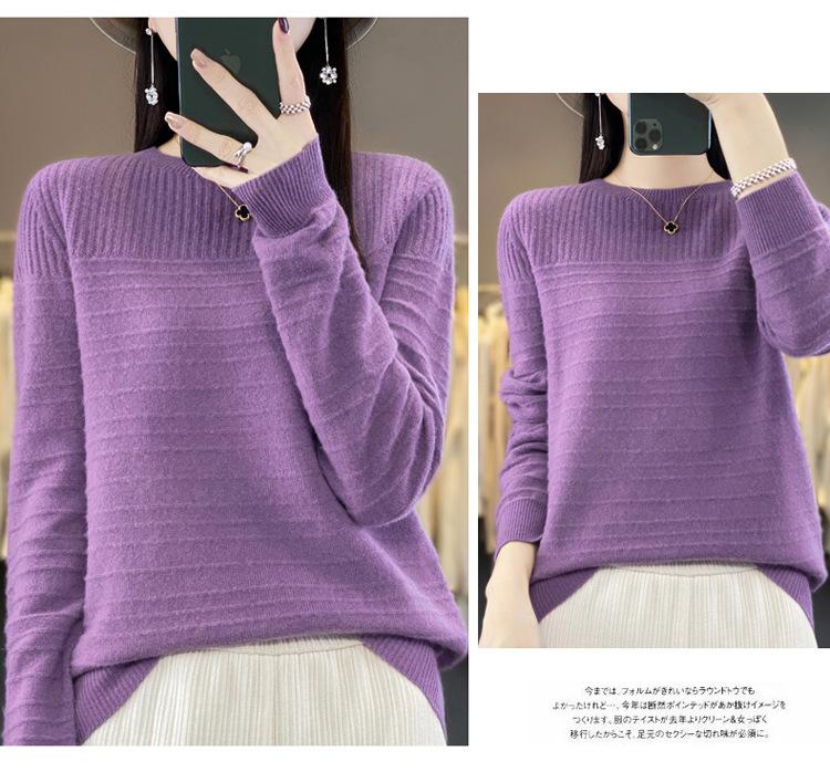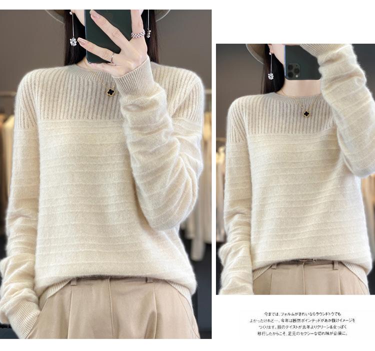 Nuevo otoño e invierno 2023 primera línea prêt-à-porter suéter de lana para mujer cuello redondo versátil tejido talla grande suéter holgado camisa básica